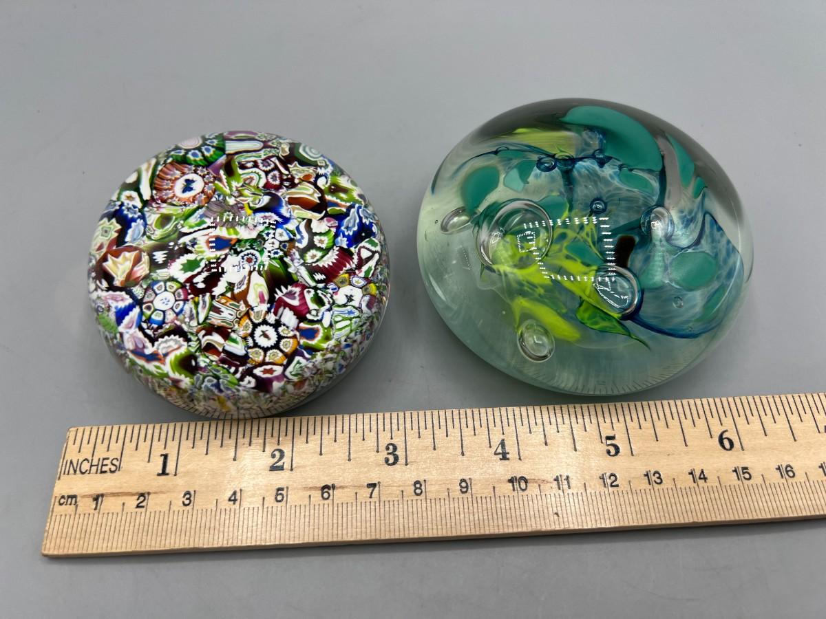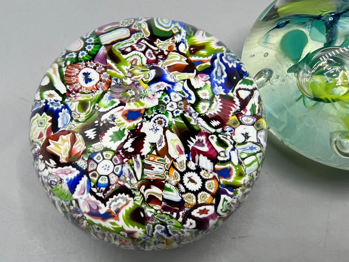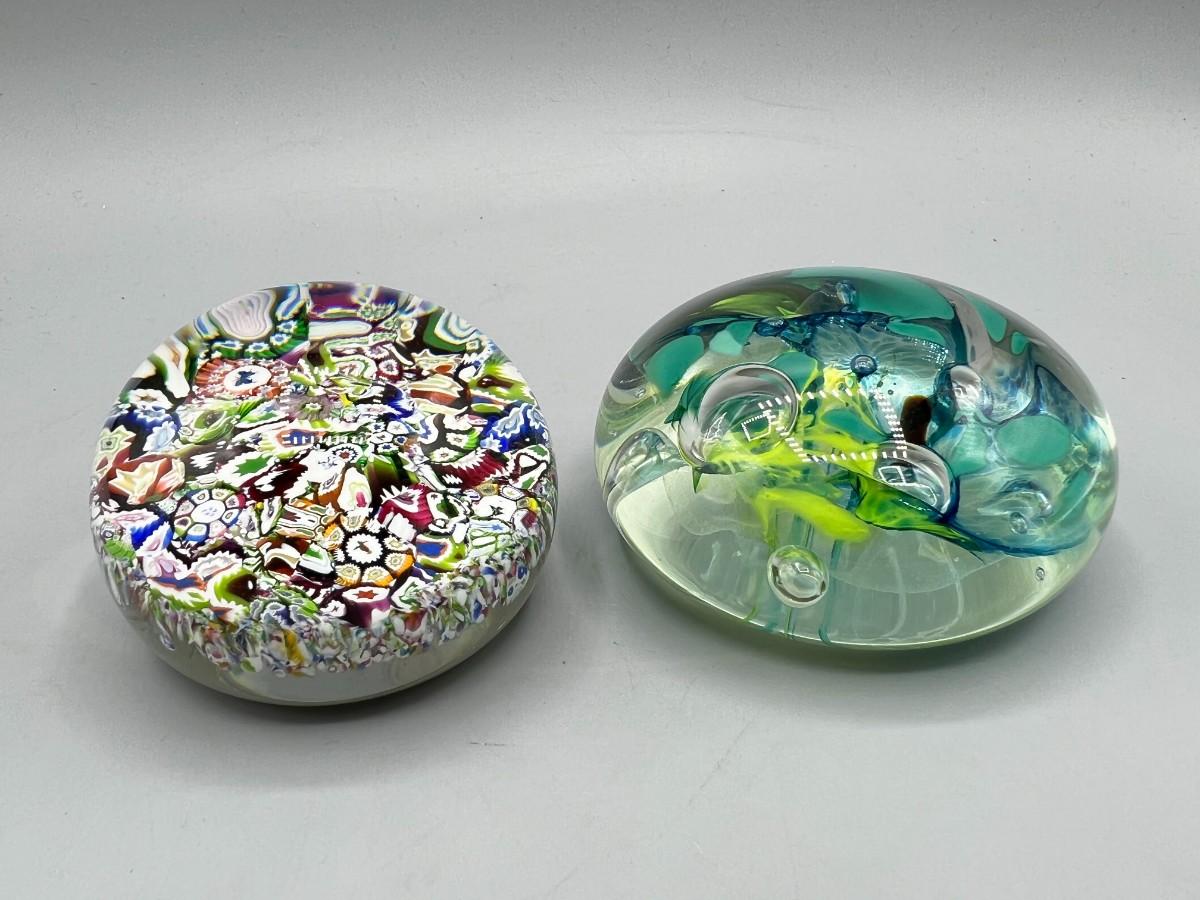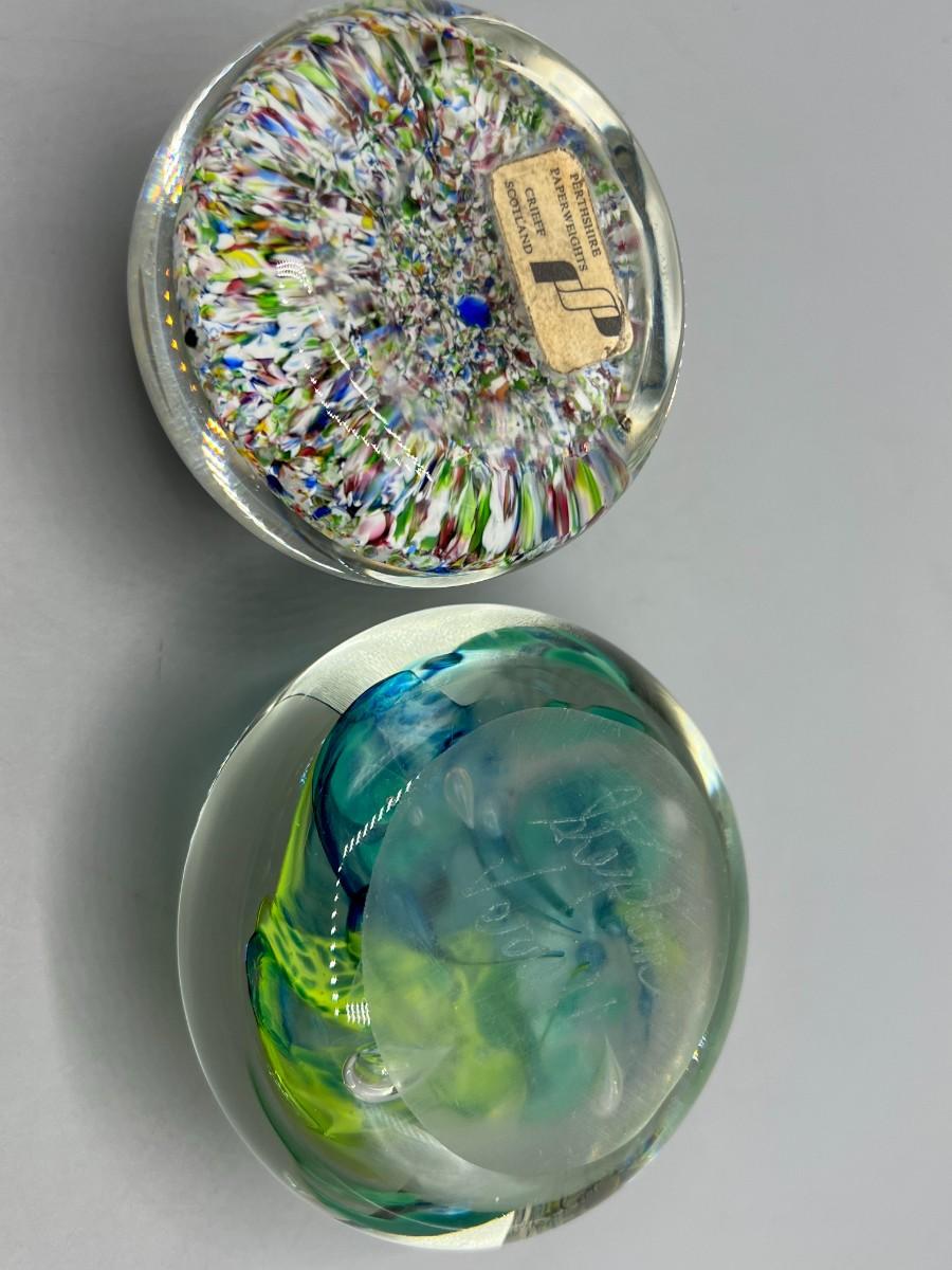 Pair of Handmade Art Glass Perthshire & Signed Paperweights