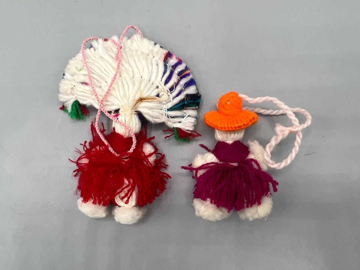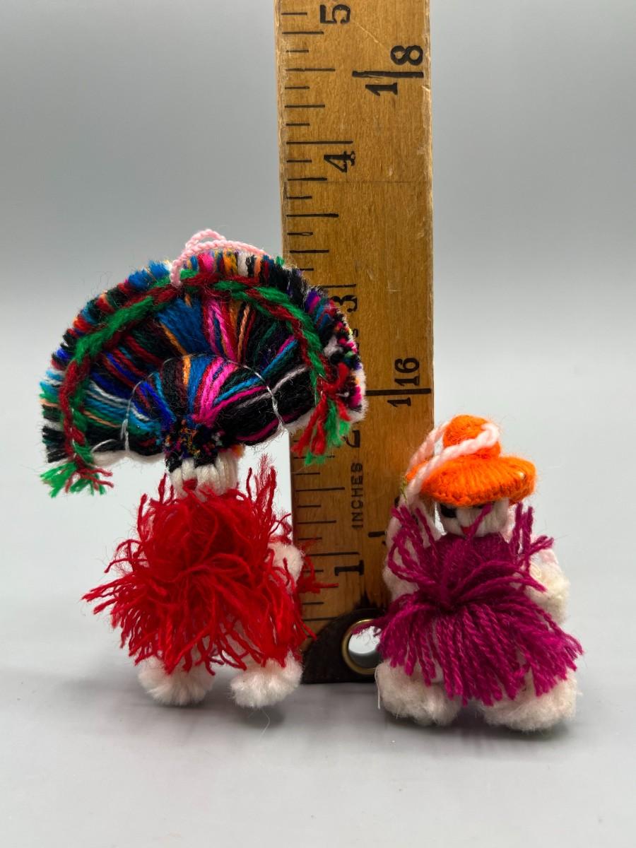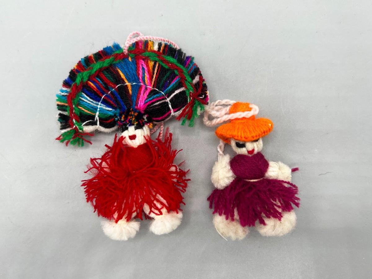 Pair of Handmade Trinket Cloth Mexican Souvenir Dolls, there is no signifncant damage to the dolls and is in good collectible condition. Check pictures for more details and for sizing.