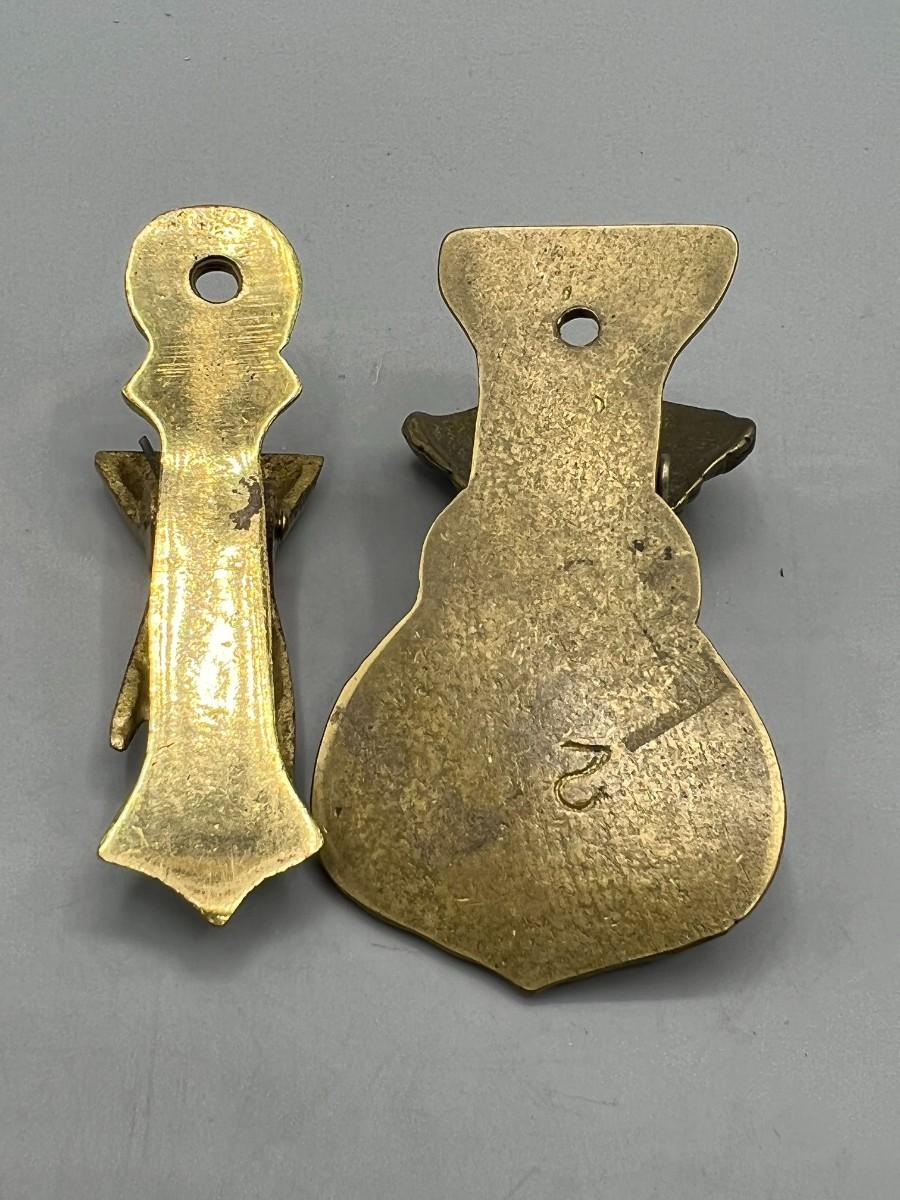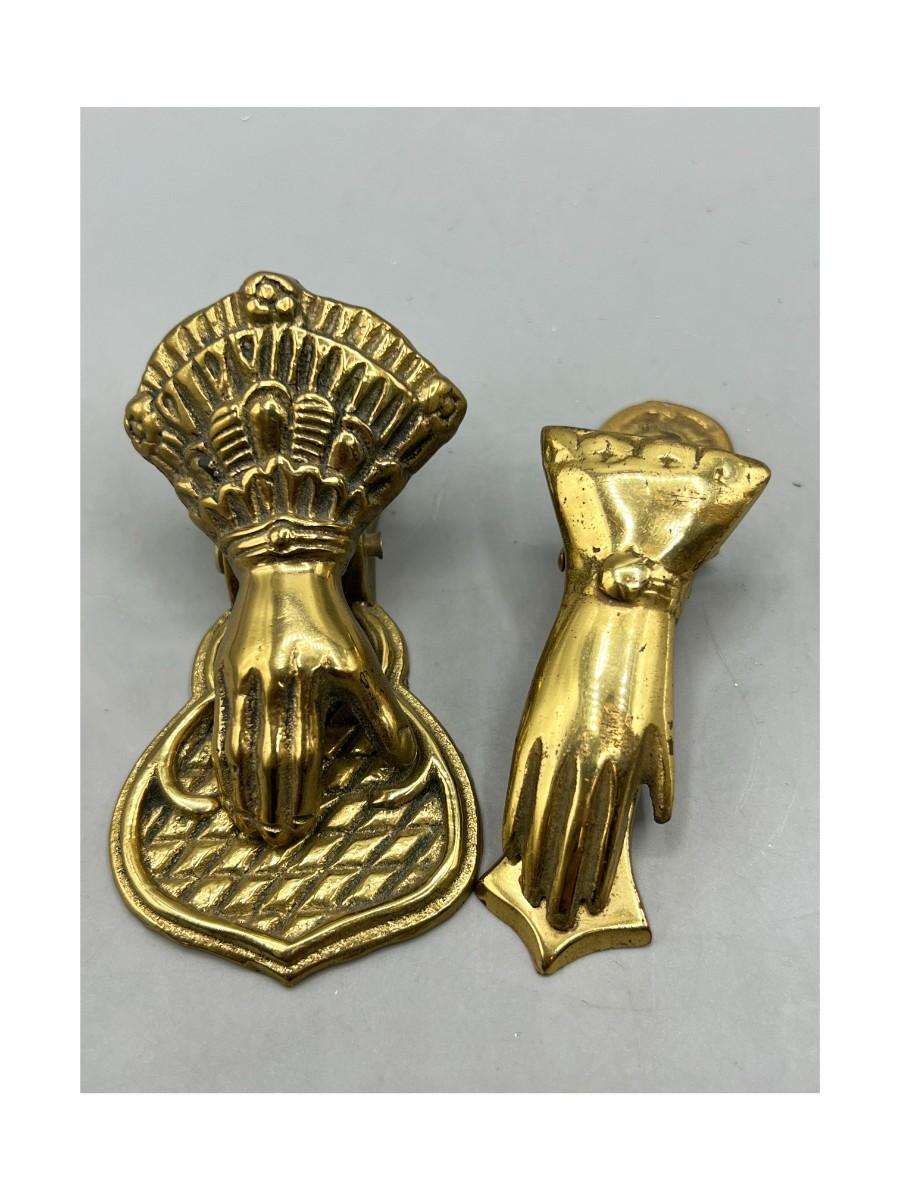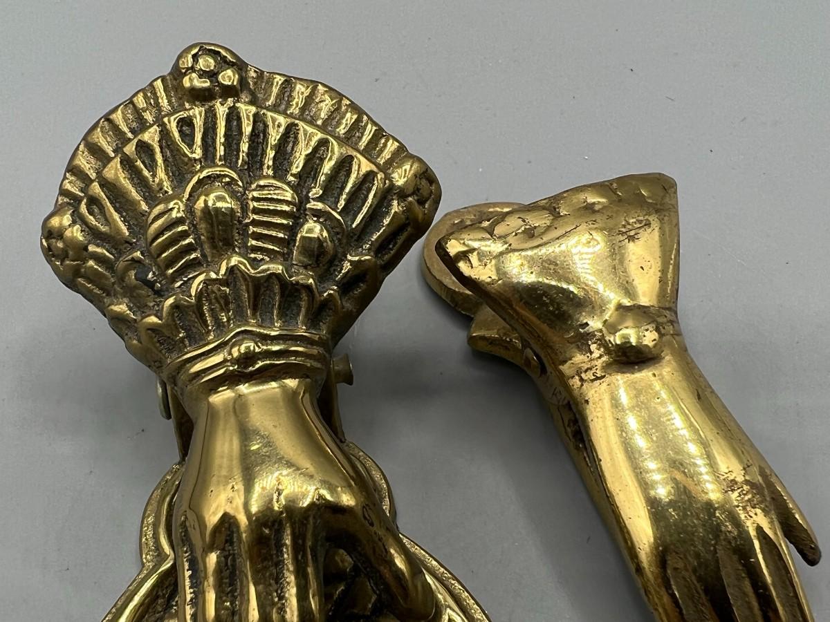 Pair of Hanging Shiny Brass Ladies Hand Paper Clip Note Holders. Small 3" size clips. In good condition.