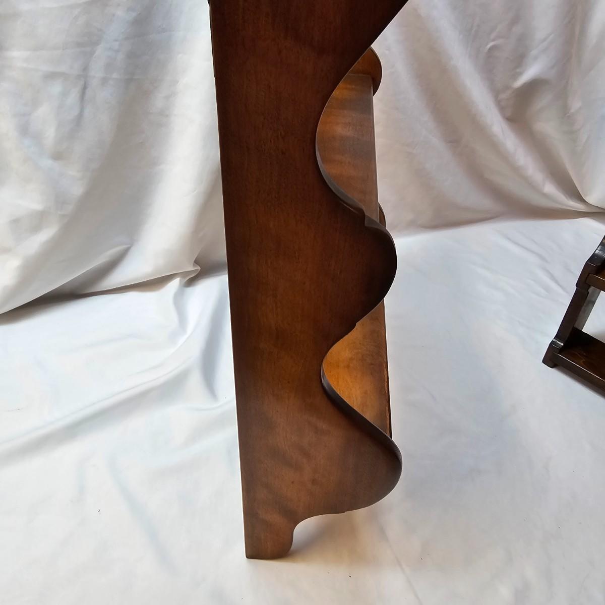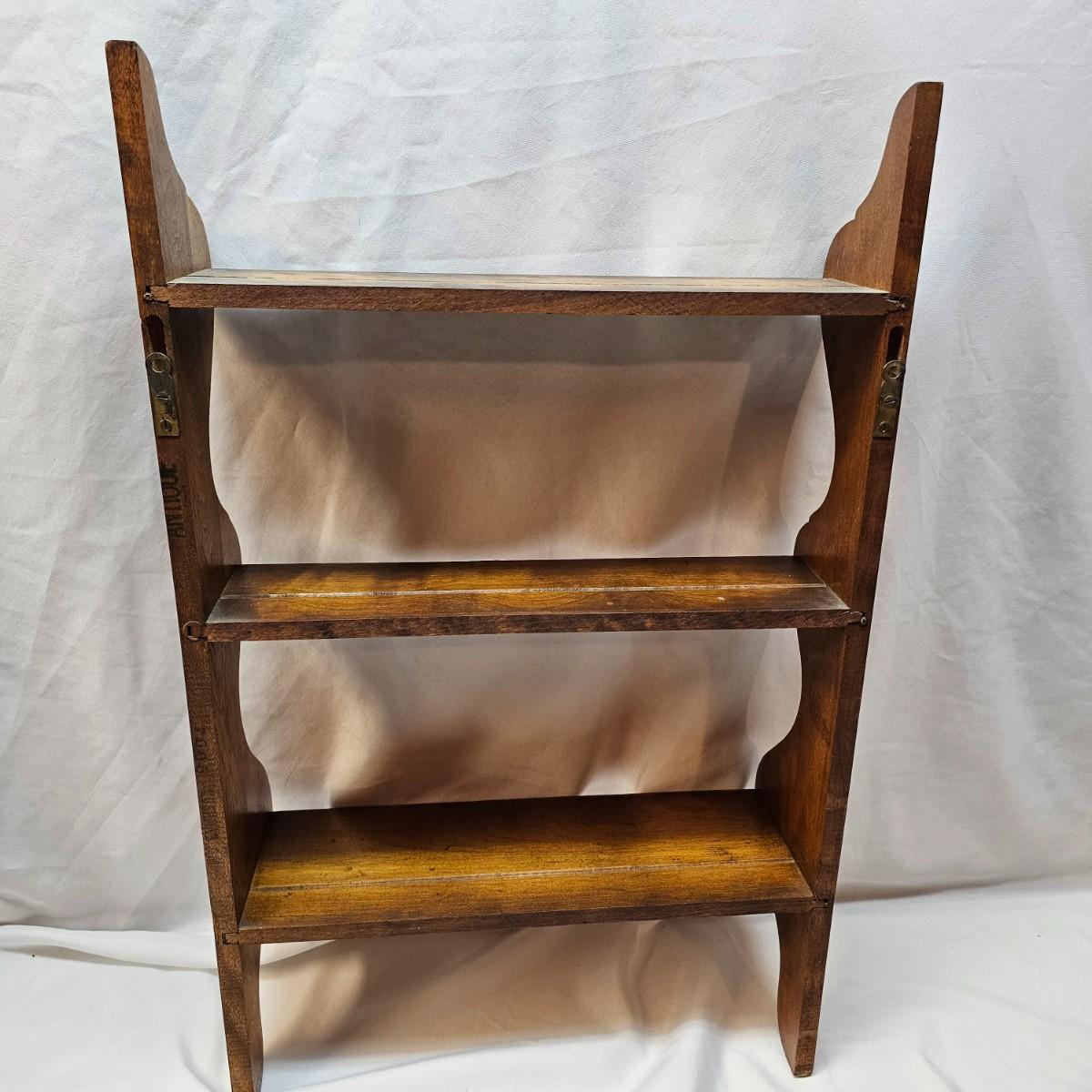 Two wooden racks for wall mounting and display. Large rack appears to be maple, is 18"x 6" x 29"H, has plate grooves cut in each of three shelves. Smaller rack is pine, measures 12.5" x 3.5" x 11"H, has two shelves. See photos for details. Local pickup only.