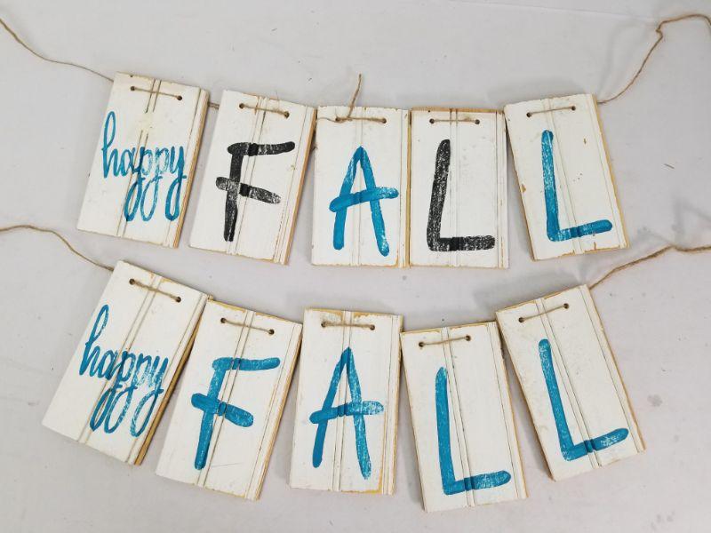 Pair of "Happy Fall" Wood & Twine Hanging Decor