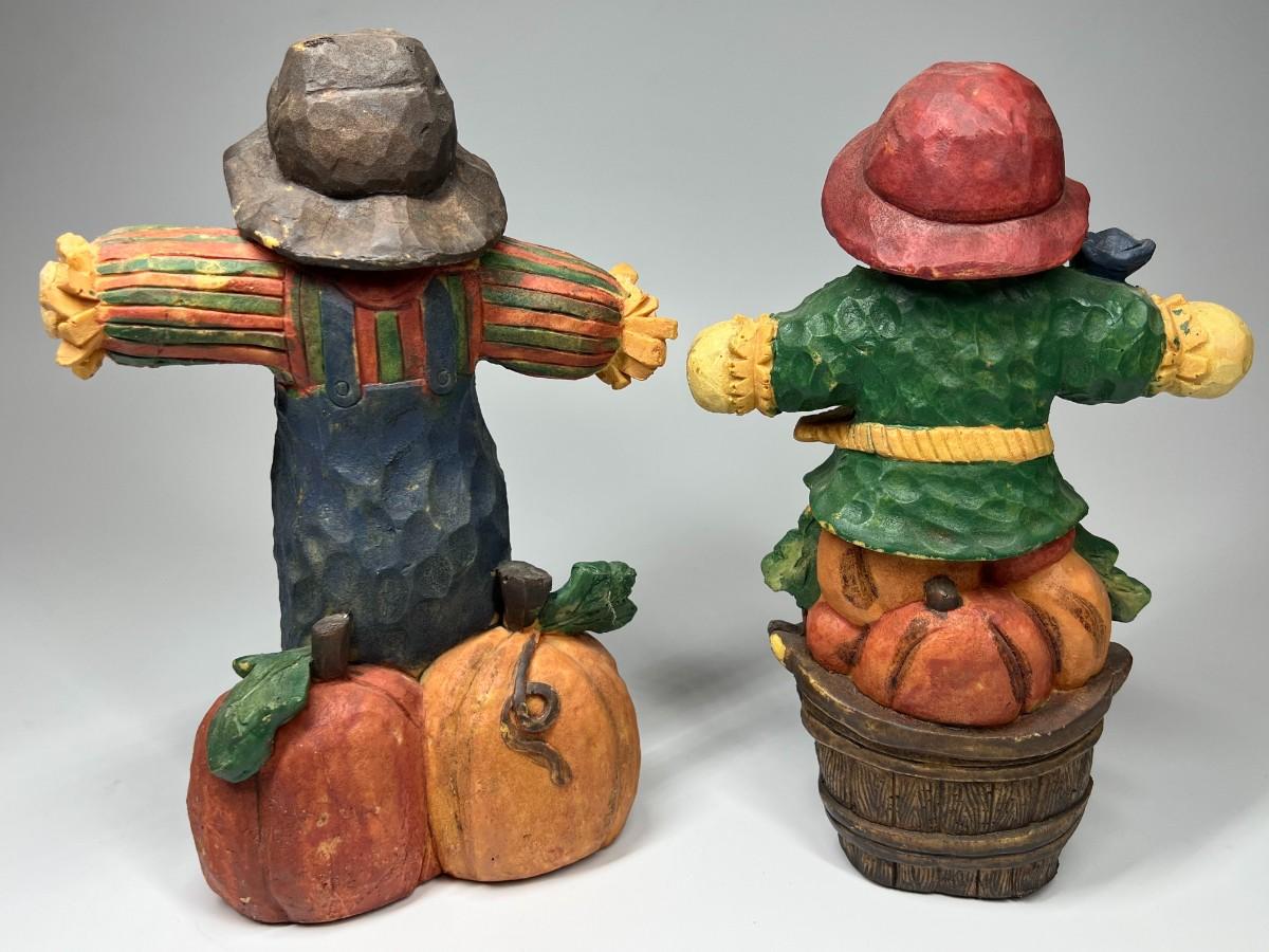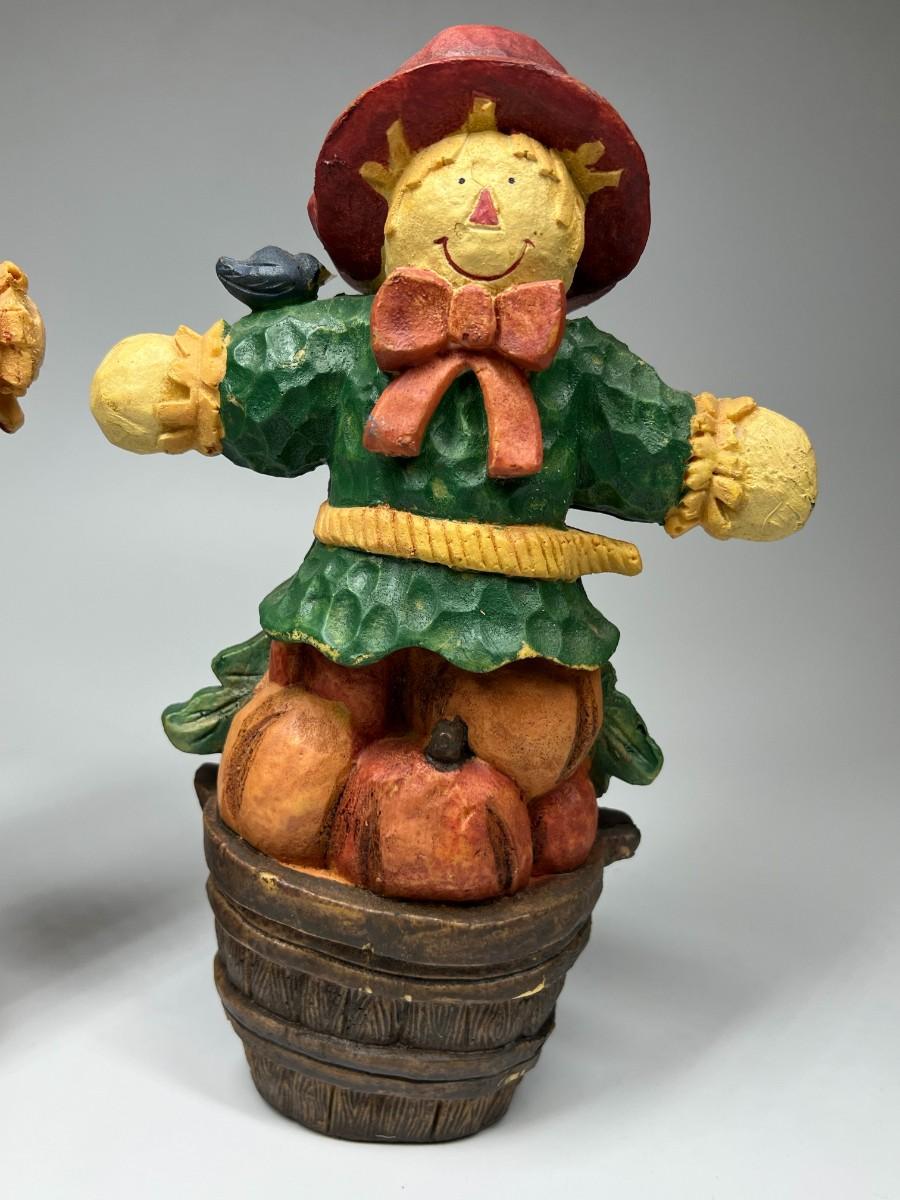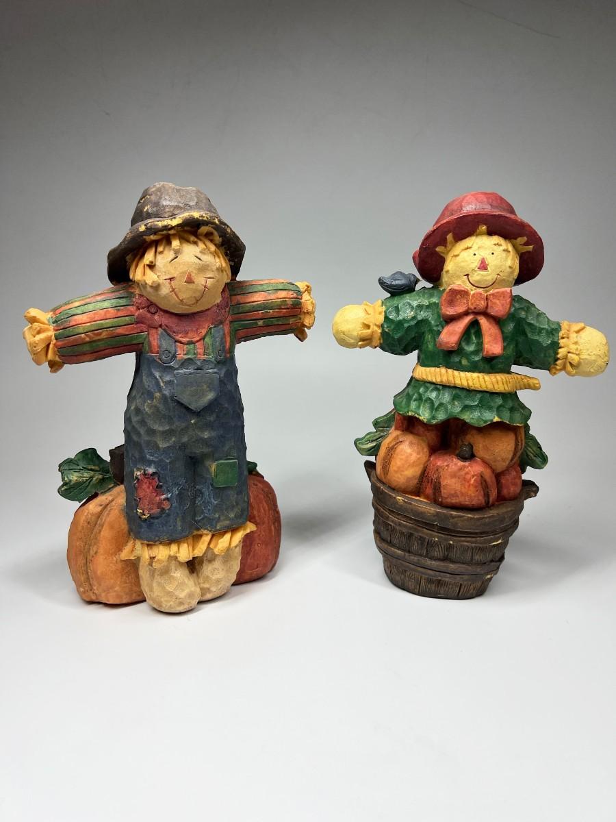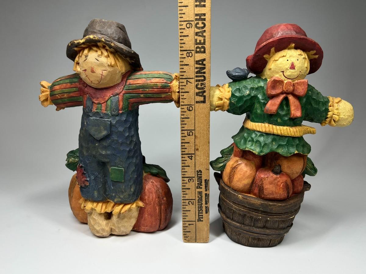 There is no significant damage to either of the scarecrows and is in good displayable condition. Check pictures for more details and for sizing.