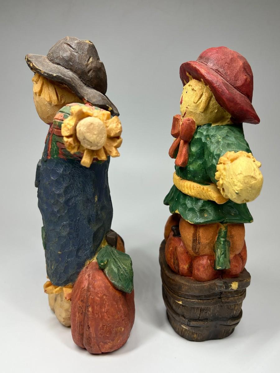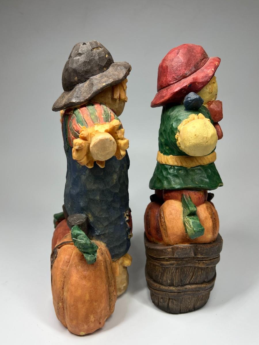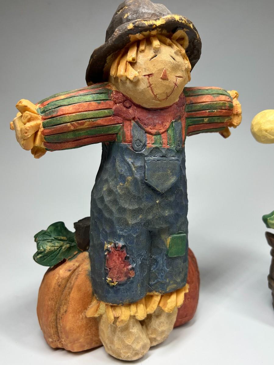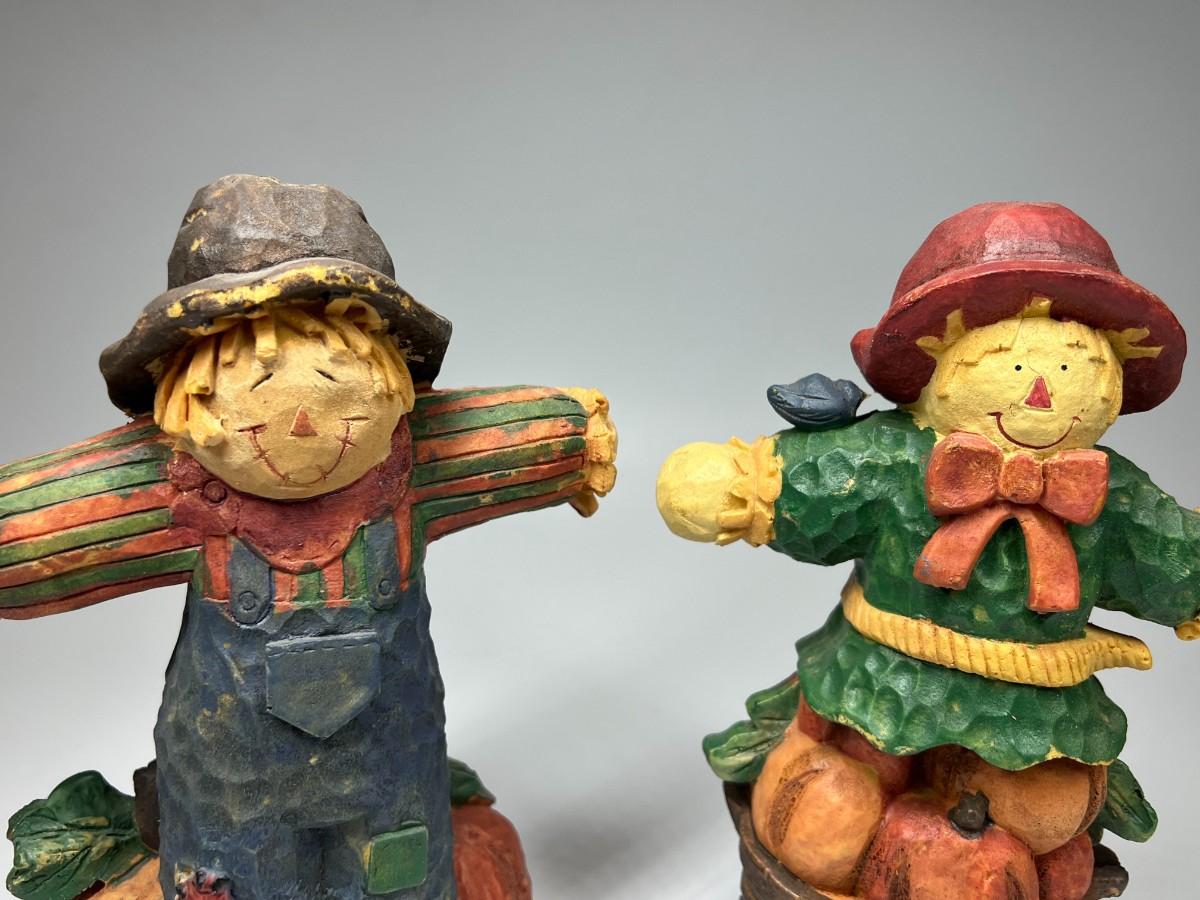 There is no significant damage to either of the scarecrows and is in good displayable condition. Check pictures for more details and for sizing.