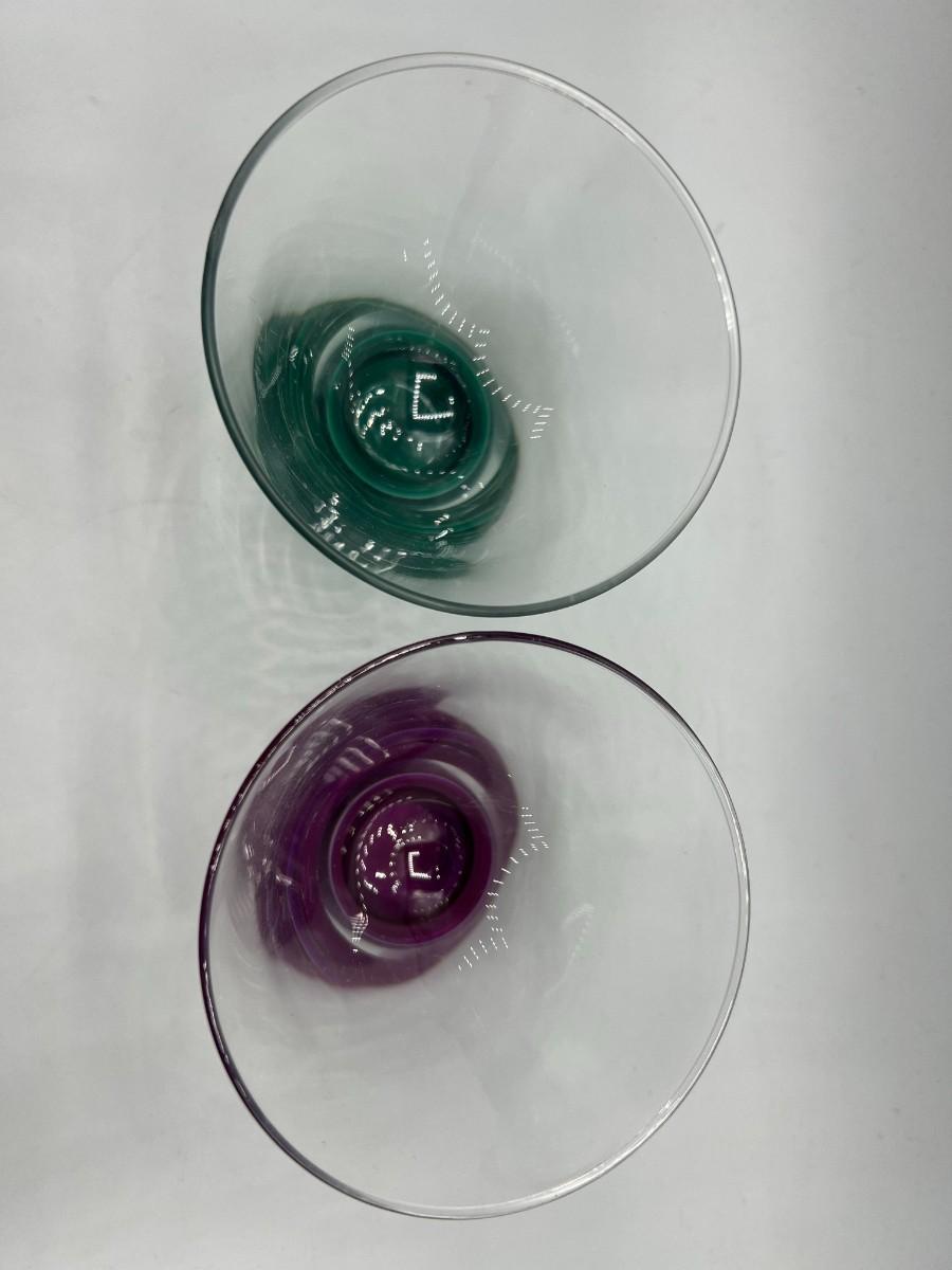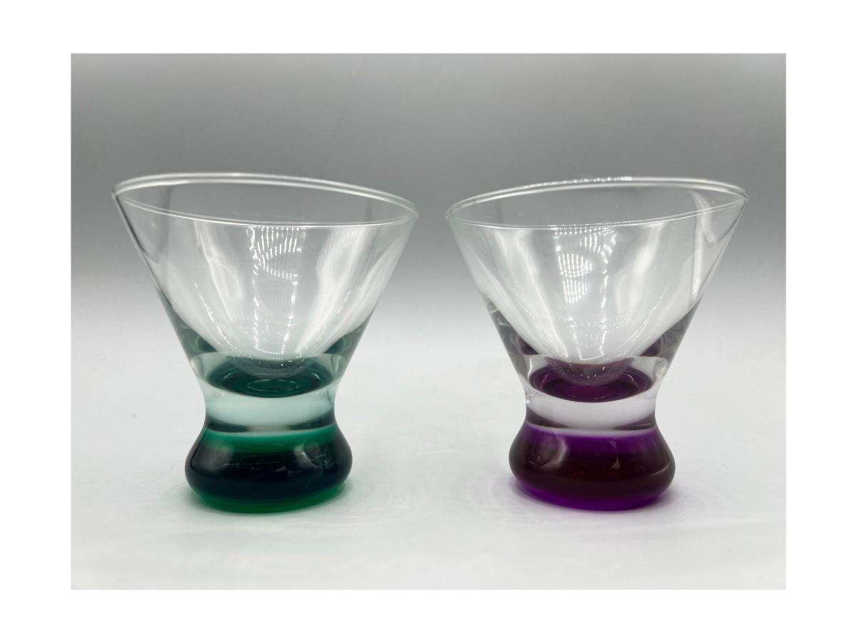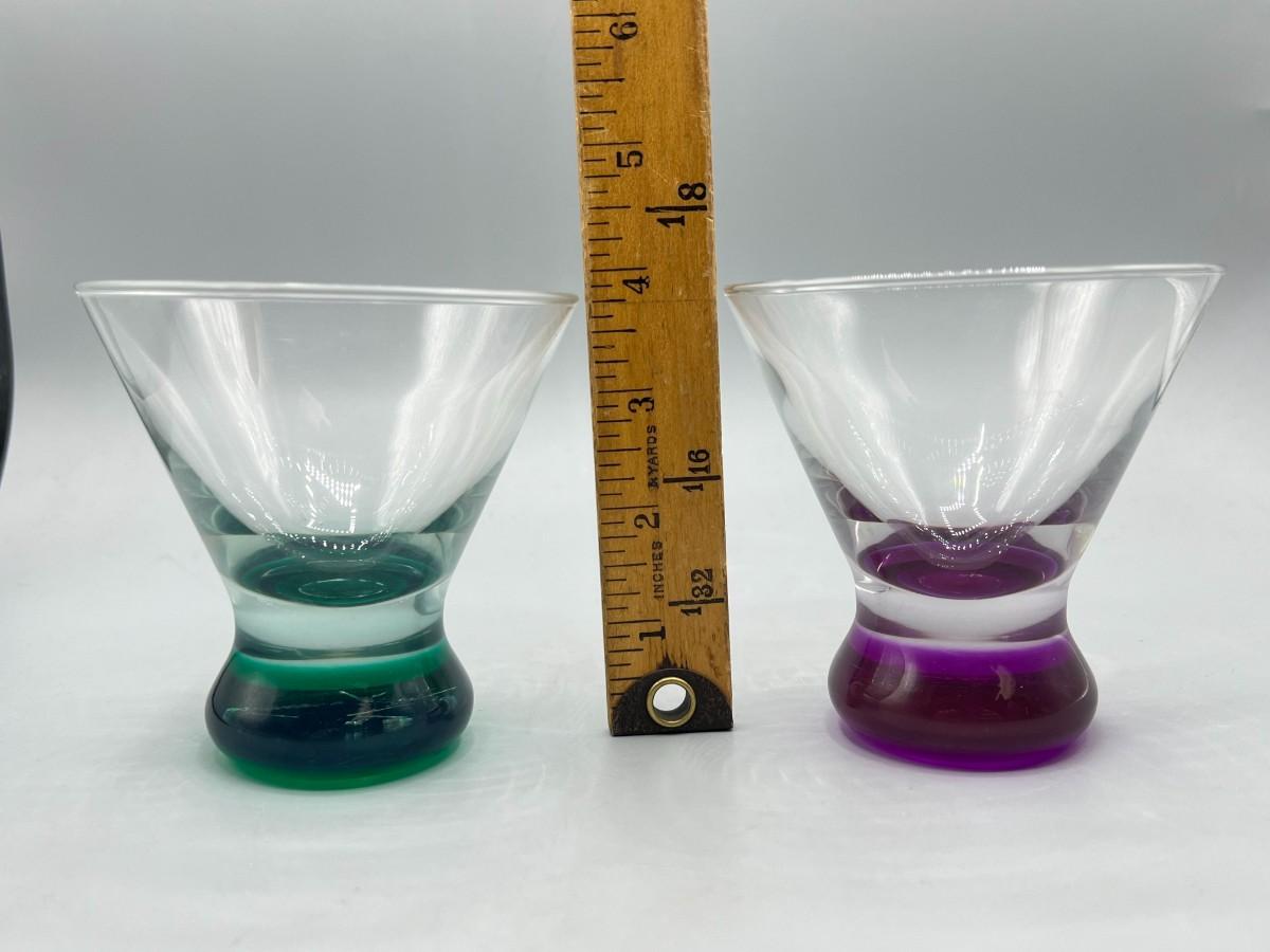 Pair of Heavy Bottom Cordial Shot Glasses Green & Purple