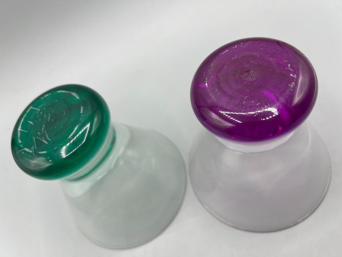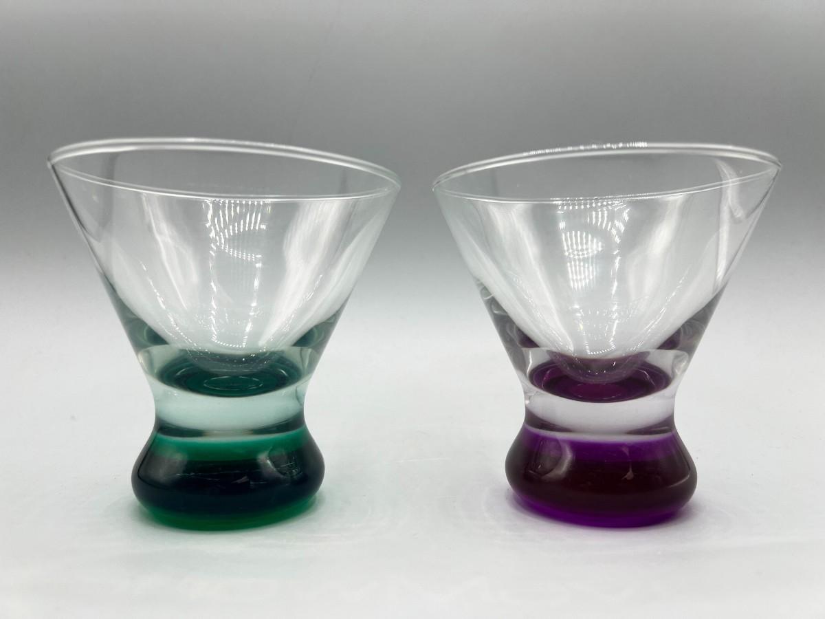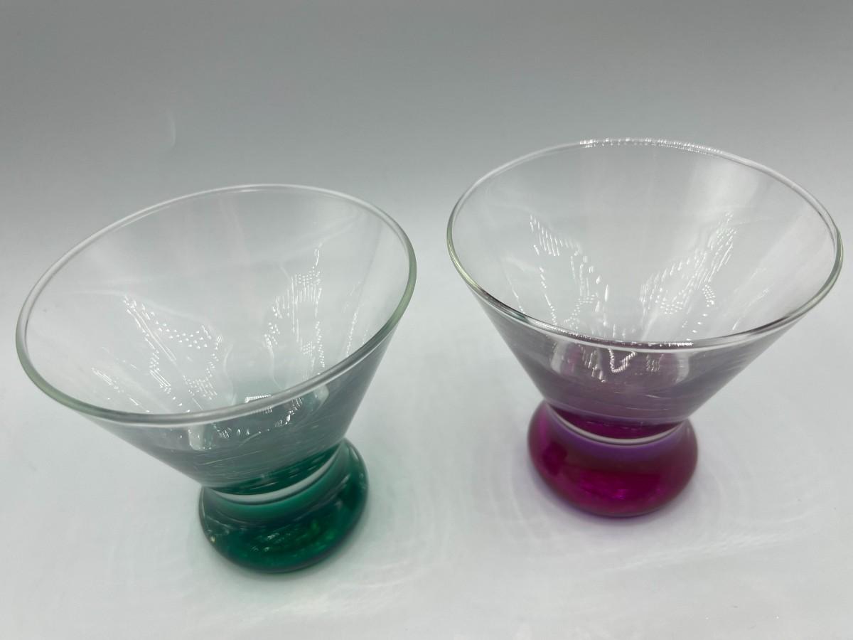 Pair of Heavy Bottom Cordial Shot Glasses Green & Purple