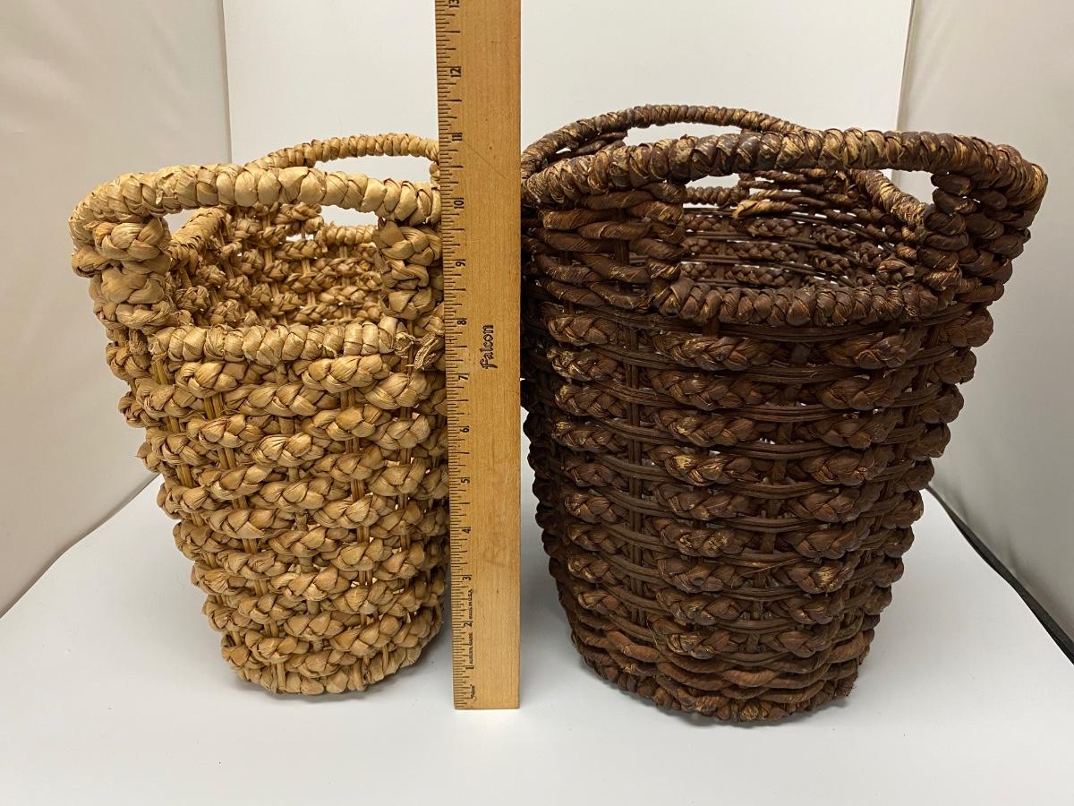 Pair of Heavy-Duty Woven Wicker Baskets Magazine Newspaper Storage