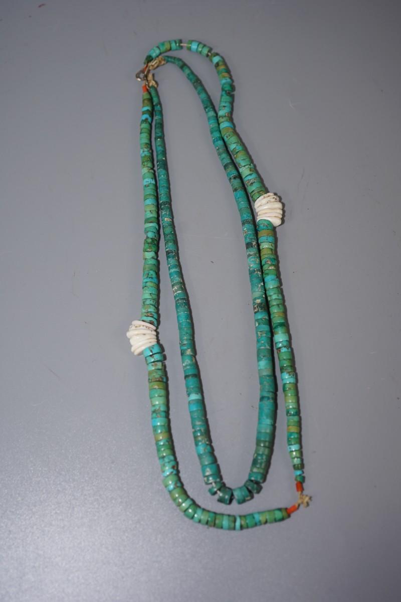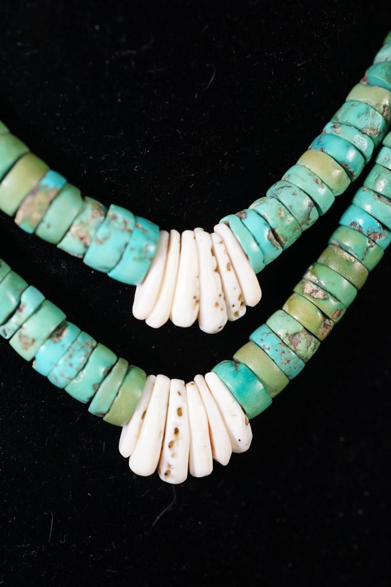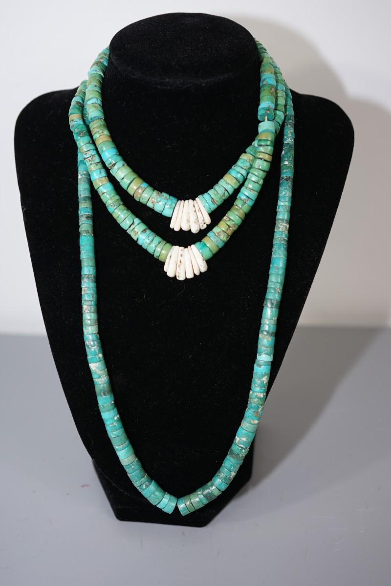 PAIR OF HEISHI TURQUOISE BEADED NECKLACES W/ SHELL