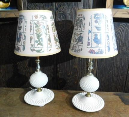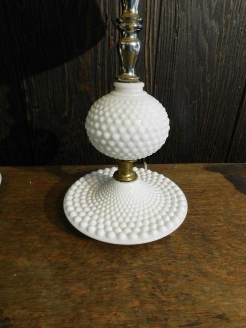 Pair of Hobnail Milk Glass Dresser Top Lamps 17"