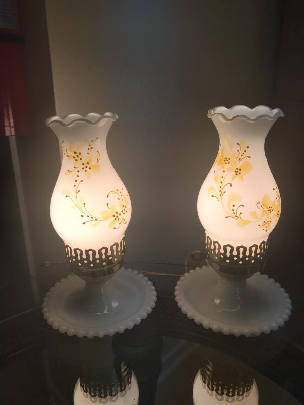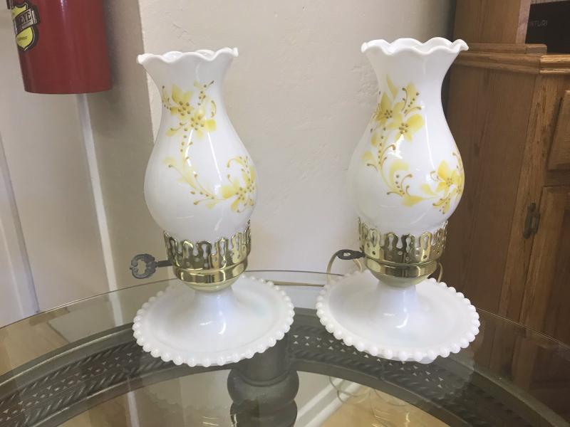 Pair of Hobnob Lamps with Yellow Flowers (Item #107)