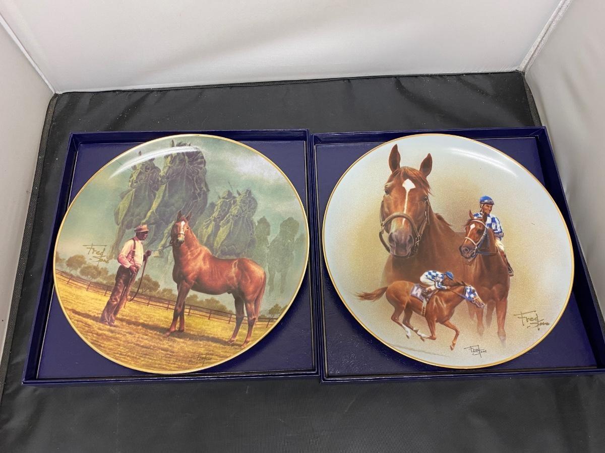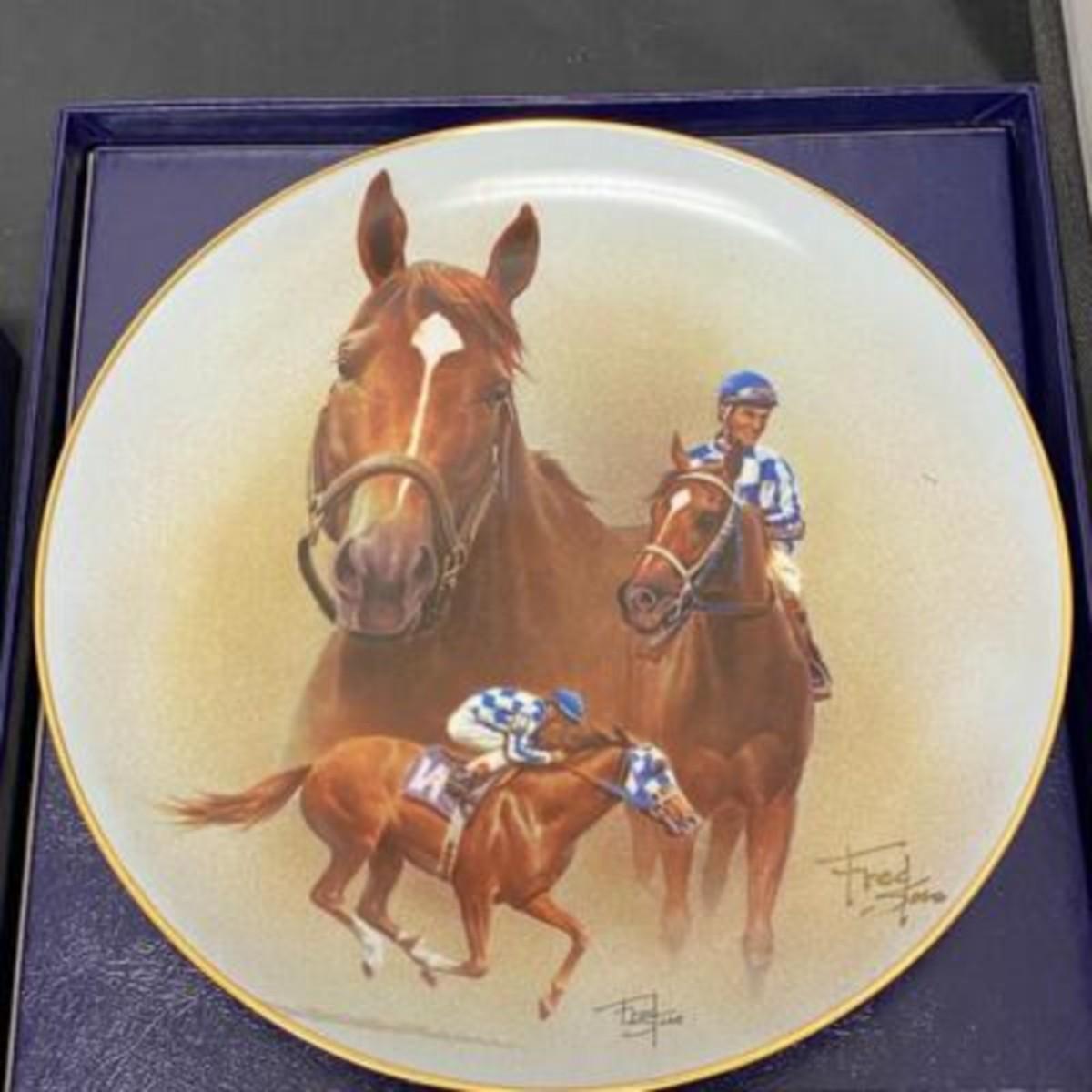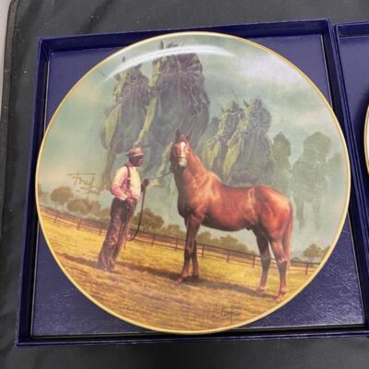 Pair of Horse Racing Themed Collector Plates Man O'War Secretariat 1980s American Artists