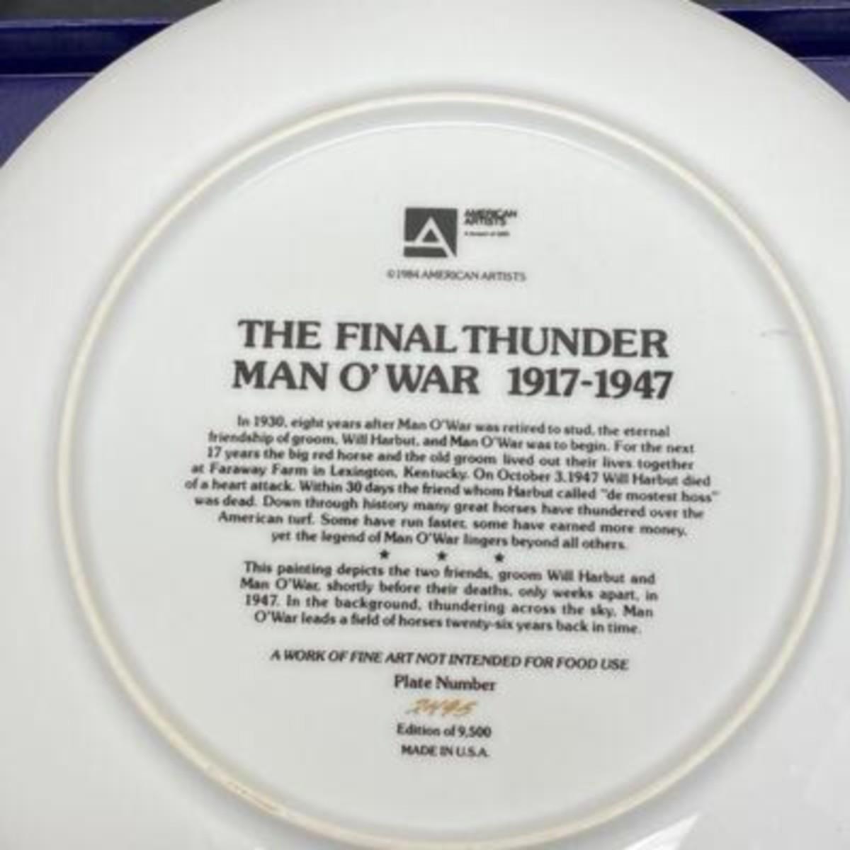 Pair of 1980s American Artists collector plates. Both representing horse racing and famous horses Man O'War and Secretariat. Come in their original boxes, good condition.