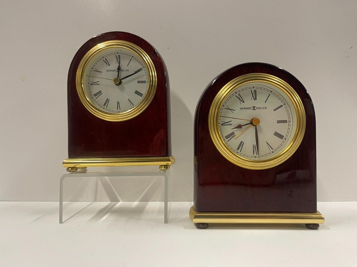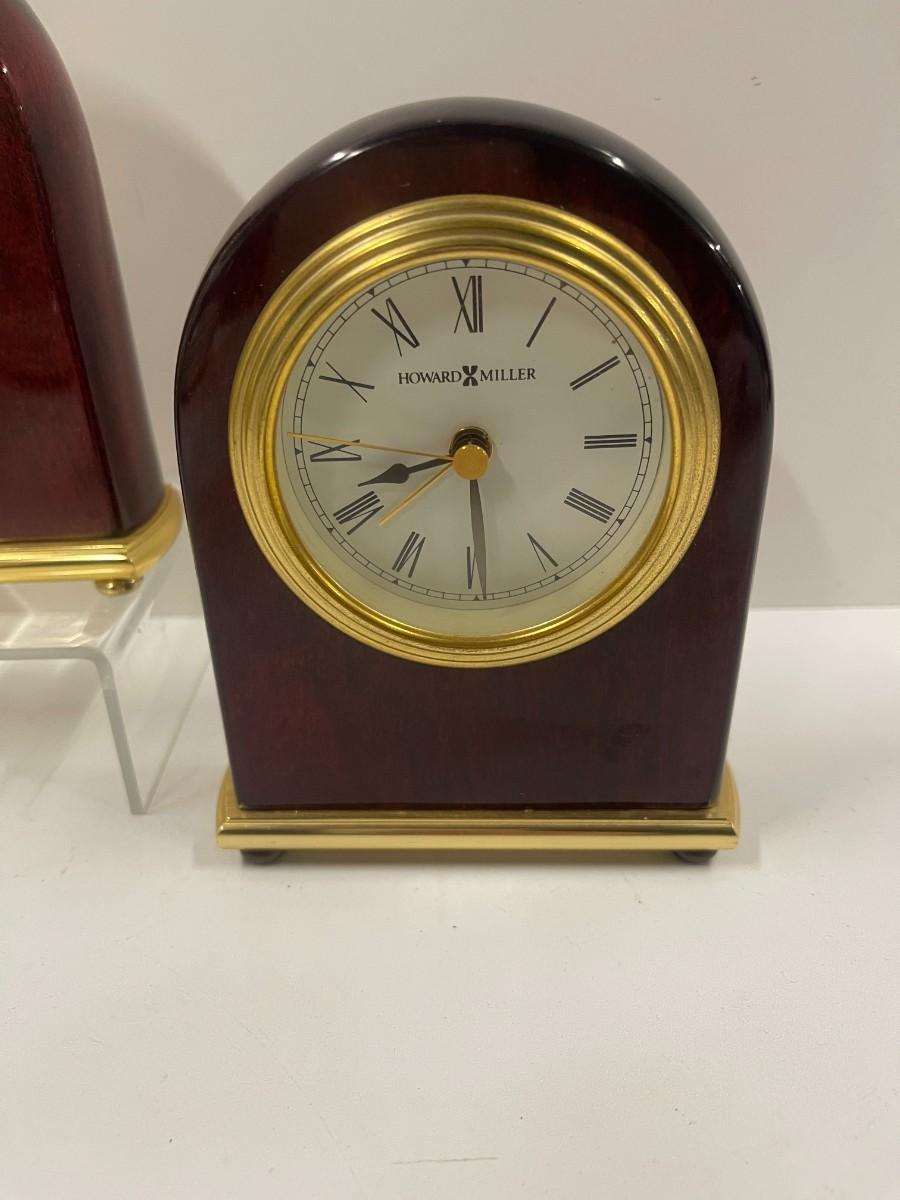 Pair of Howard Miller Rosewood Arch Tabletop Clocks