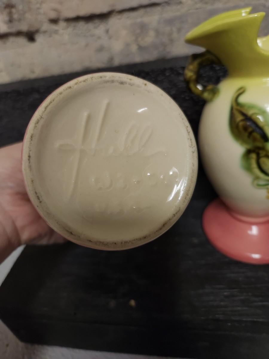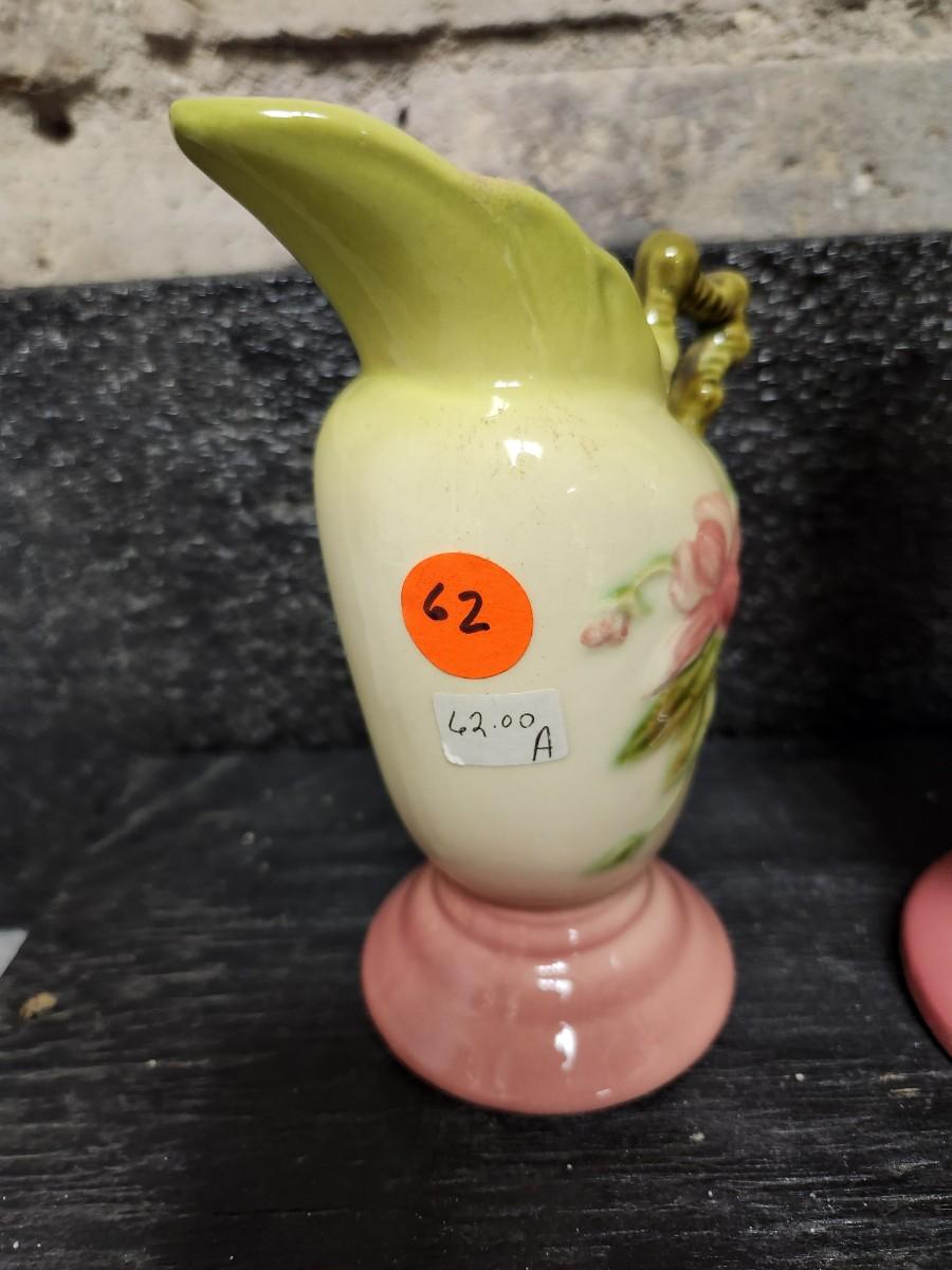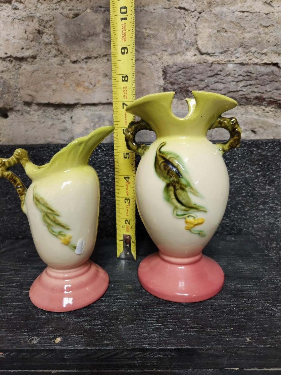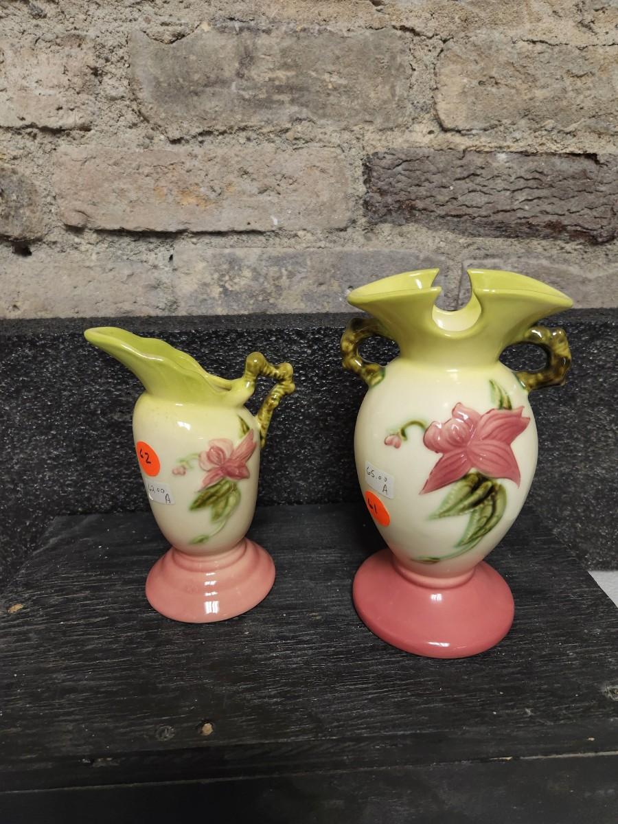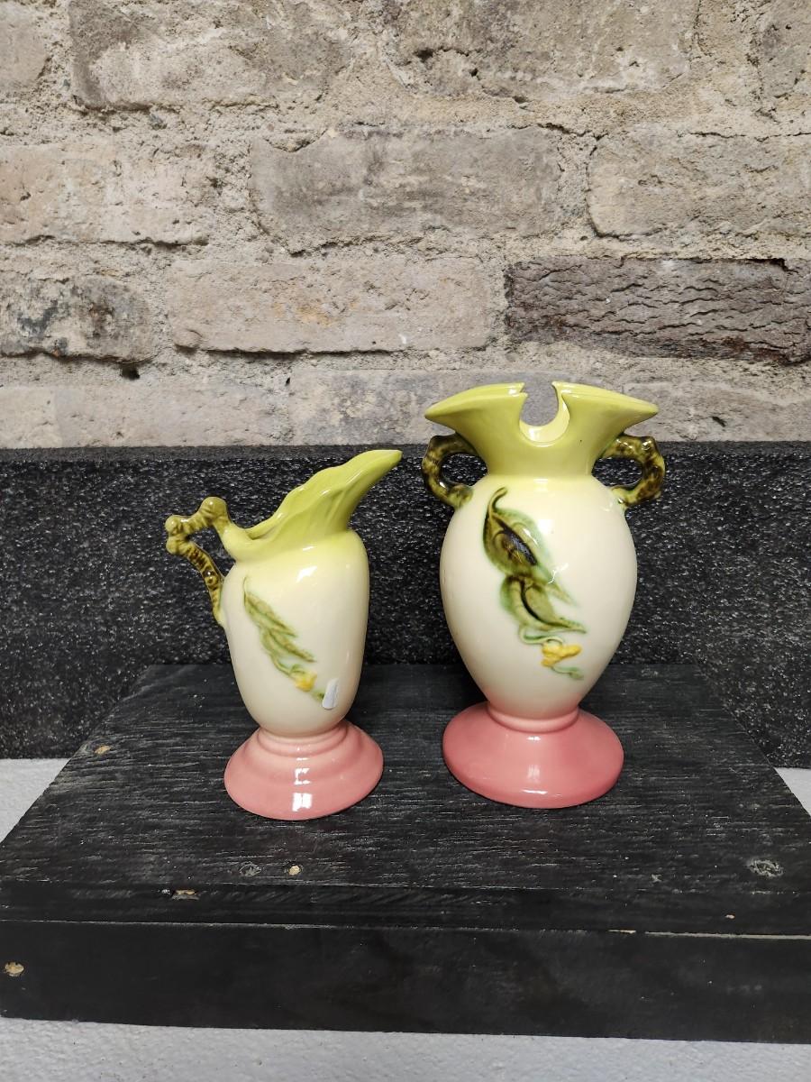 Pair of pink and green woodland pieces of Hull pottery