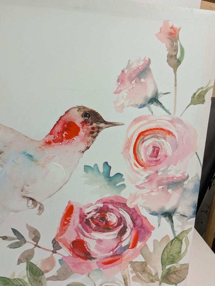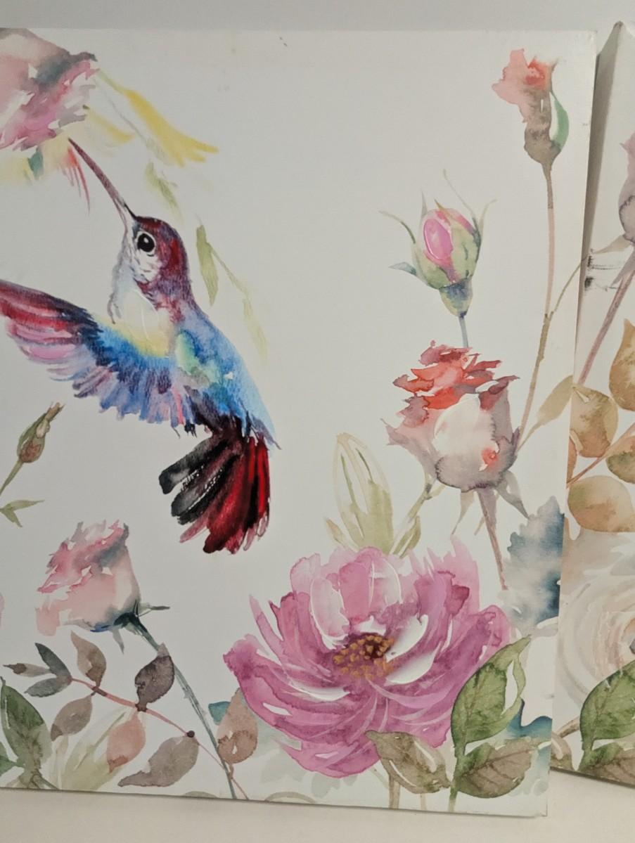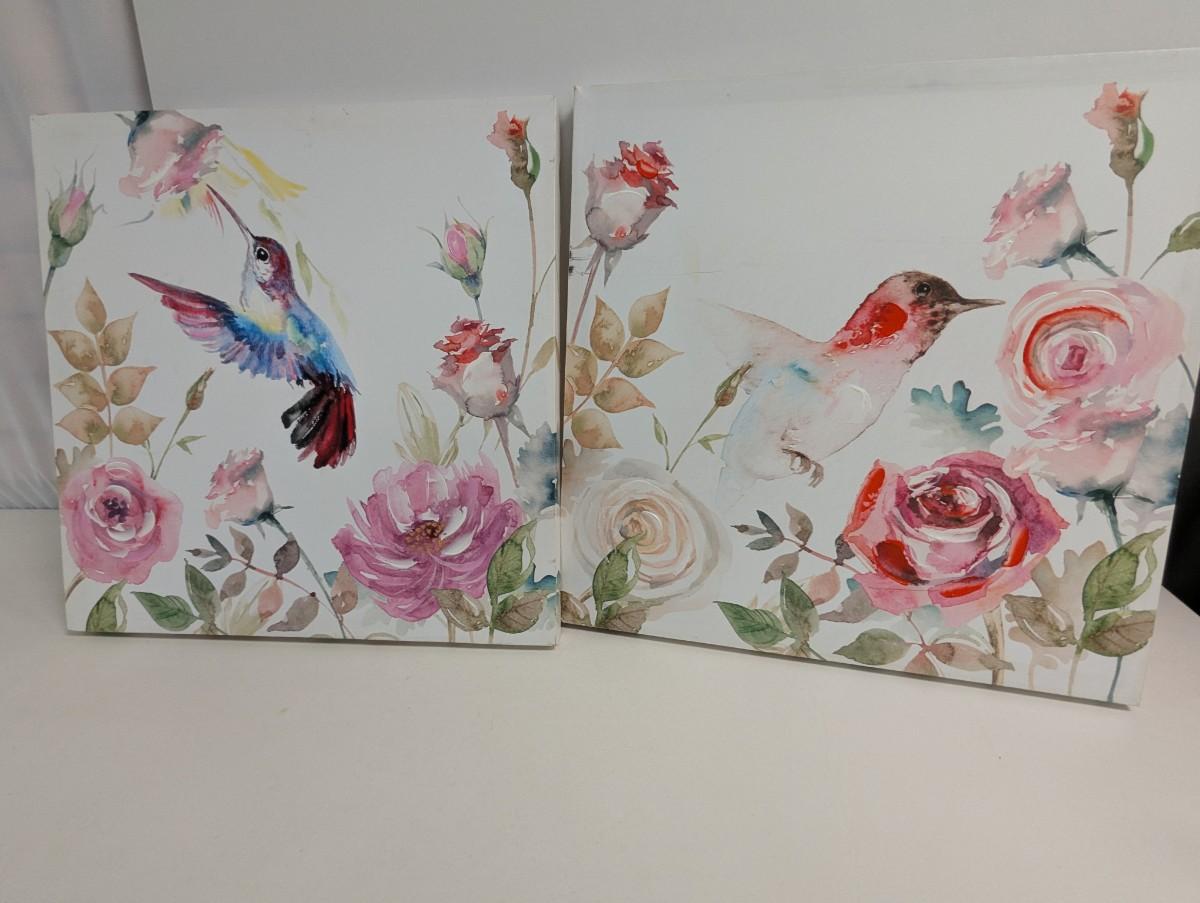 Pair Of Hummingbird Paintings On Canvas 19 3/4" x 19 3/4"