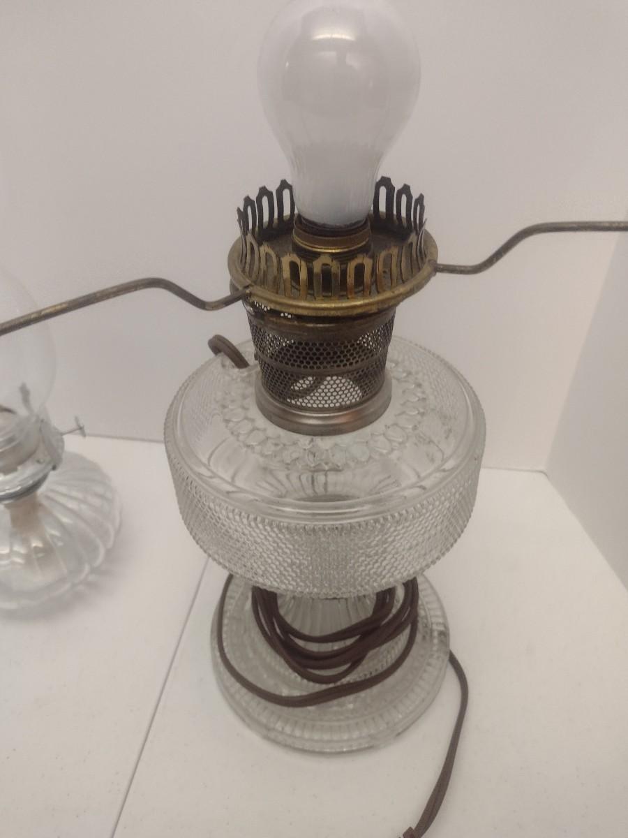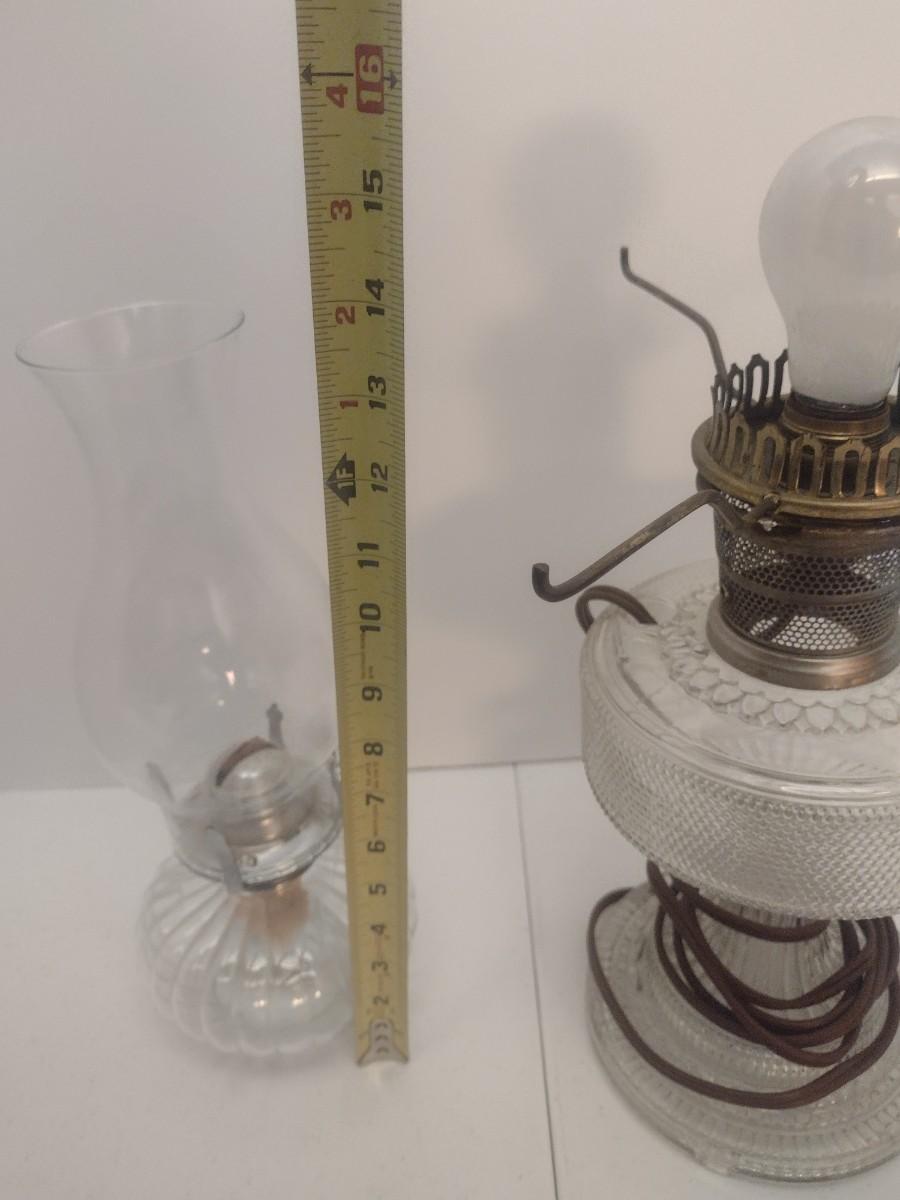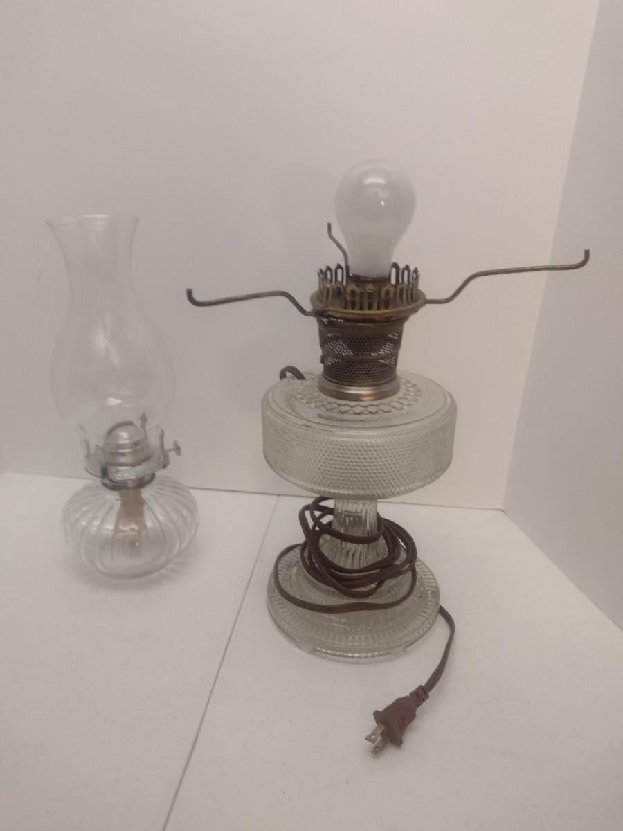 Pair of Hurricane Lamps One Electric and One Oil. As pictured. No shade for the electric lamp.