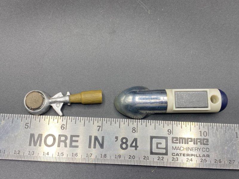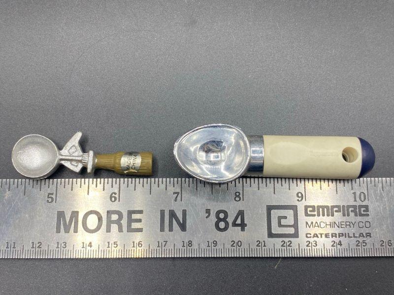 Pair of ice scoop fridge magnets. A couple inches in size. Great addition to any magnet collection.