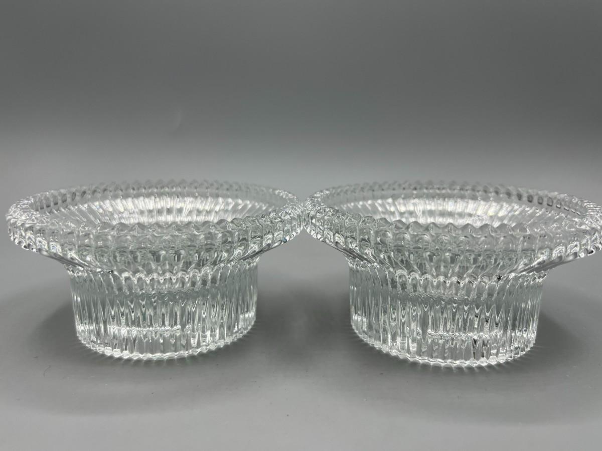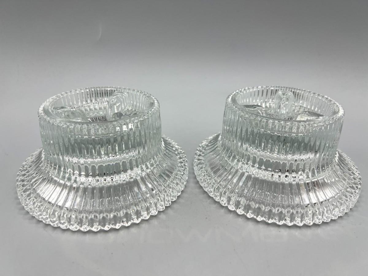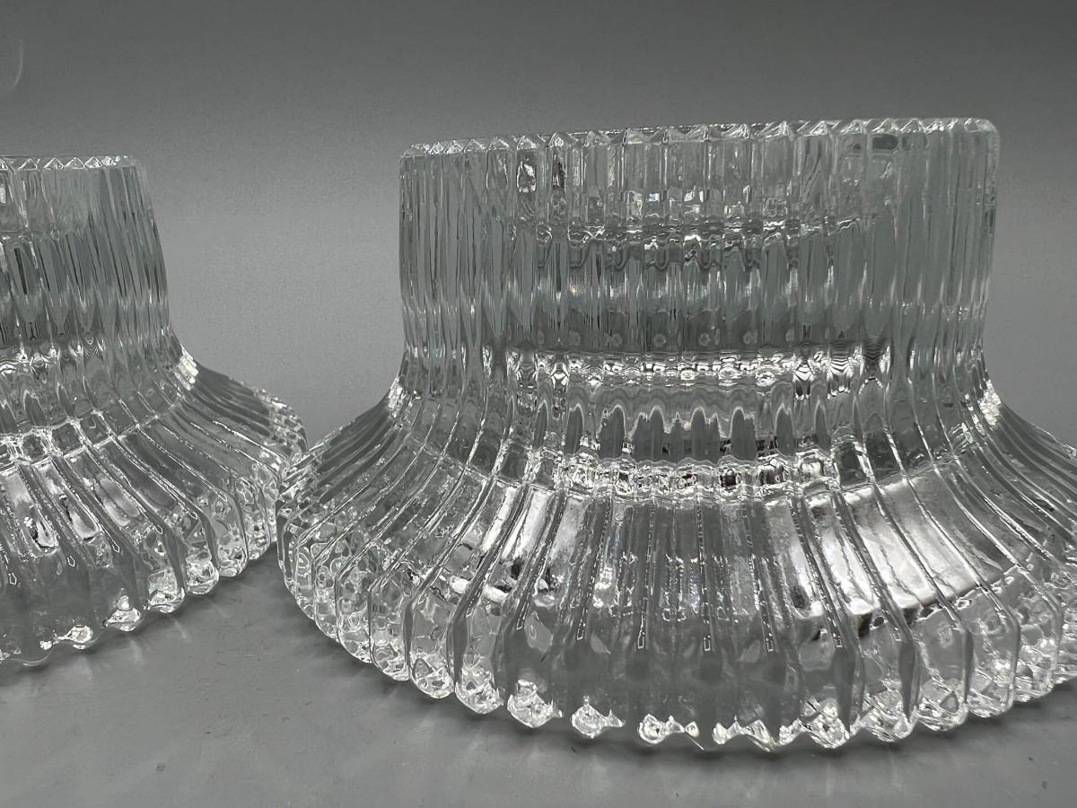 Pair of Imperial Glass Linear Pillar Textured Ribbed Candle Holders