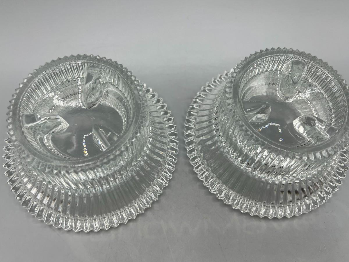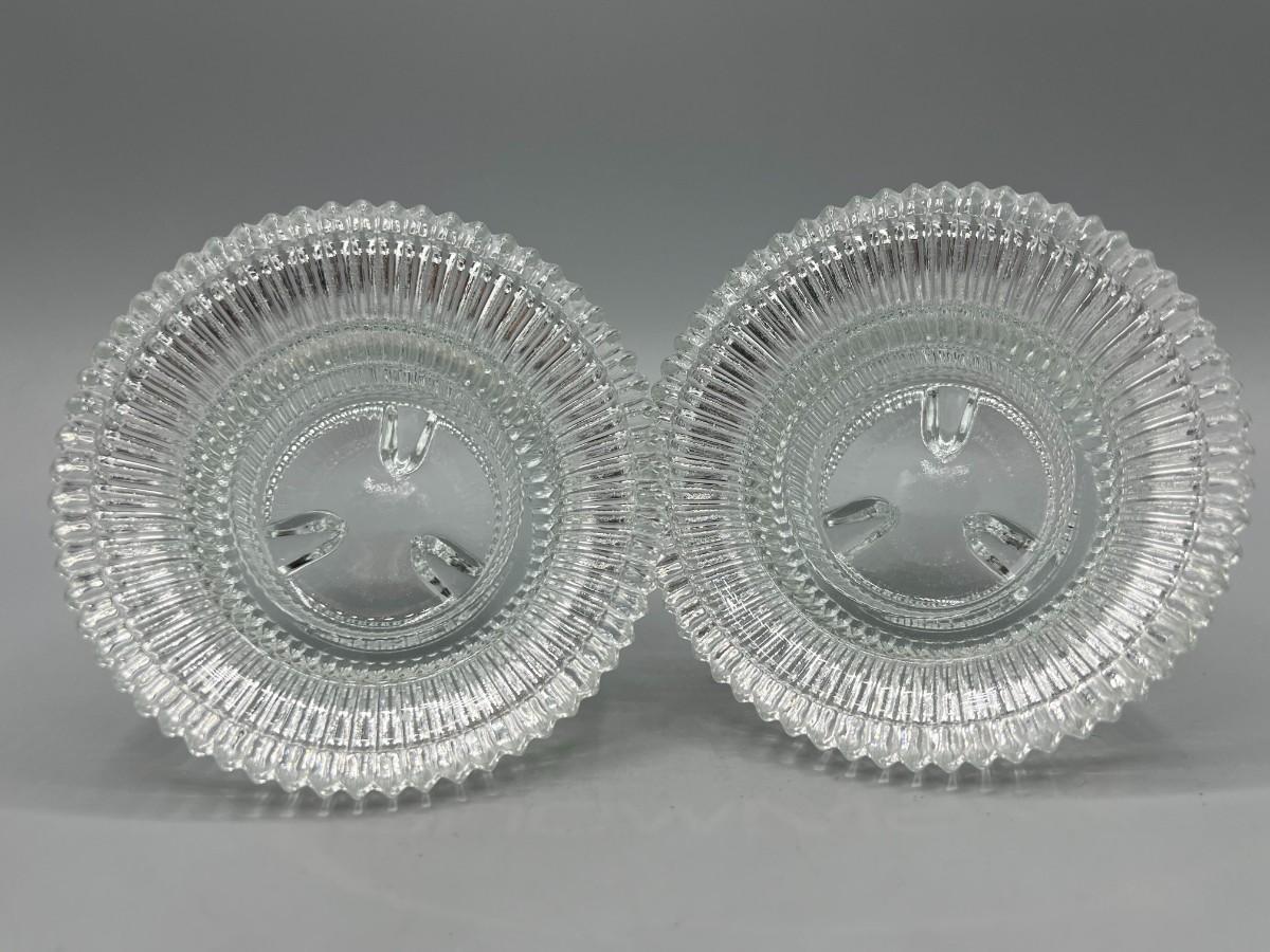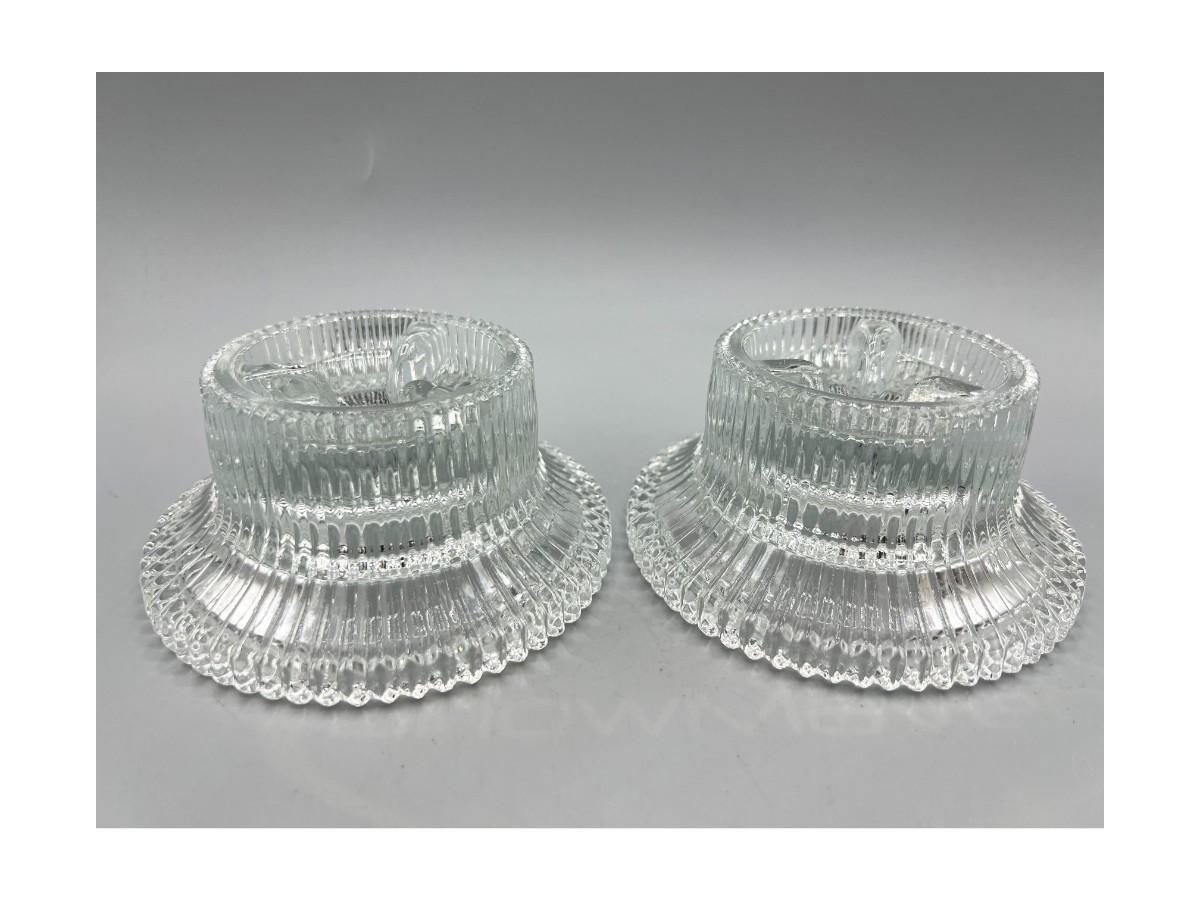 Pair of Imperial Glass Linear Pillar Textured Ribbed Candle Holders