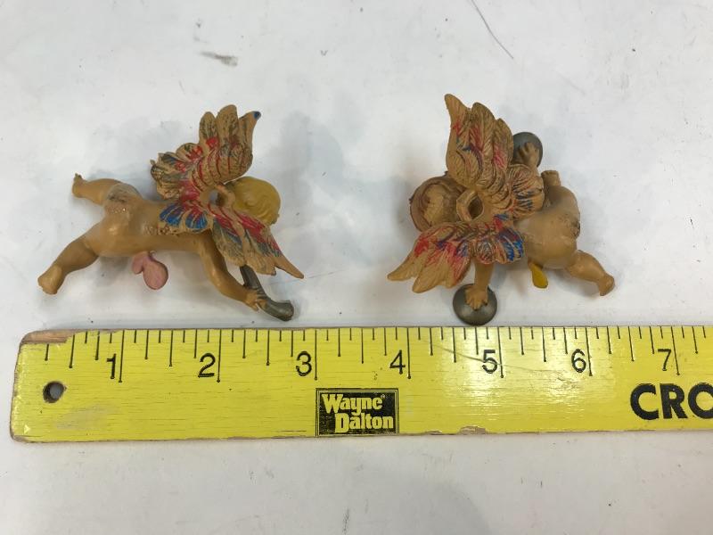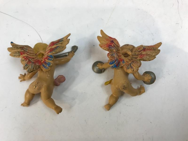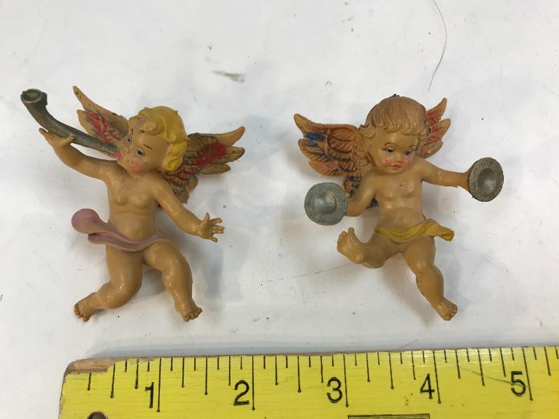 Pair of instrument playing cherubs. Made in Italy. Hang on the wall. About 3" size.