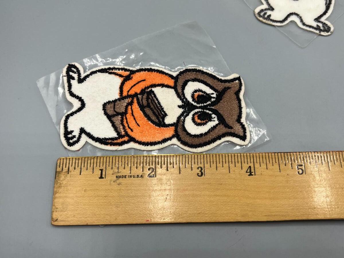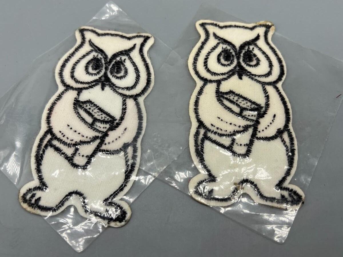 Pair of Iron On Cloth Reading Owl Patches, there is no signifncant damage to the patches and is in good useable condition. Check pictures for more details and for sizing.