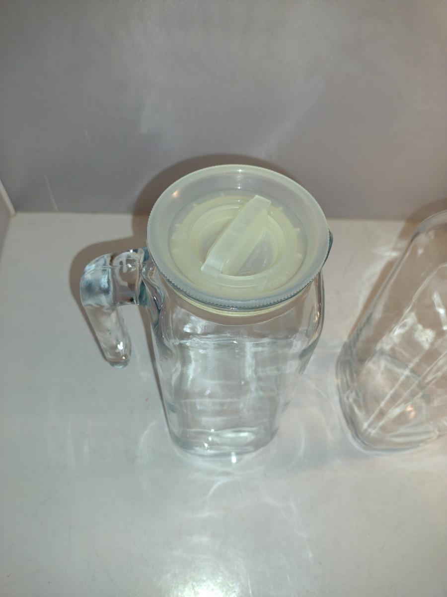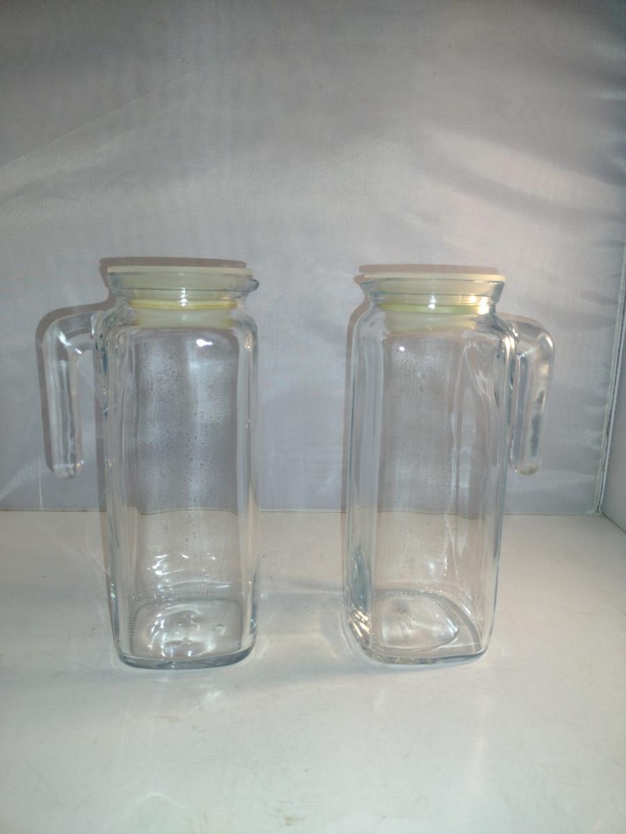 Pair of Italian Bormioli Rocco Juice/Beverage Carafes with Twist on Lids