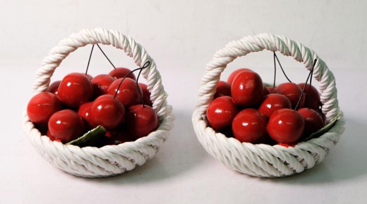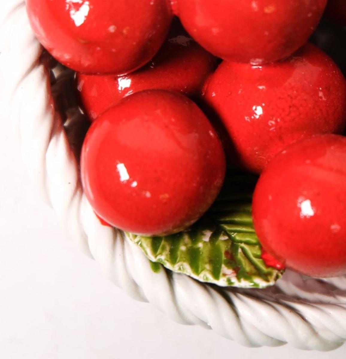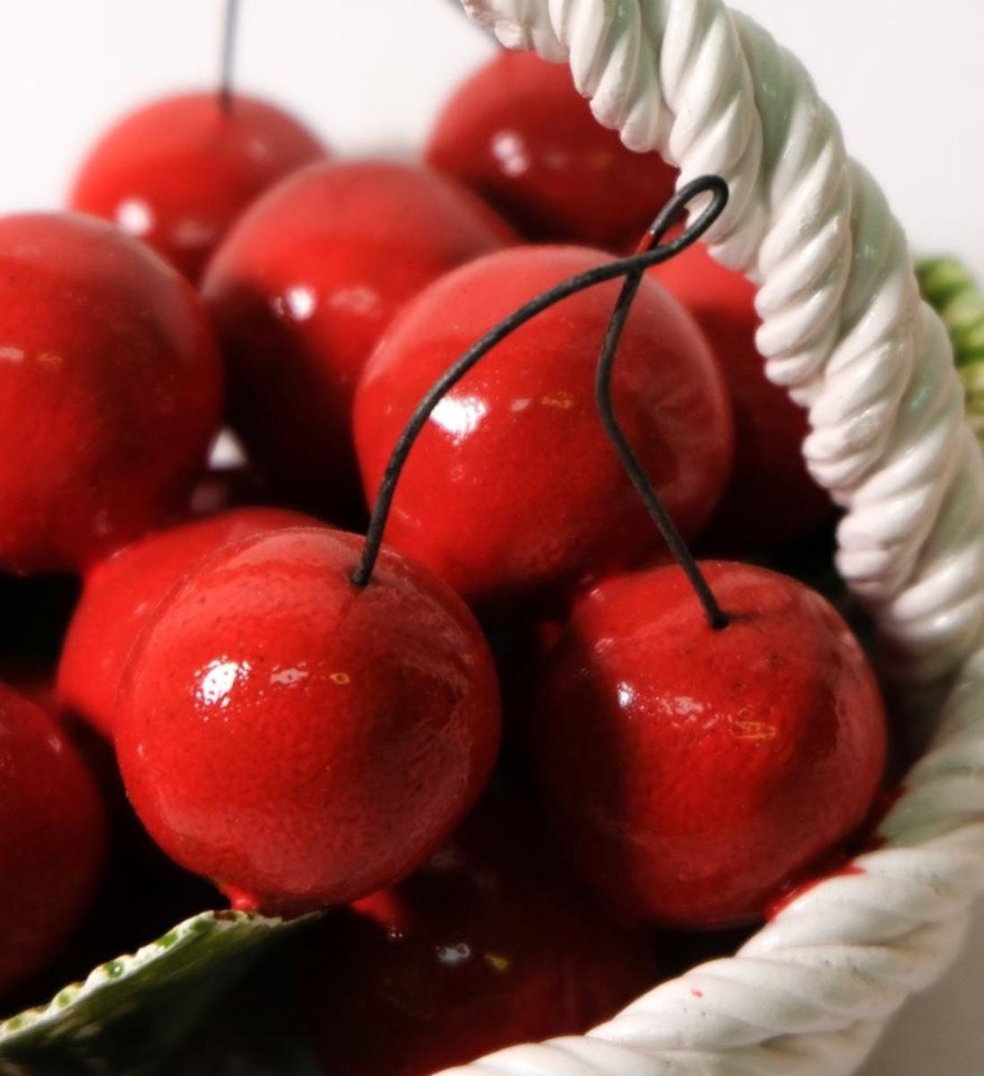 Pair of Italian Capodimonte Hand Painted Ceramic Cherry Baskets