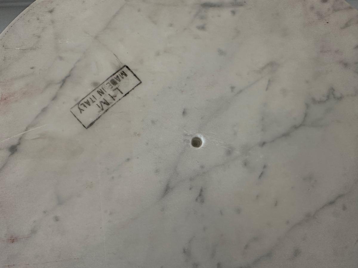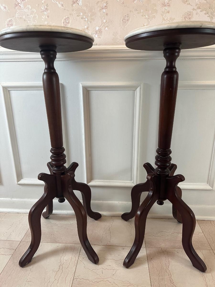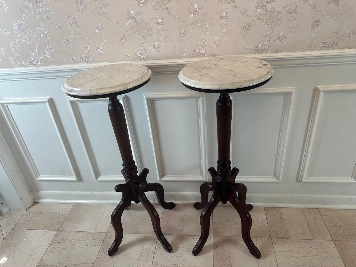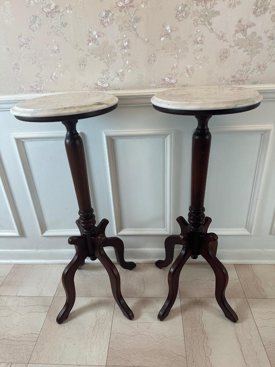 Pair of Italian Marble-Top Pedestal Side Tables, Made in Italy.