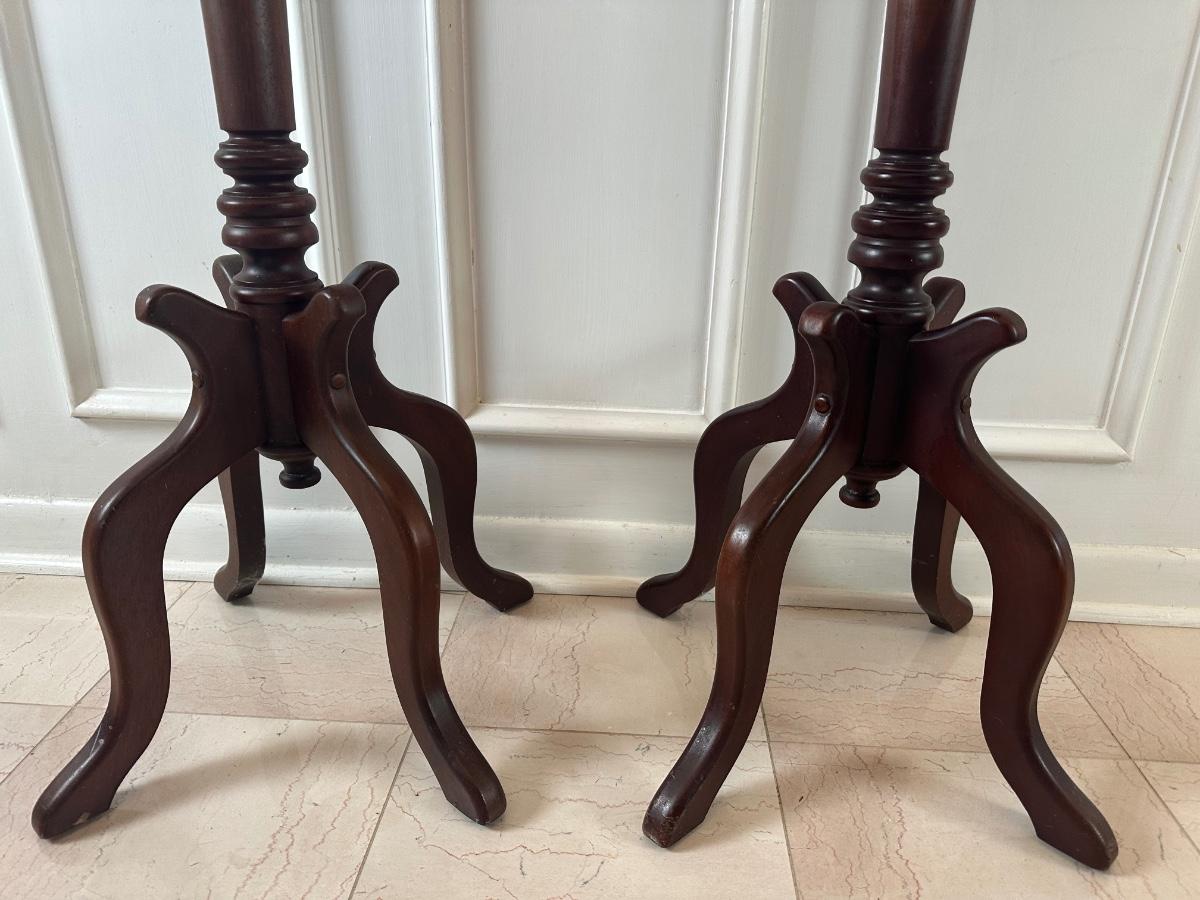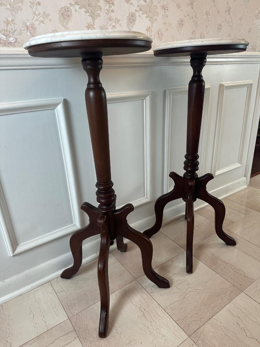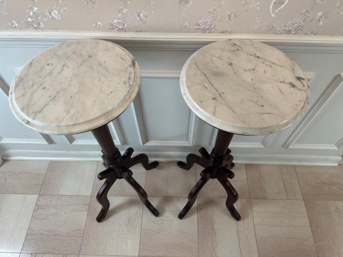 Pair of Italian Marble-Top Pedestal Side Tables, Made in Italy