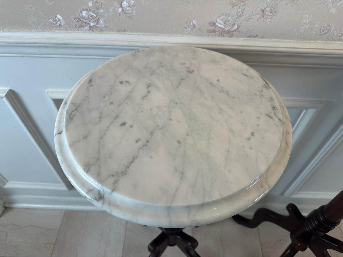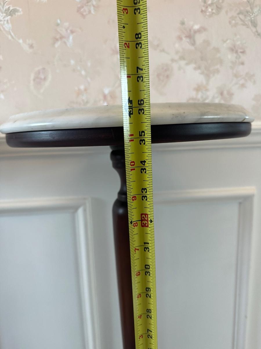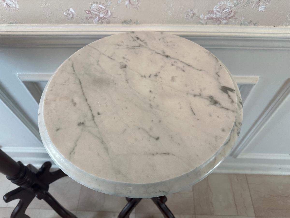 Pair of Italian Marble-Top Pedestal Side Tables, Made in Italy