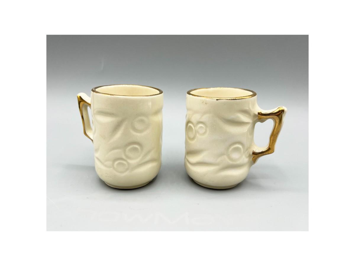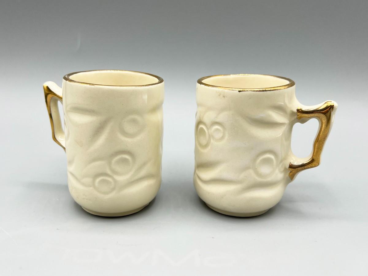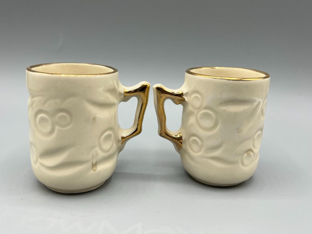 Pair of Ivory & Gold Miniature Demitasse Coffee Teacups Mugs
