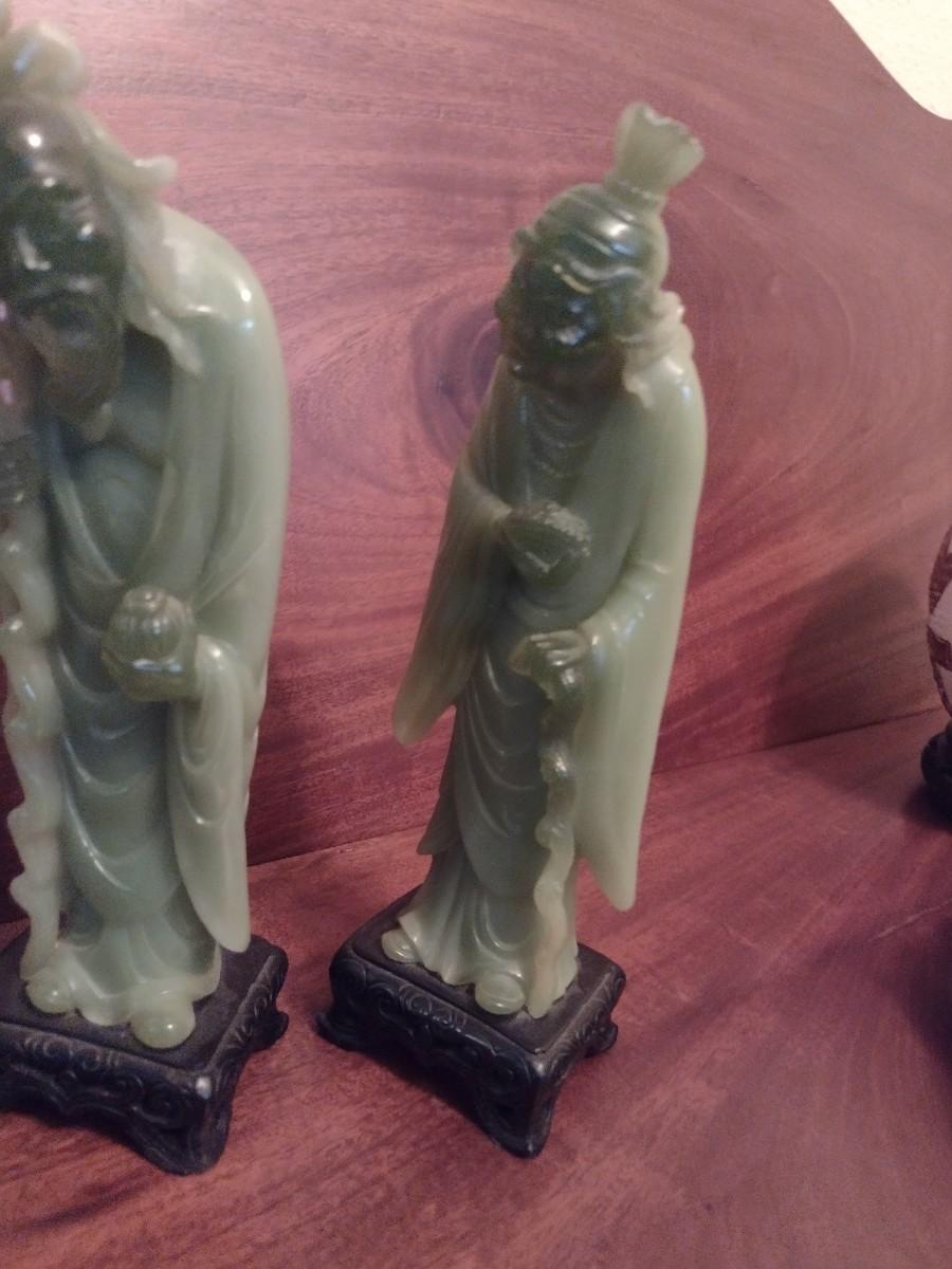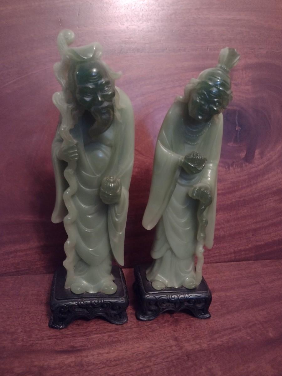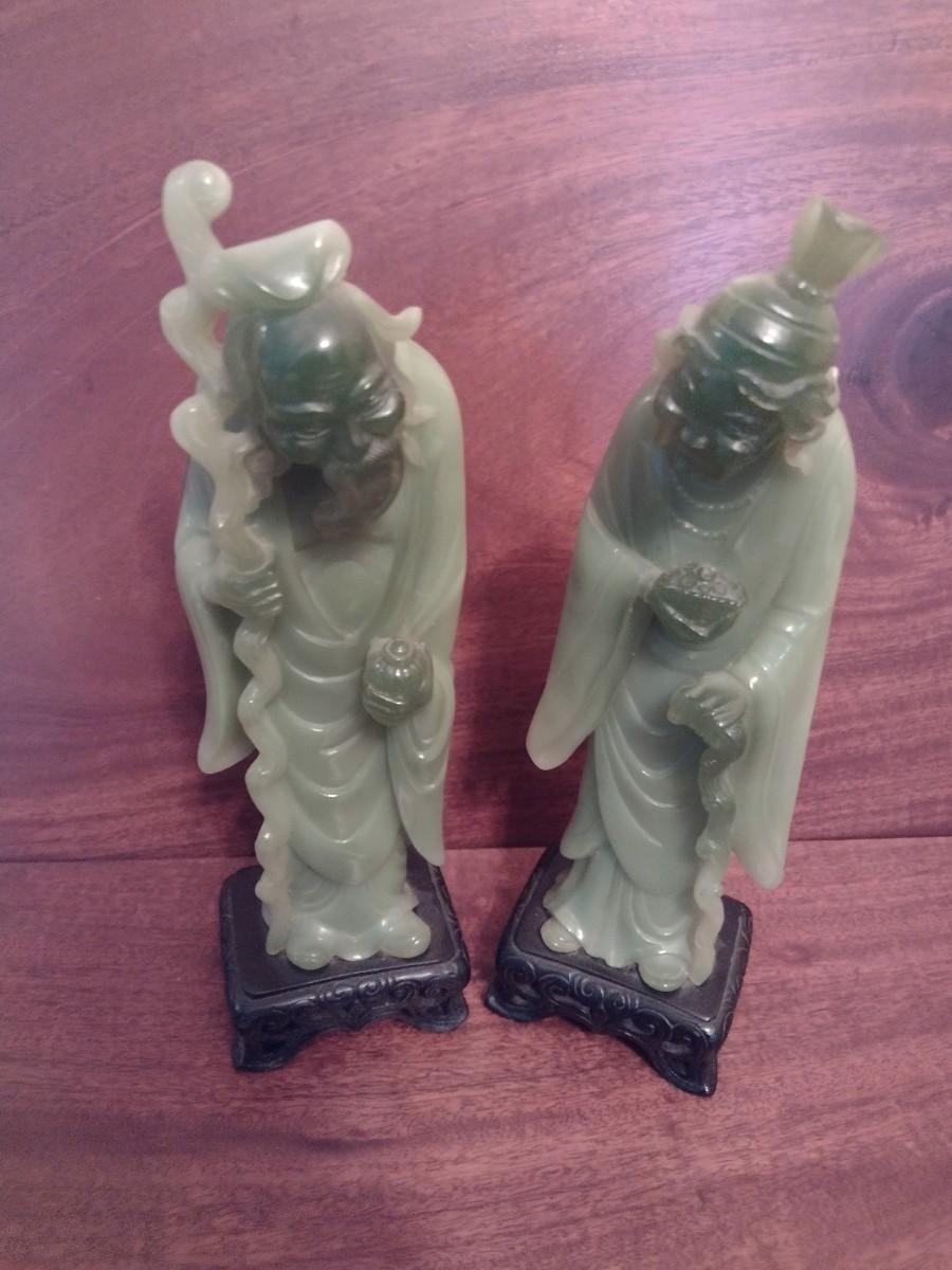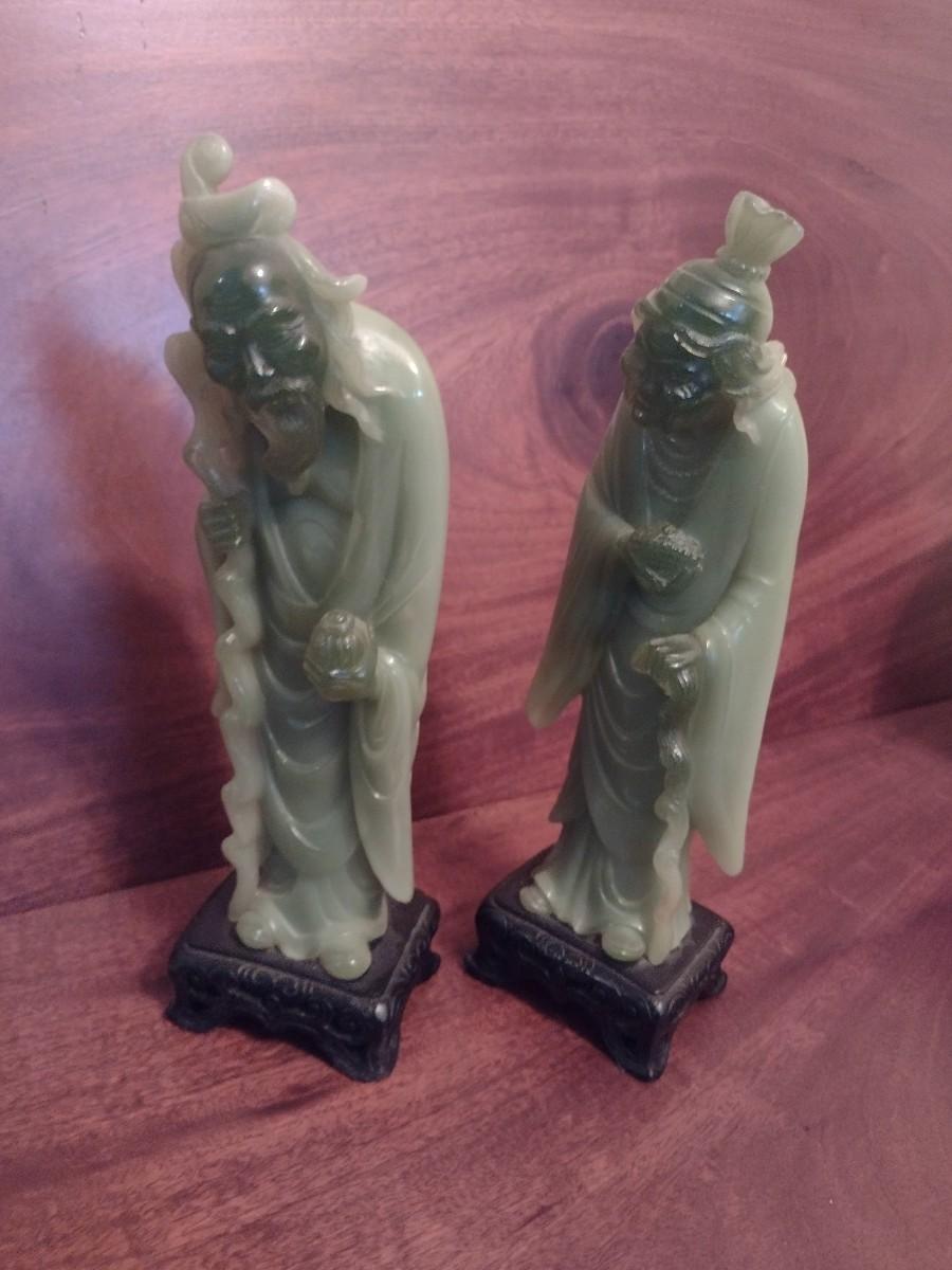 Pair of Jade Resin Chinese Elder Statuettes