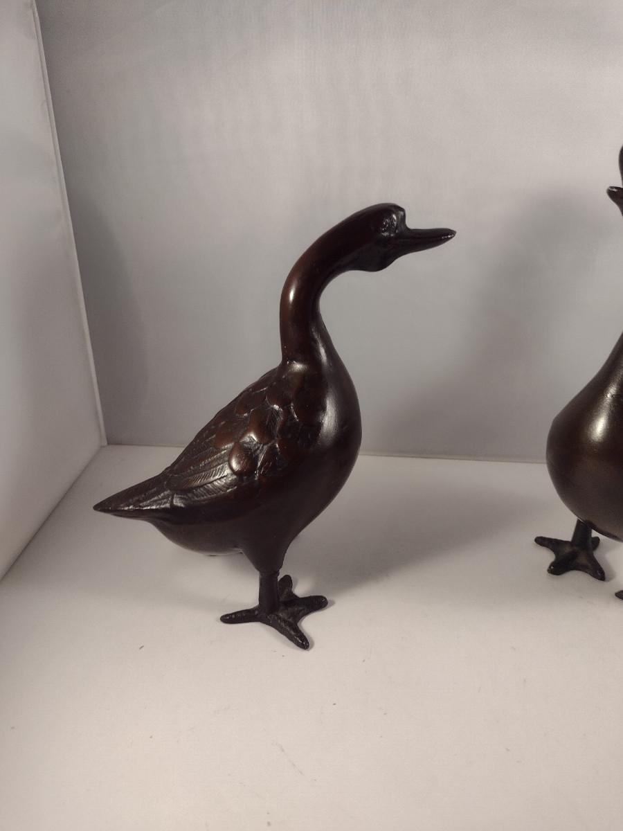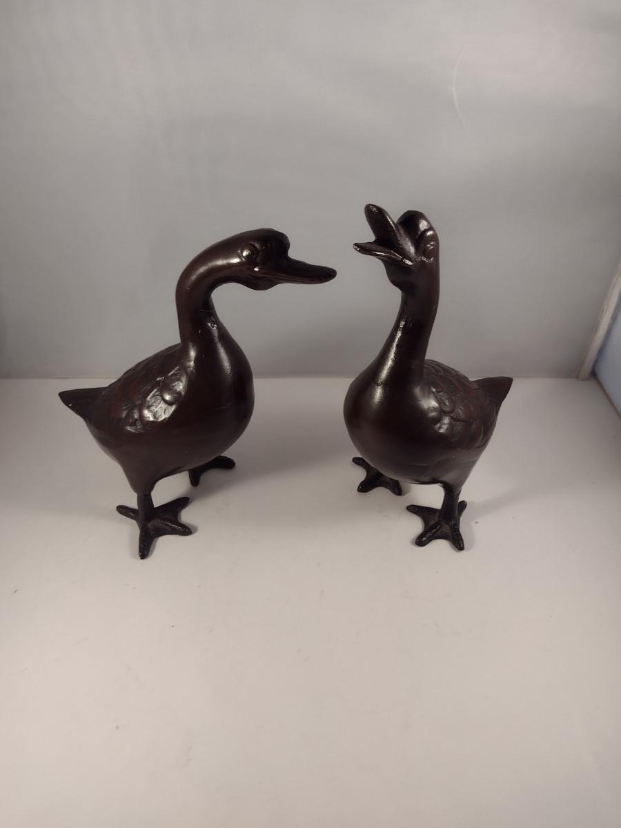Pair of Japanese Metal Duck Figures