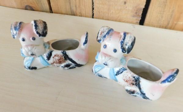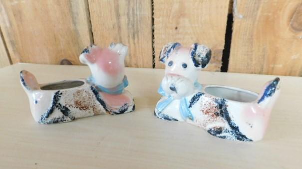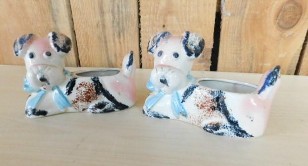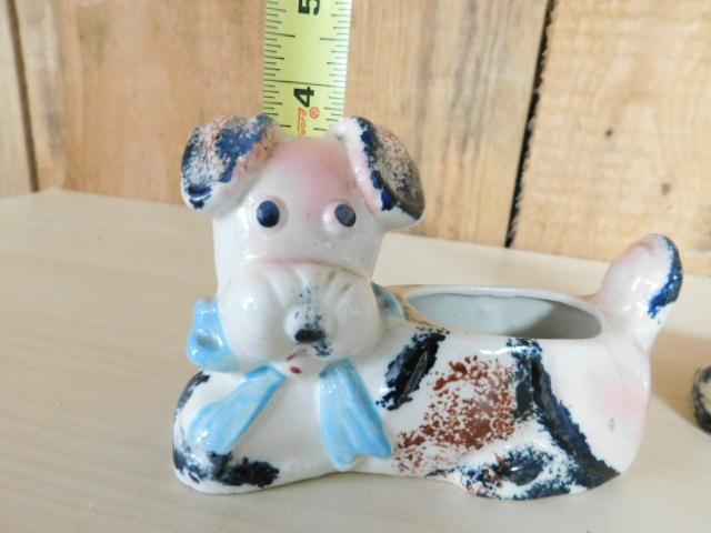 Pair of Japanese Porcelain Dog Figural Planters 5"