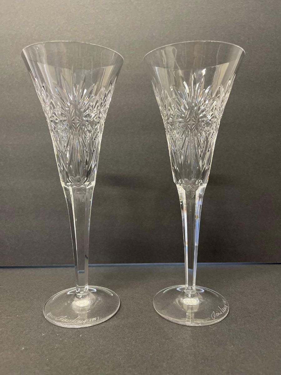 Pair of Jim O’Leary Waterford Crystal Flutes, Signed
