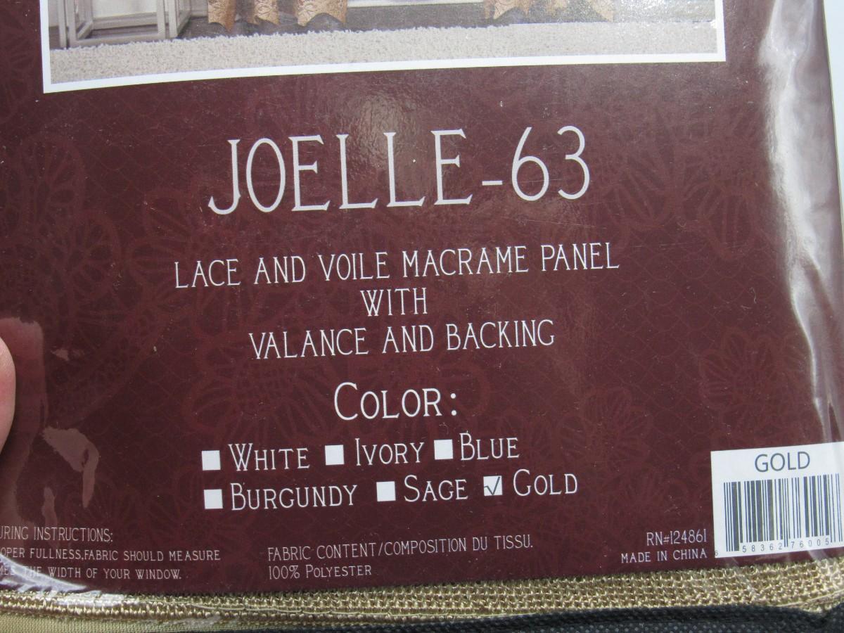 Pair of Joelle-63 Gold Lace & Voile Marame Panel with Valance and Backing