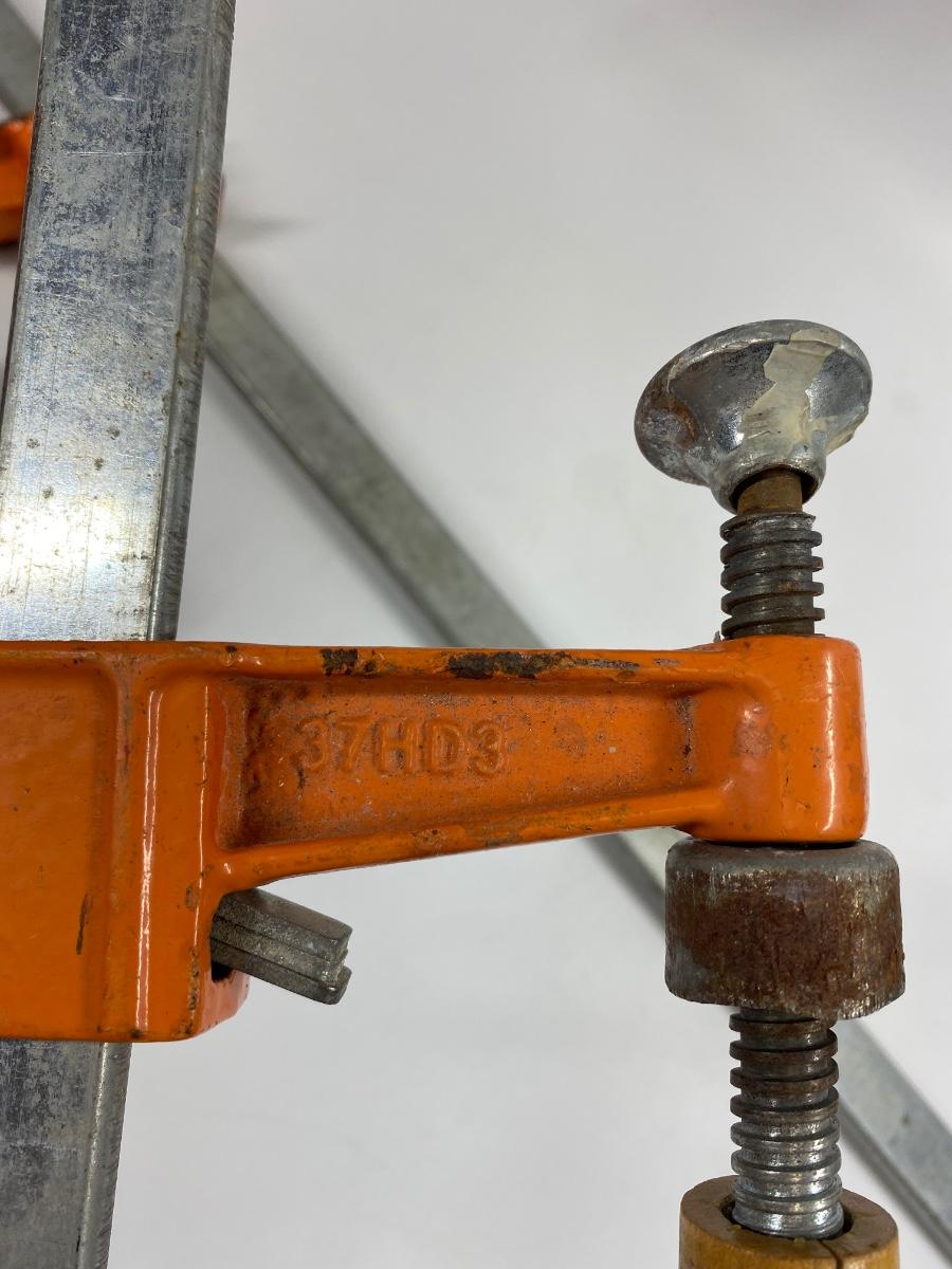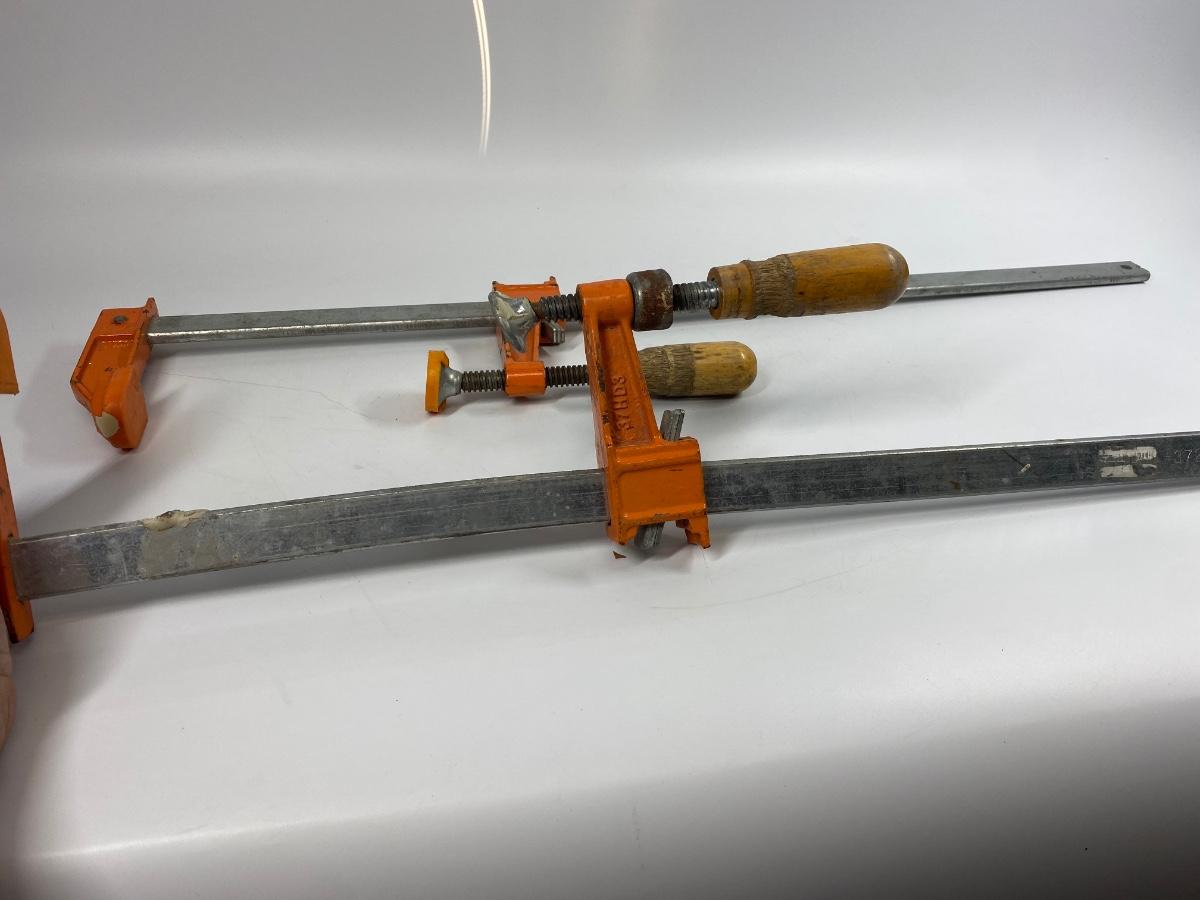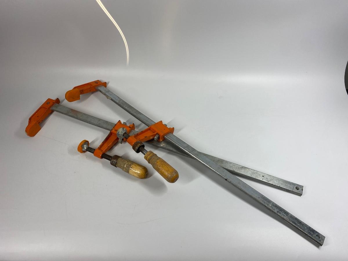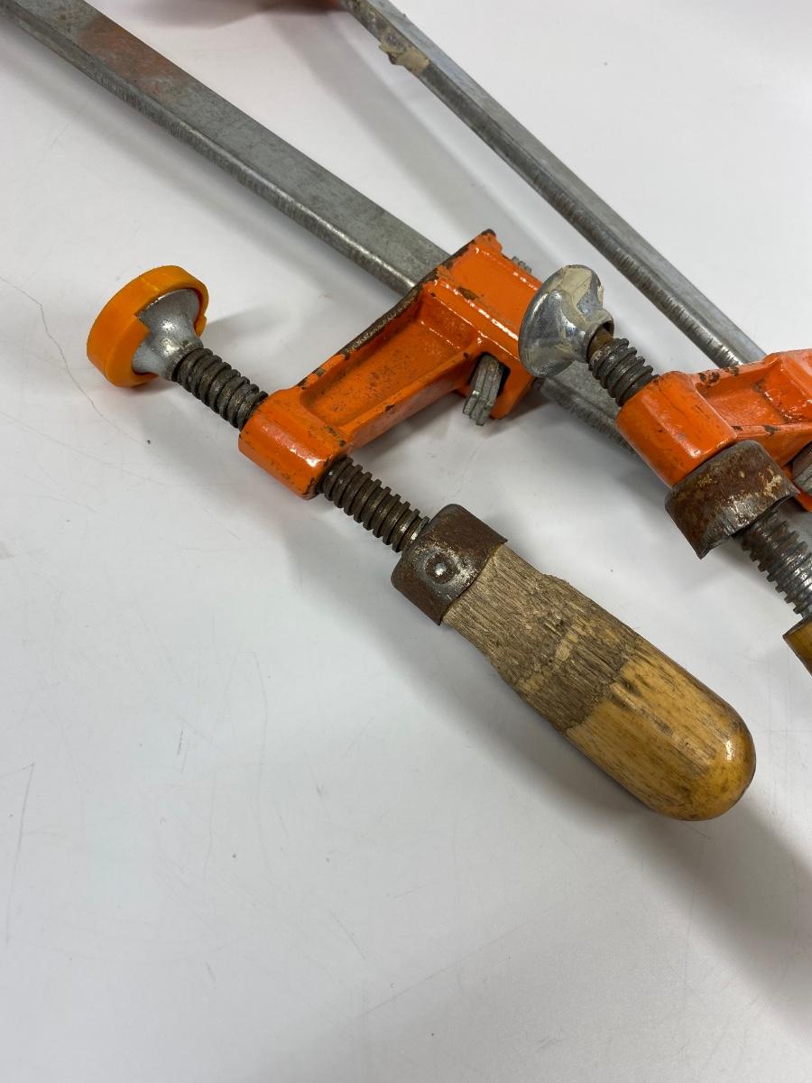 Pair of Jorgenson Furniture Clamps. About 29" length. One has a small warp bend to it.
