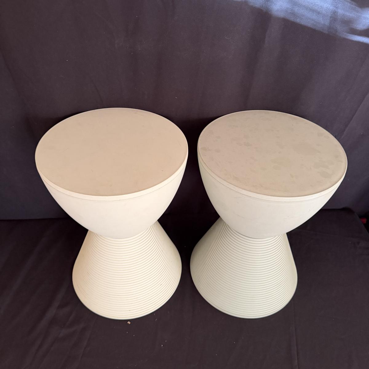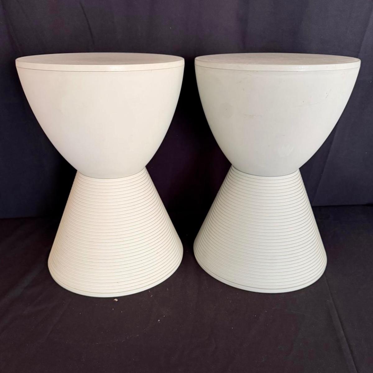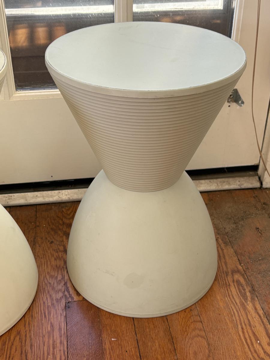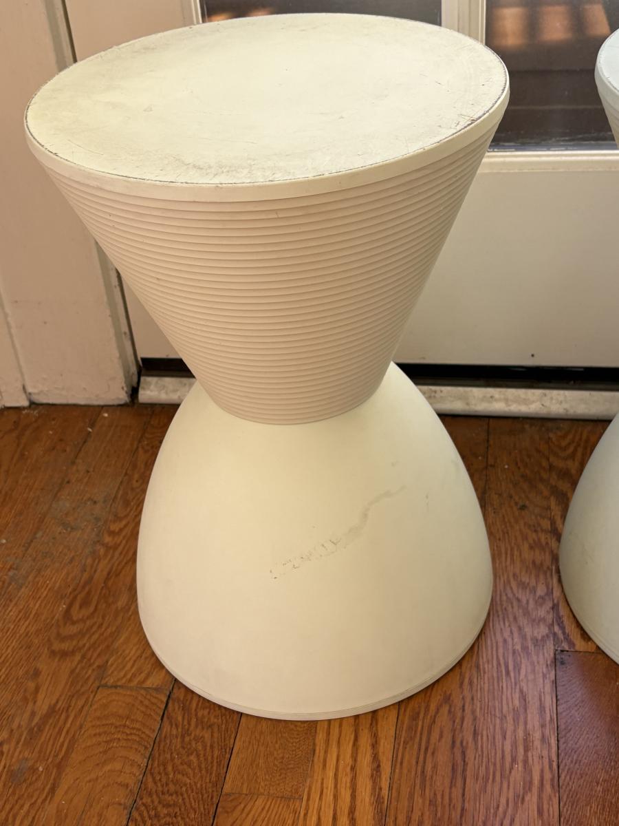Lot includes two Kartell Prince Aha style stools that appear to be made of plastic. Stools measure 11.5”D x 17”H.