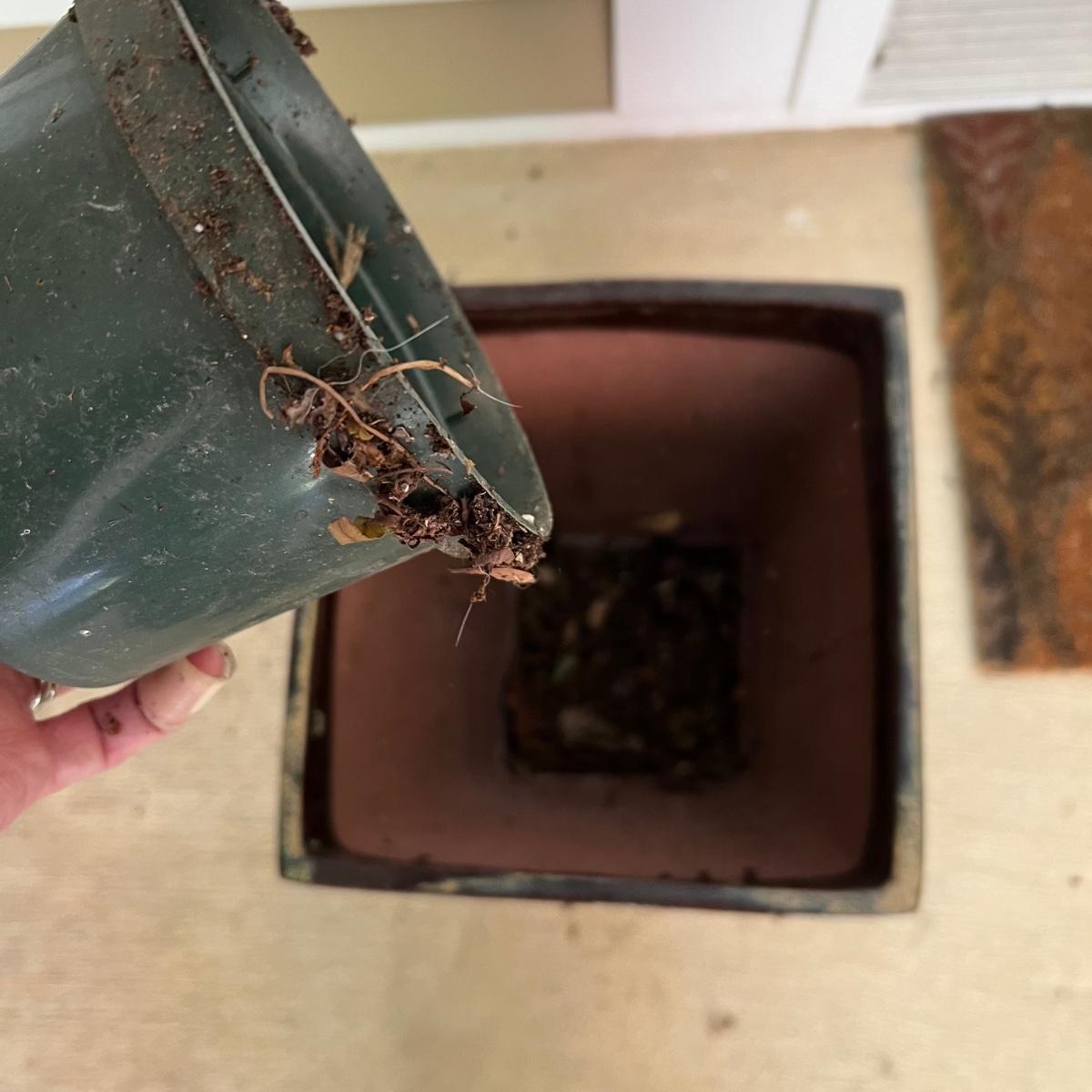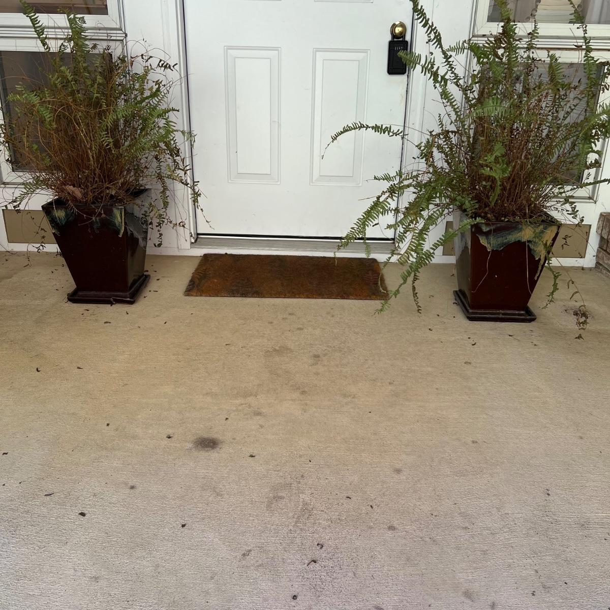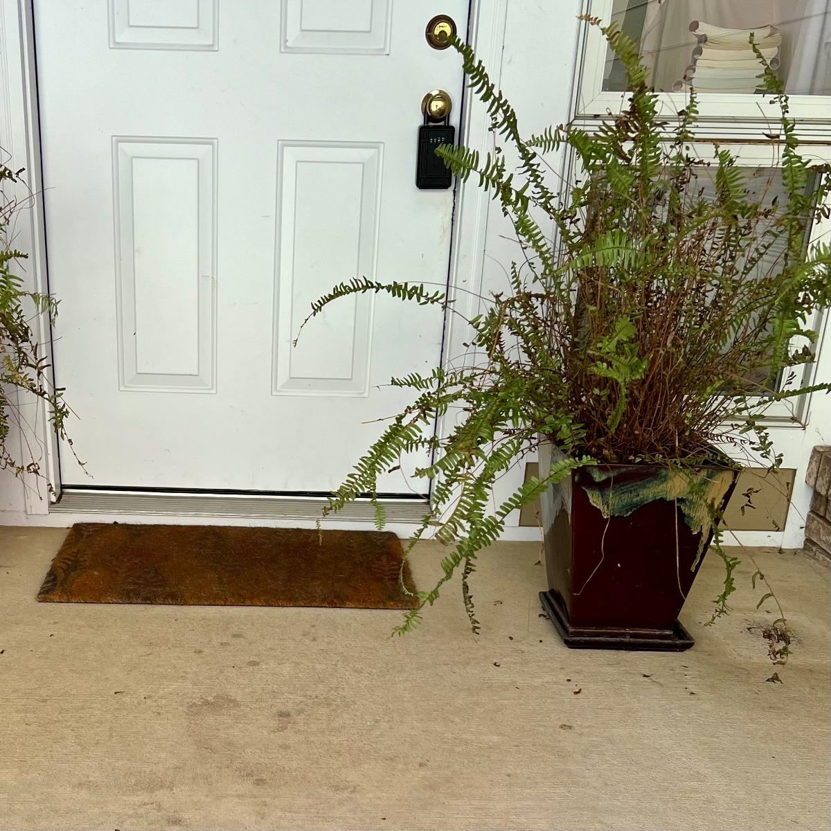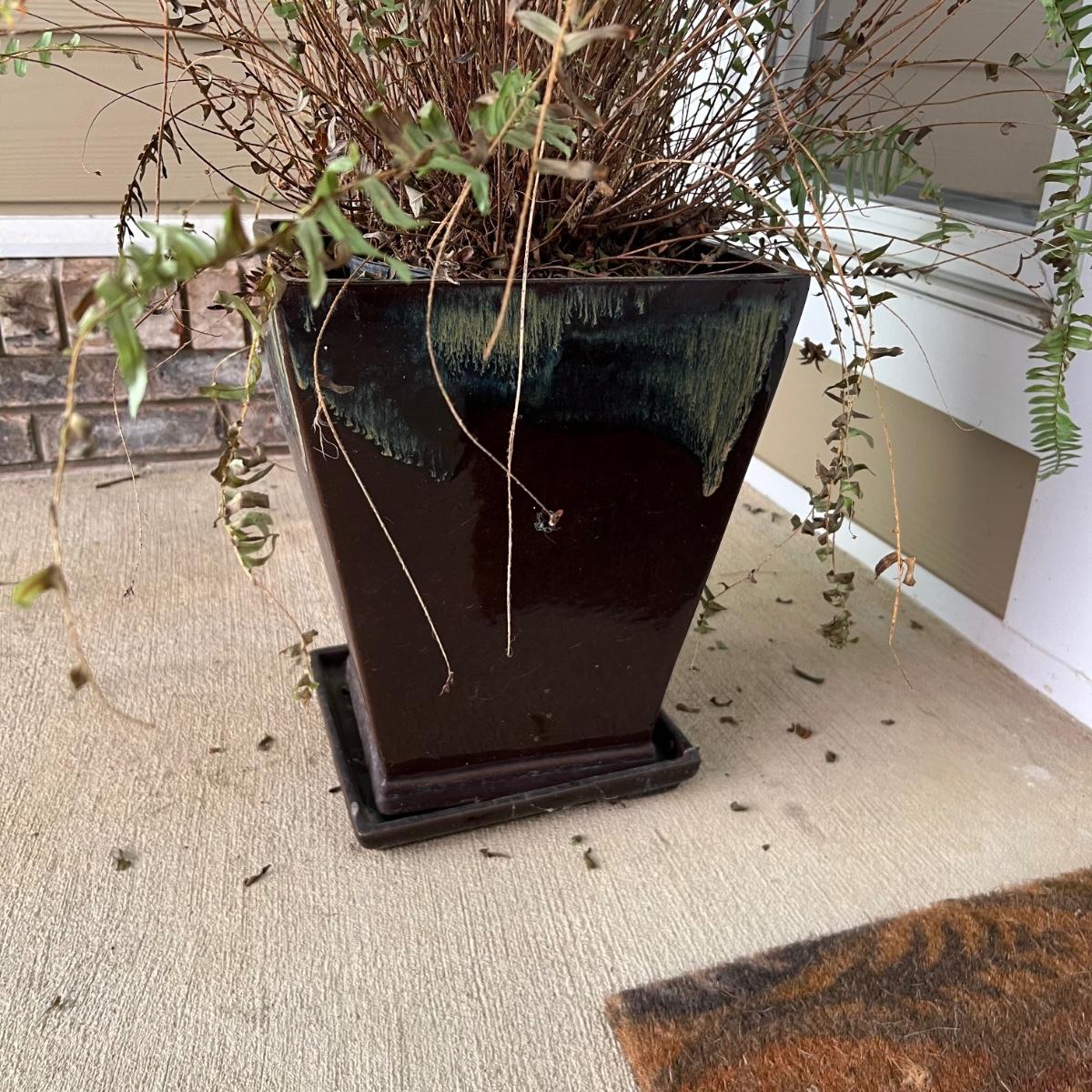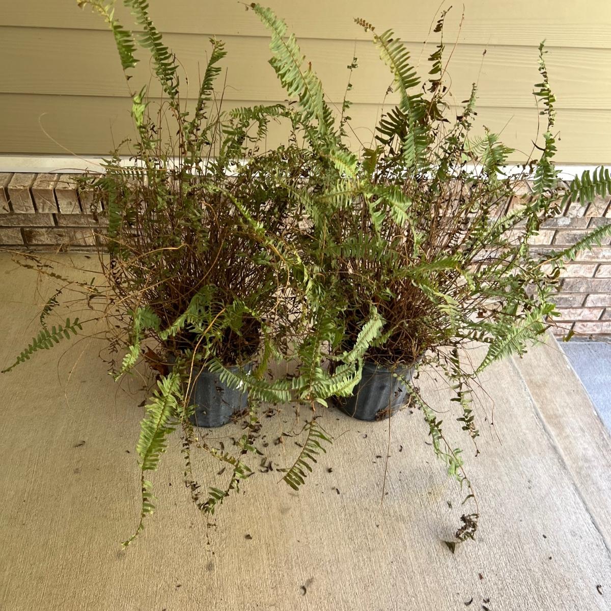 Pottery pots measure 11.5” square x 14”H (two small plastic pots are in place to raise the height of the ferns.