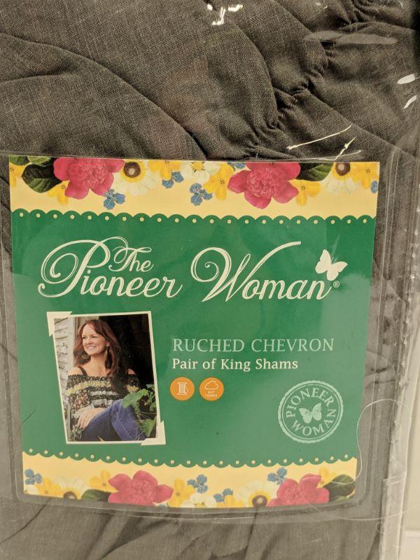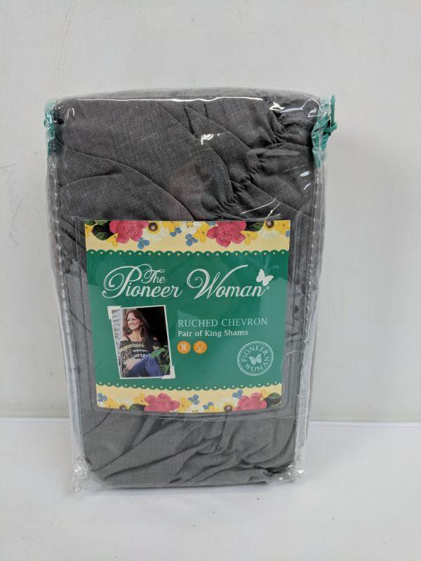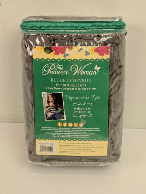 Pair of King Shams, Grey, Ruched Chevron, The Pioneer Woman - New
