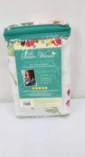 Pair of King Shams, Pioneer Woman Beautiful Bouquet Sham Set, White/Floral - New