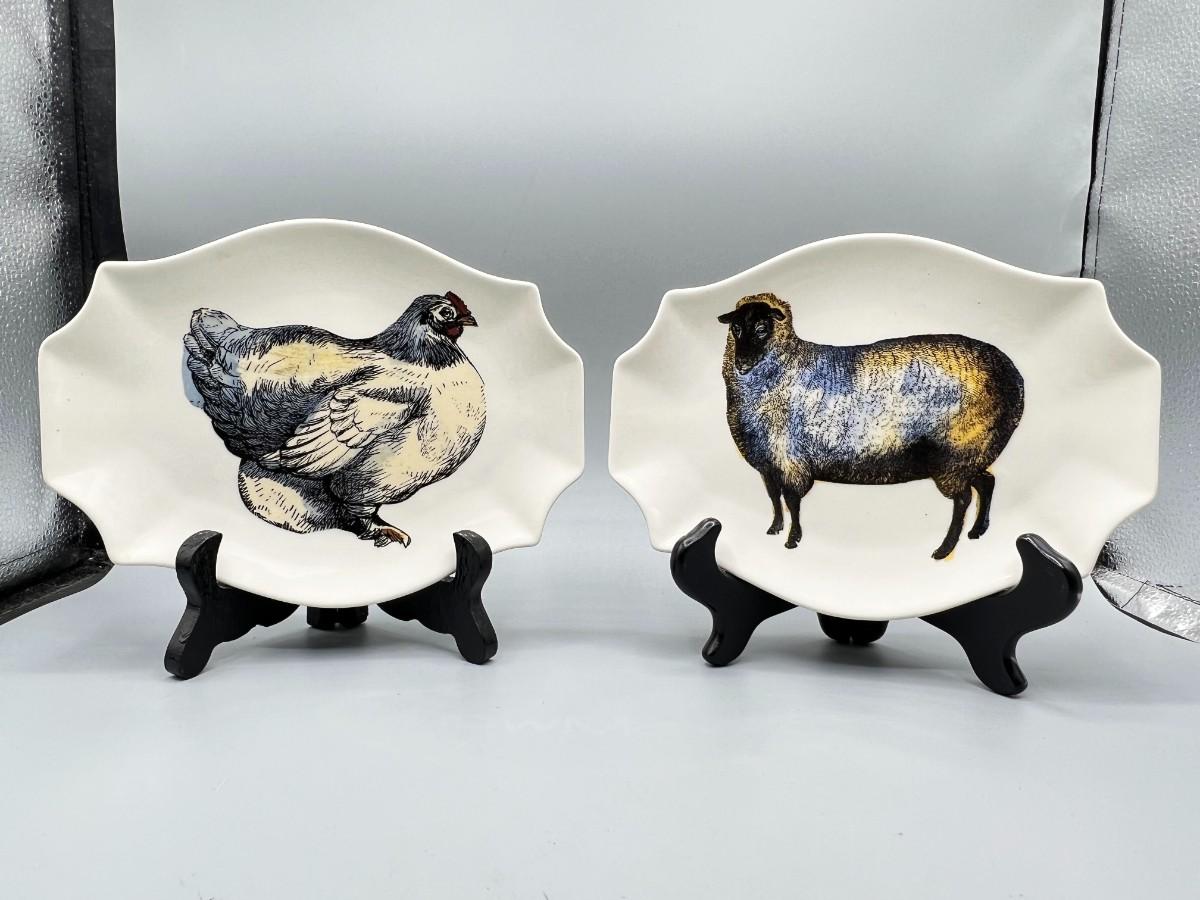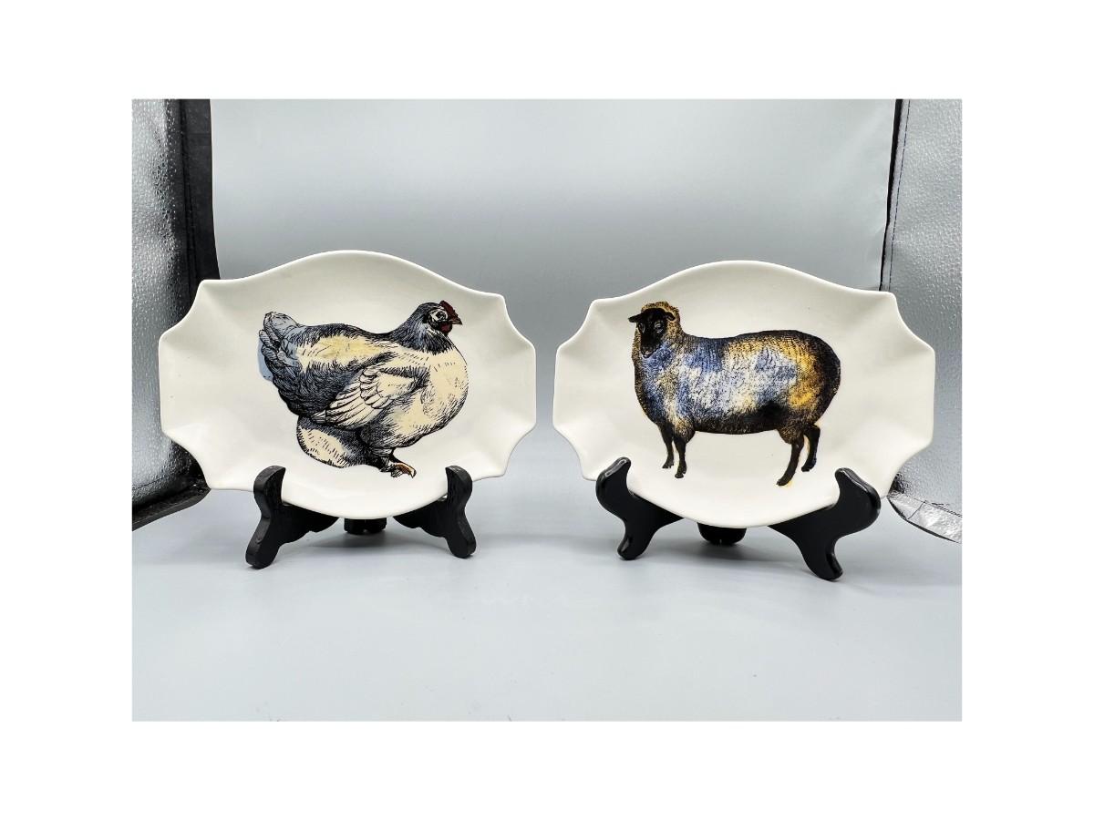 Pair of Kitchenware Hen Chicken & Sheep Serving Dishes