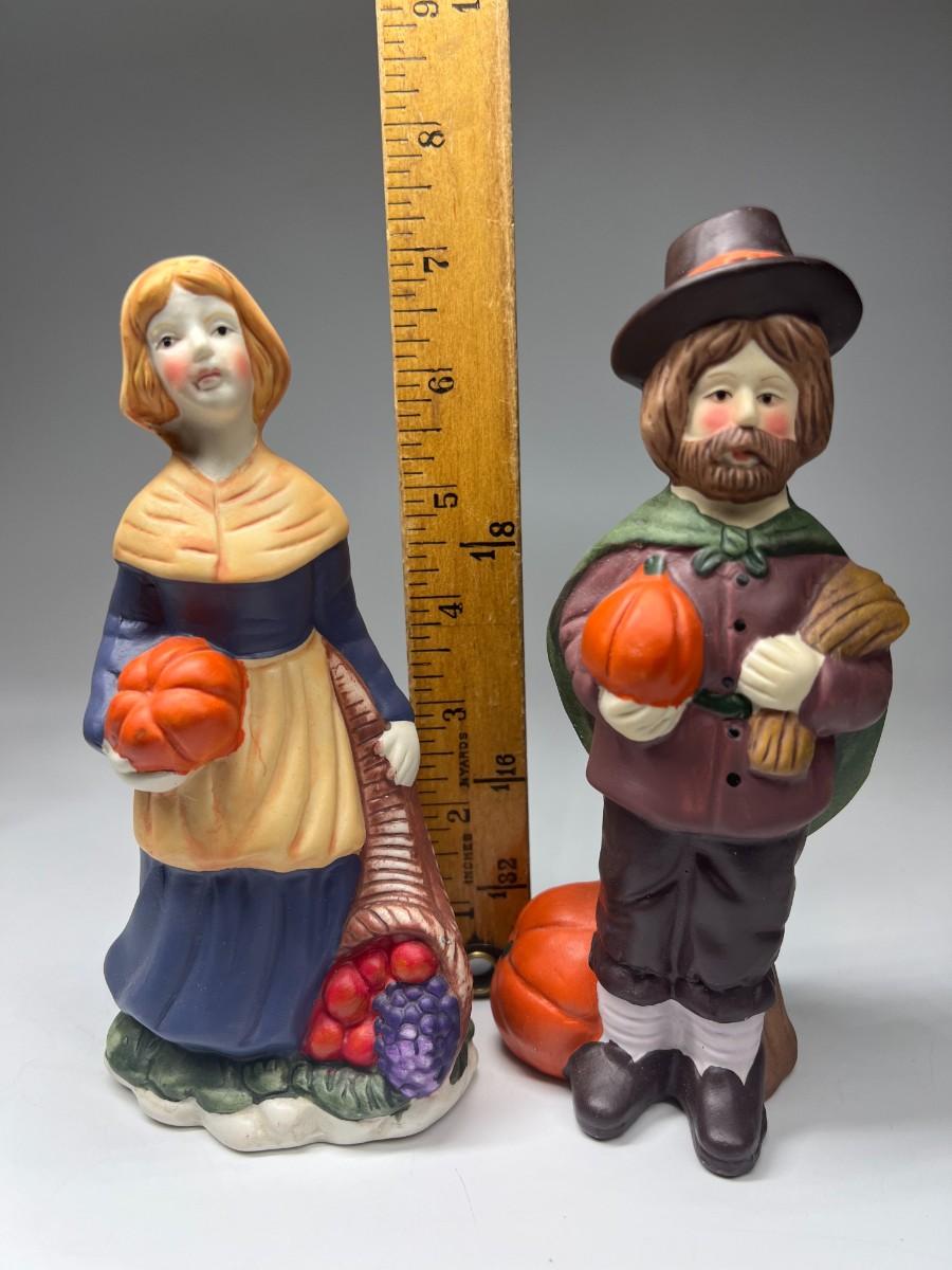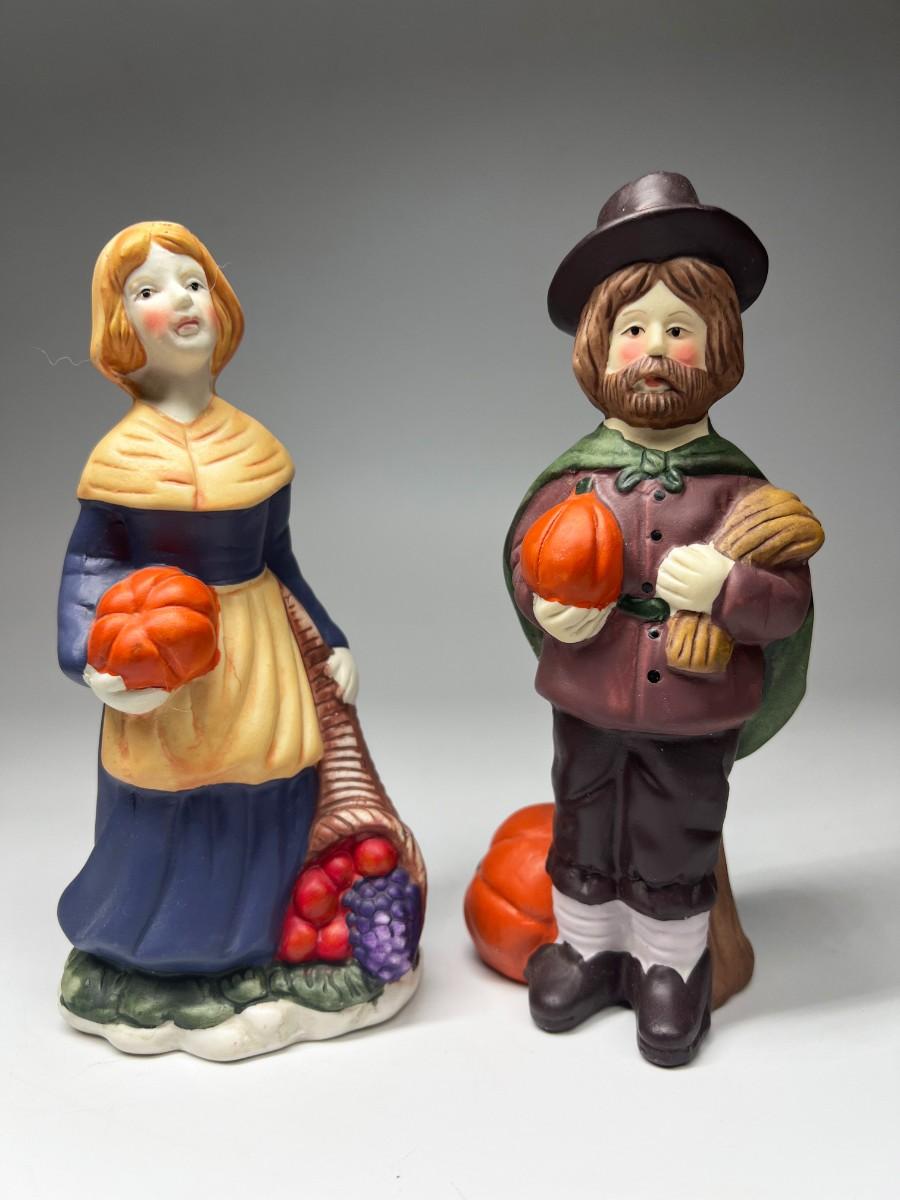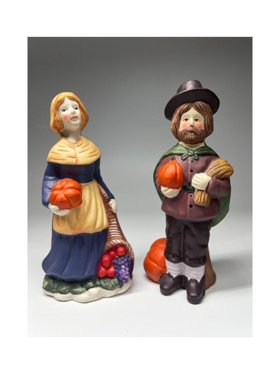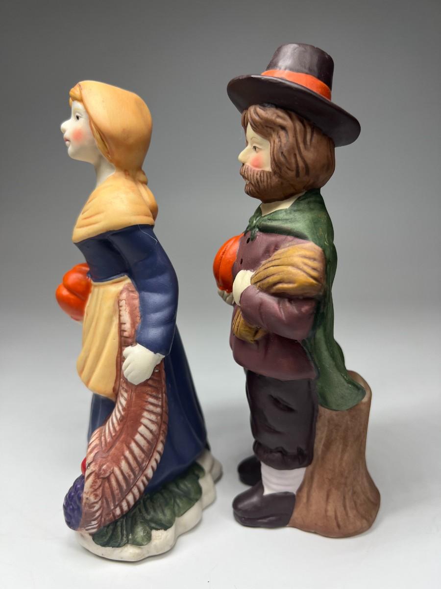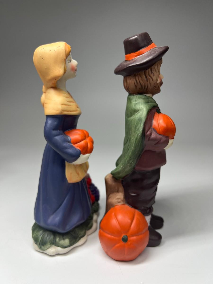 Pair of K's Collection Thanksgiving Fall Autumn Ceramic Pilgrim Figurines