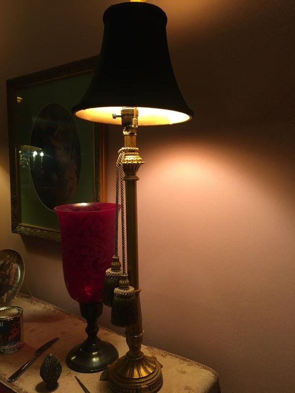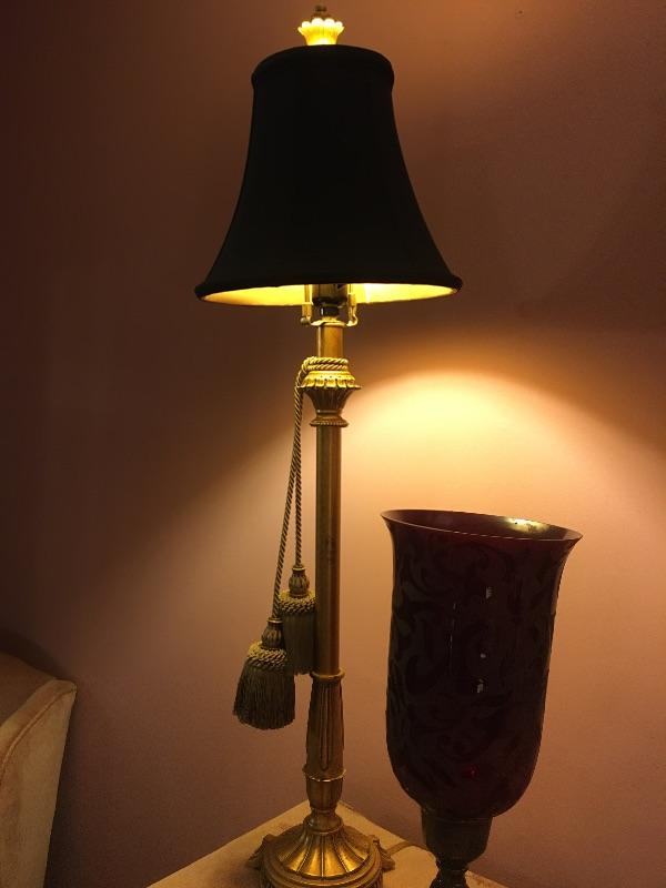 Pair of lamps with shades. Metal base 34” high