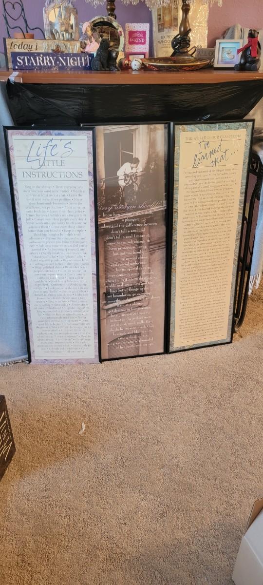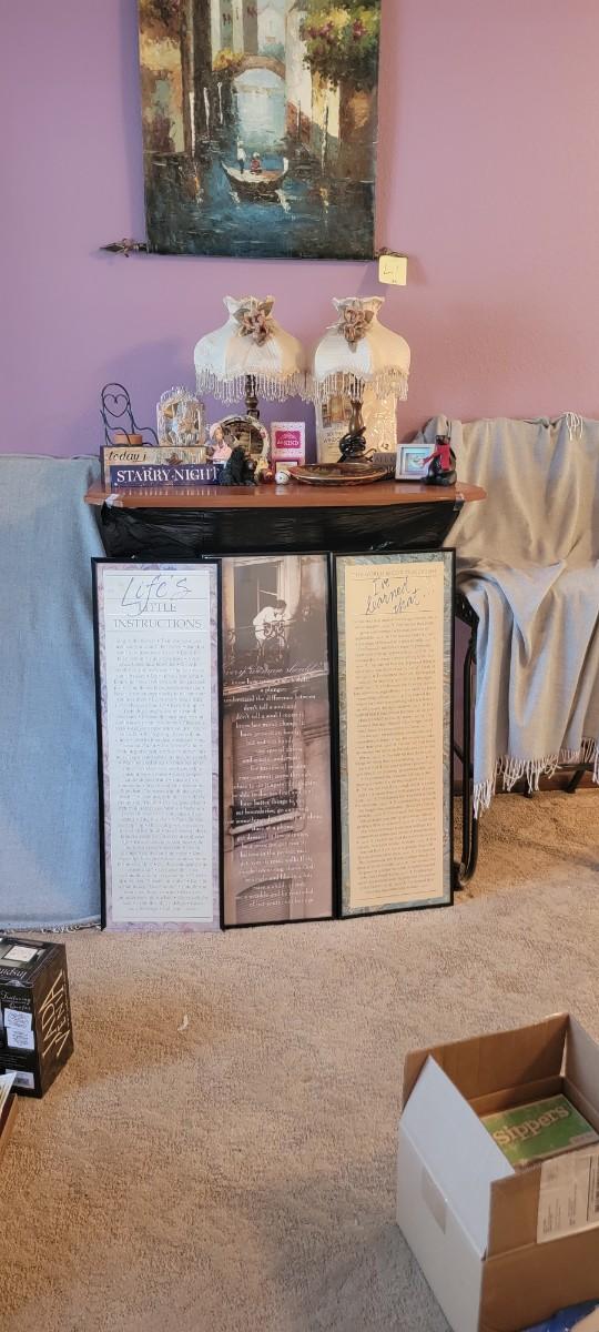 Pair of lamps, three framed inspirational