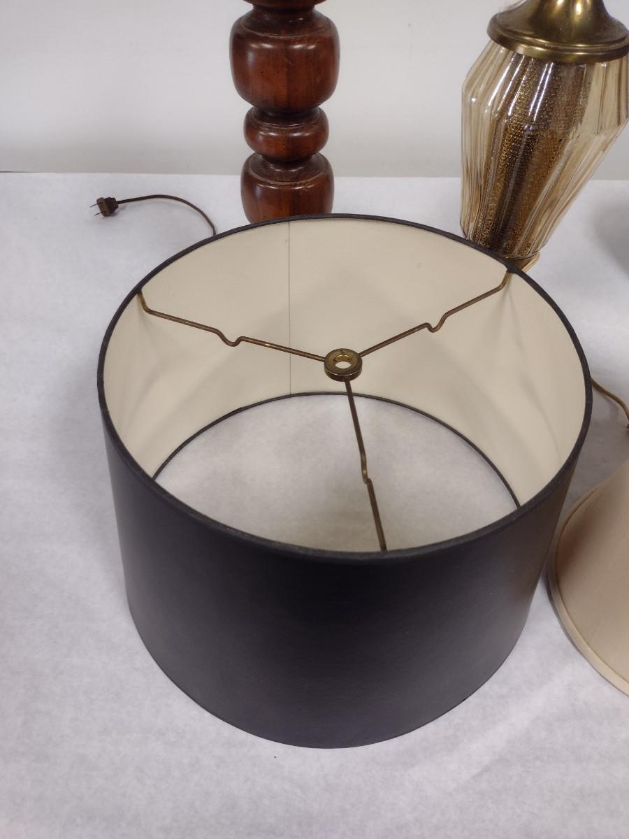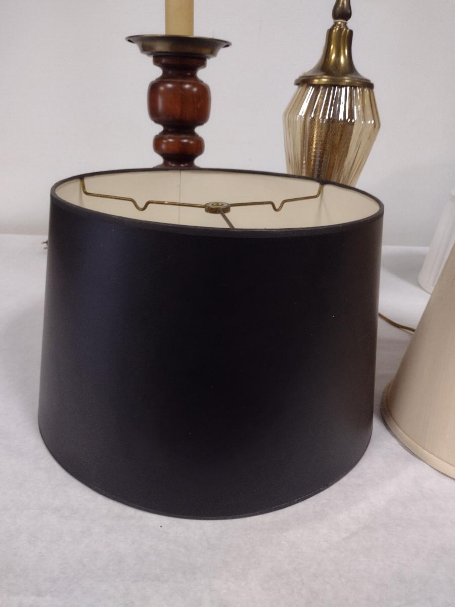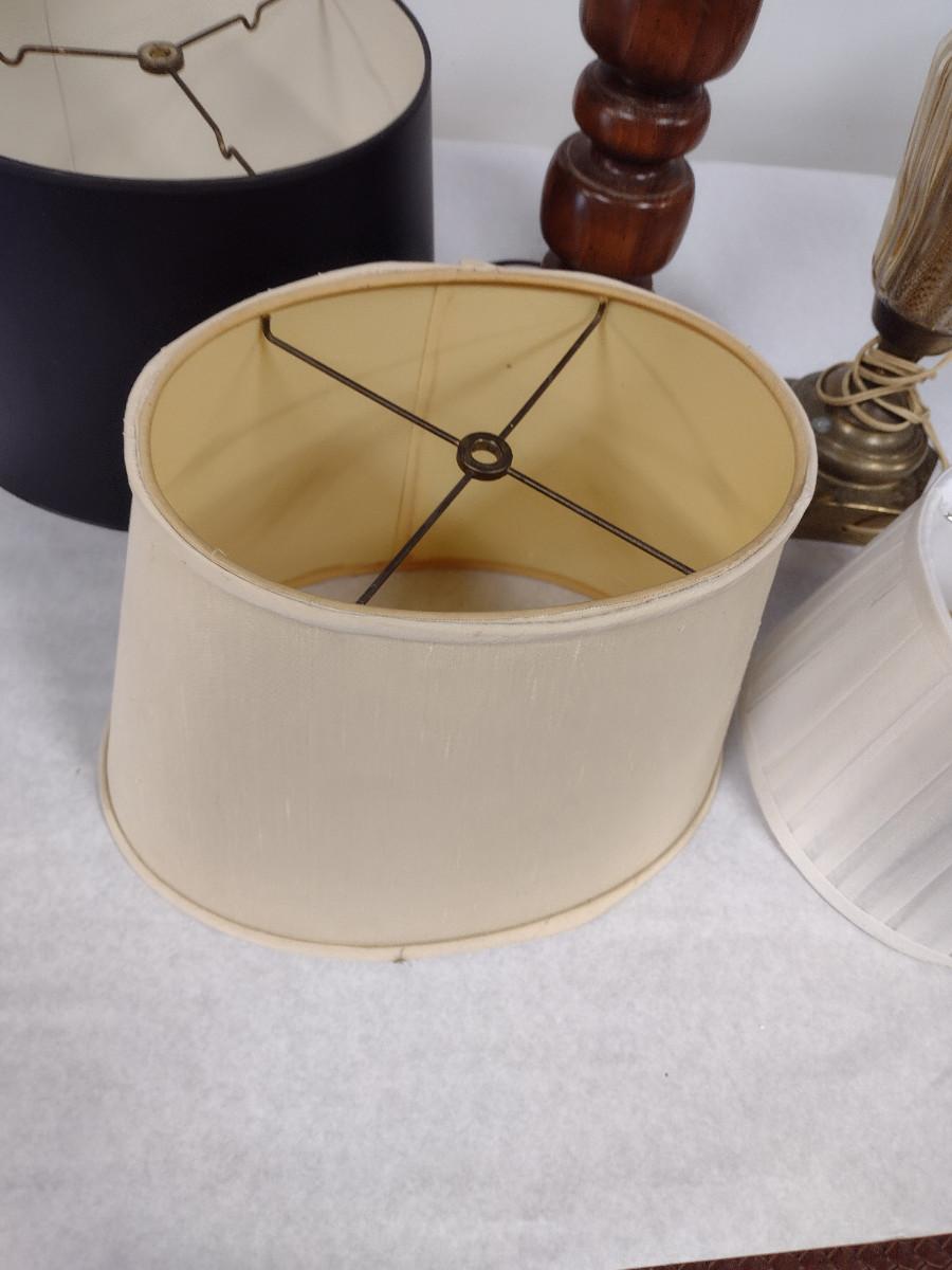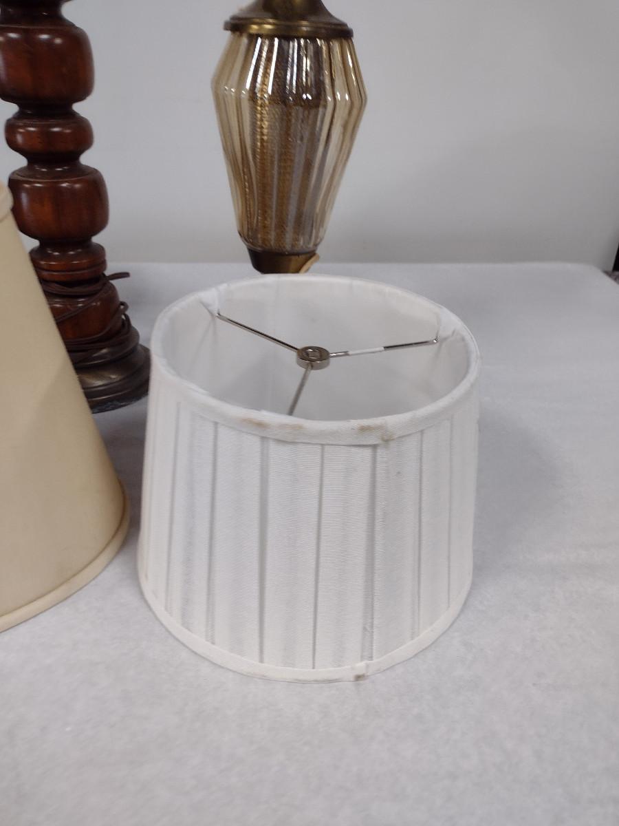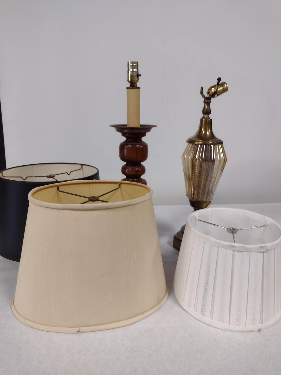 Pair of Lamps with Three Assorted Shades. Lamps may not be in working order and need to be rewired.