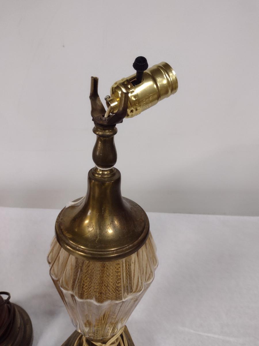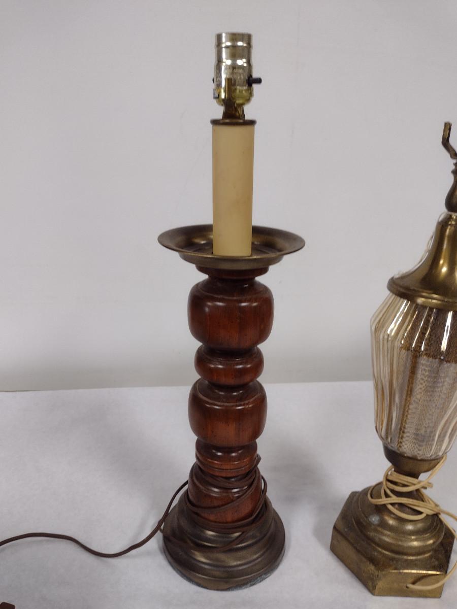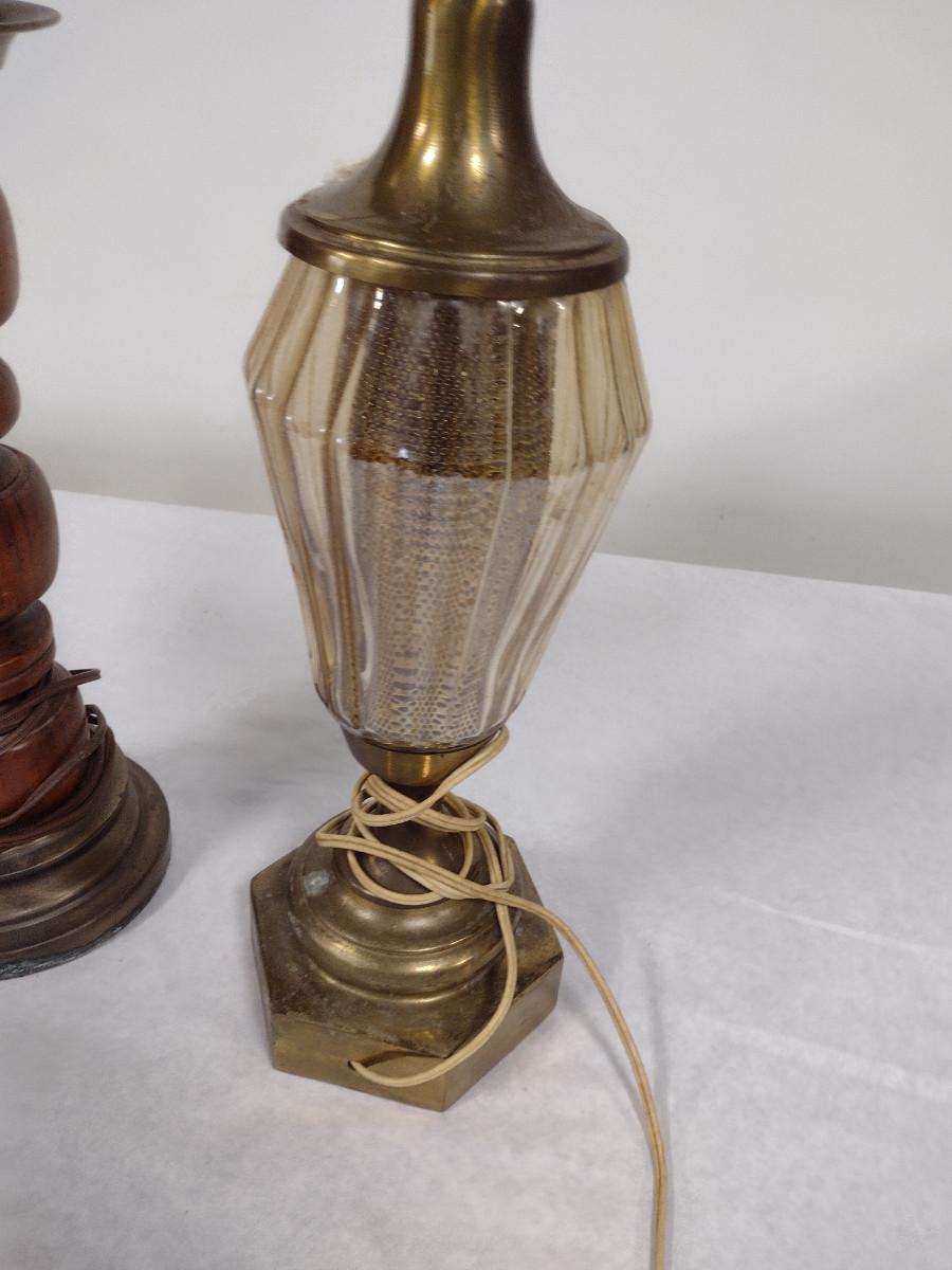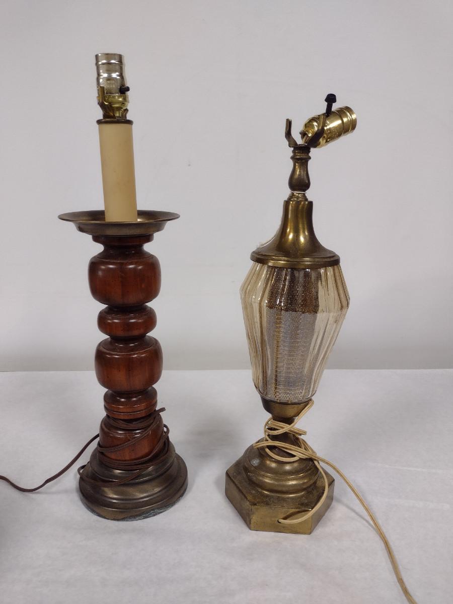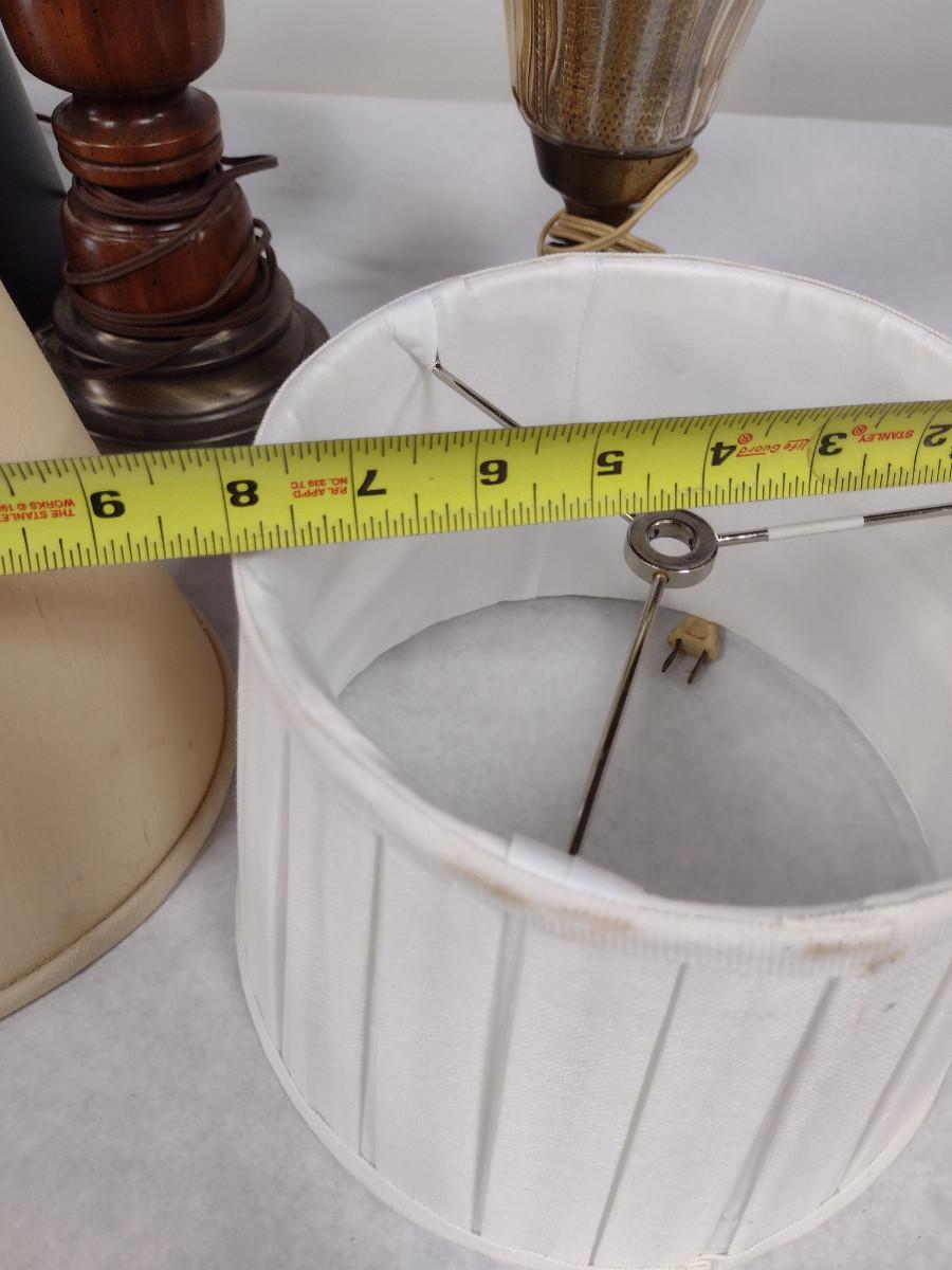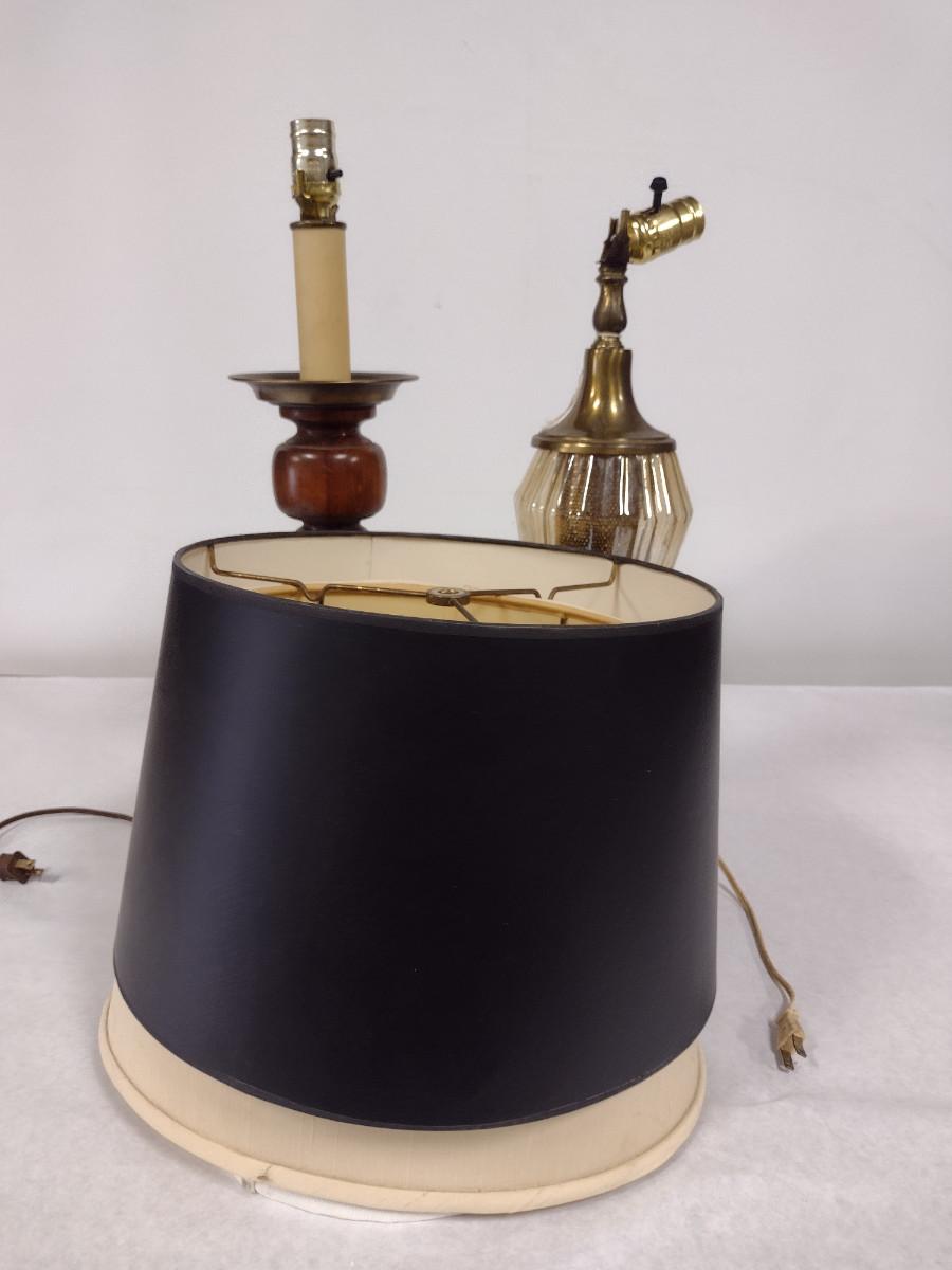 Pair of Lamps with Three Assorted Shades. Lamps may not be in working order and need to be rewired.