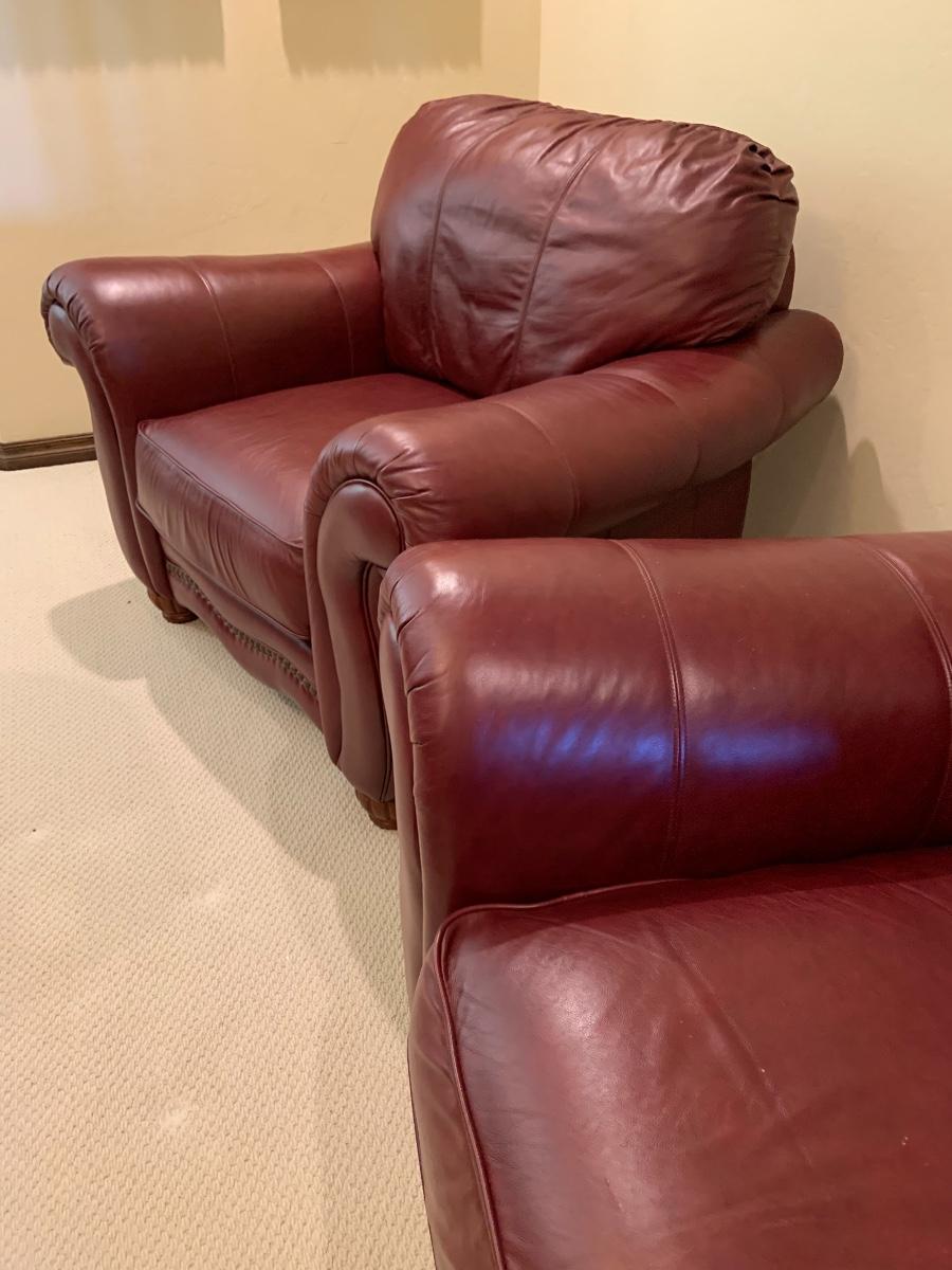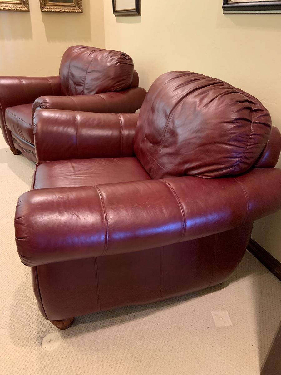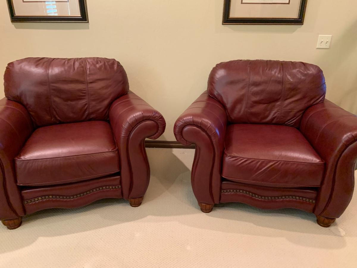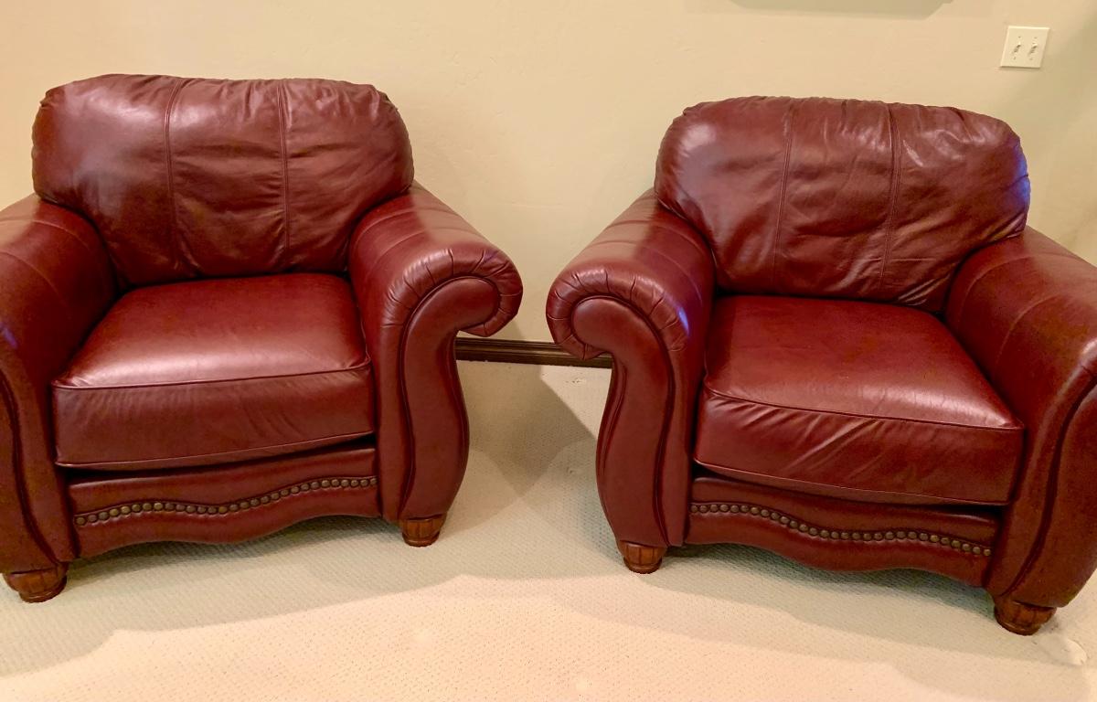 Pair of Lane leather club armchairs