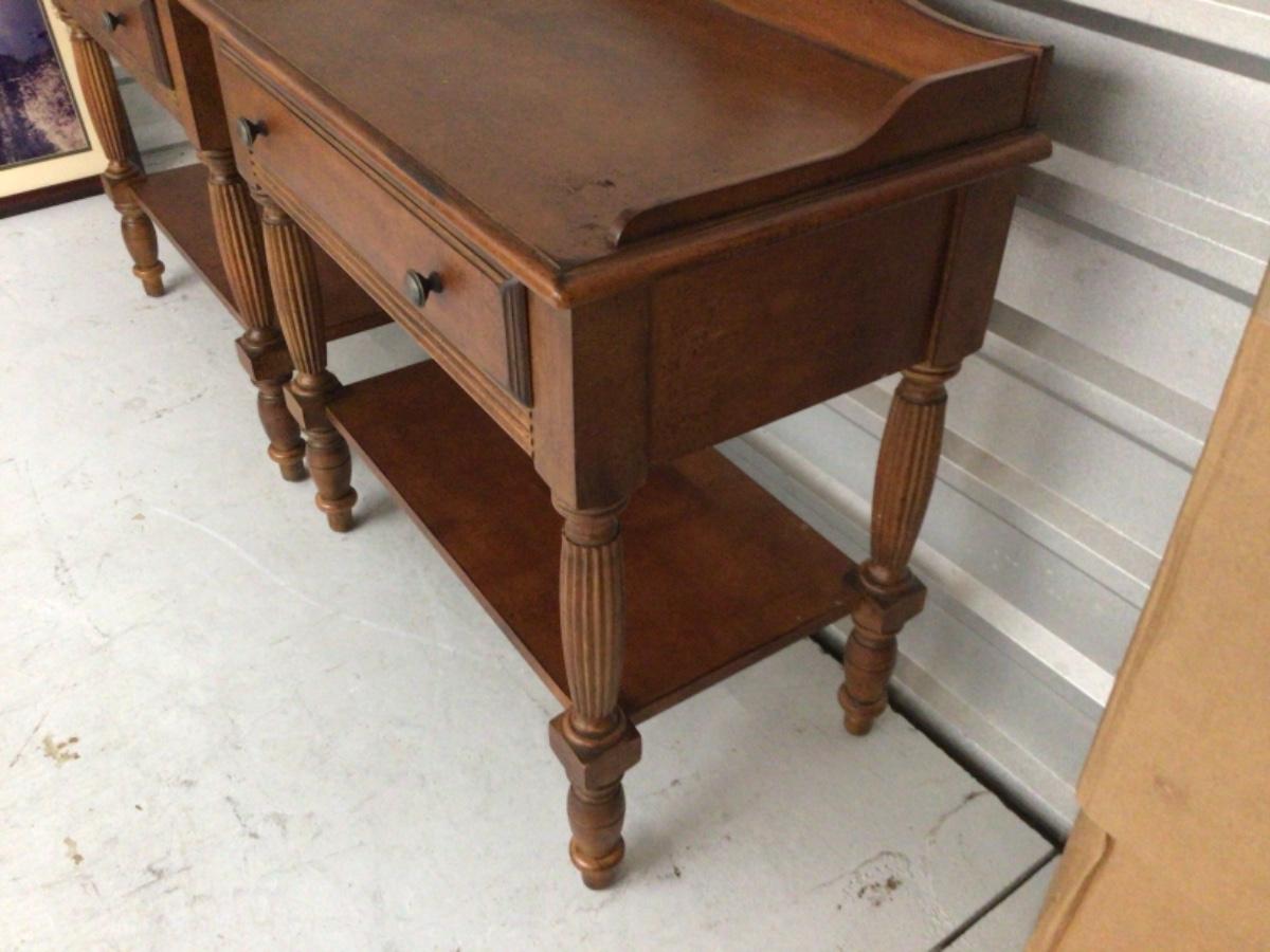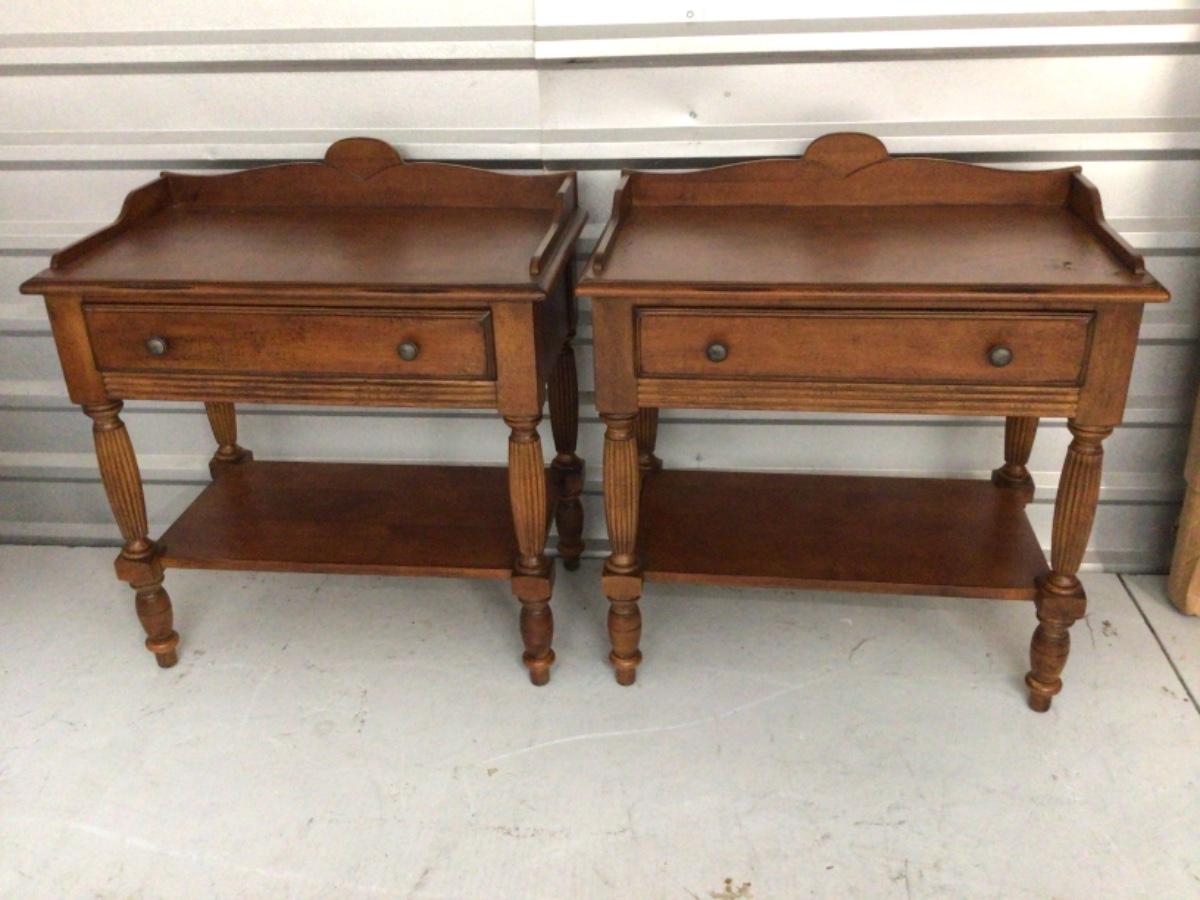 They each have one drawer and a low shelf. 28”w x 16”d x 26”h. You must bring help to move this item into your vehicle. Local delivery may be able available at cost to the buyer. If you need an item to be delivered then please coordinate with us once you have purchased the item. Pick Up of Purchased Items will be on Saturday the 16th at Morningstar Storage in Bluffton, SC. 1110 Fording Island Rd, Bluffton, SC 29910. At the end of the sale todayI will send out a SignUpGenius link to the winning bidder to schedule your your pick up time along with a contact phone number.