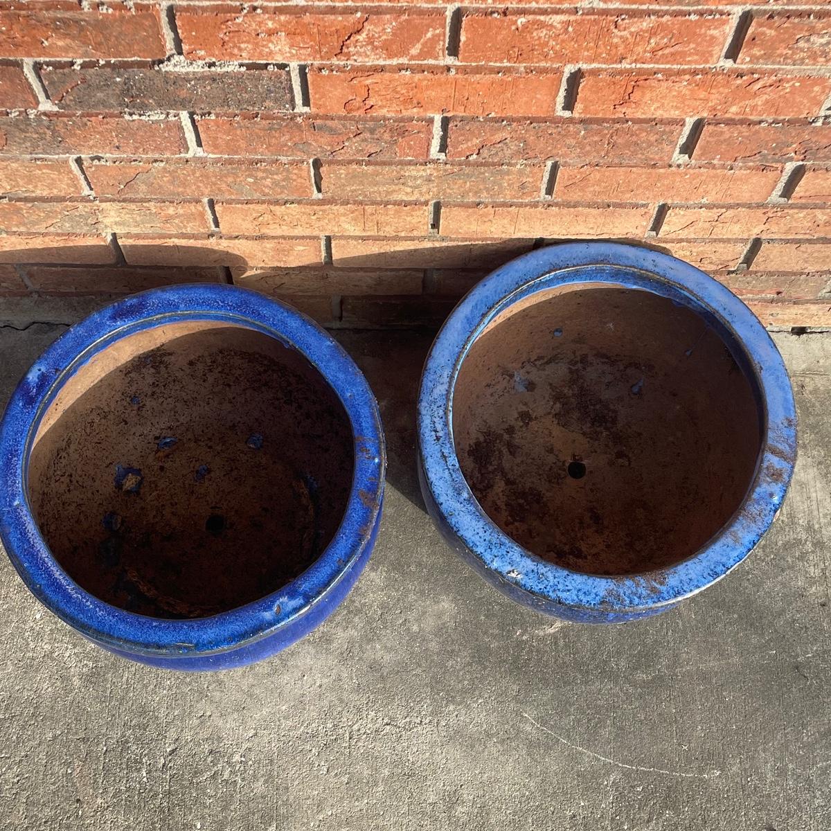 Pair of Large Blue Ceramic Planters (G-RG)