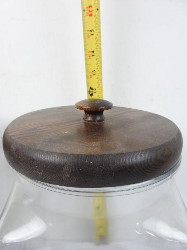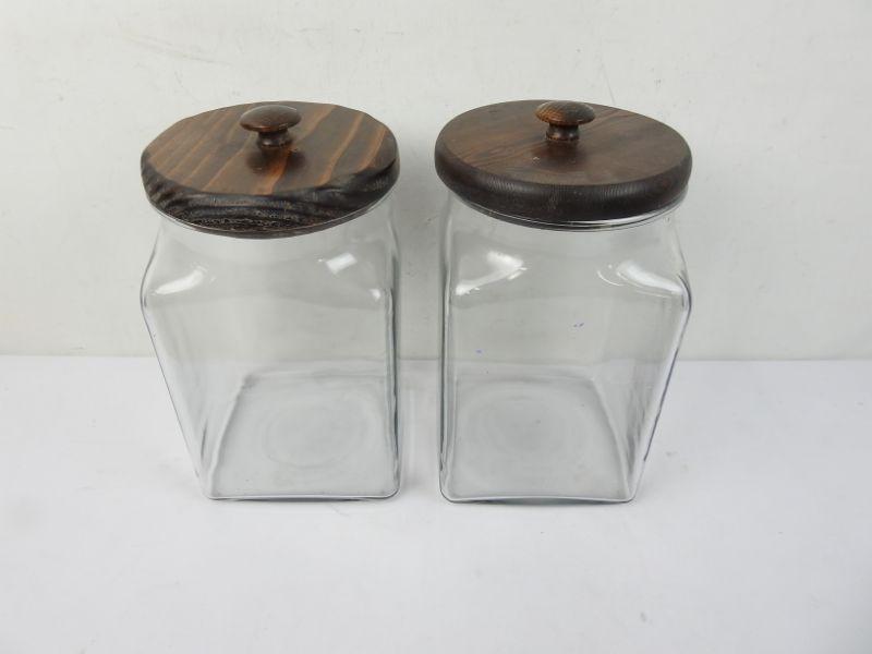 Pair of Large Clear/Wood Cookie Jars, 12" x 6.5" x 6.5"